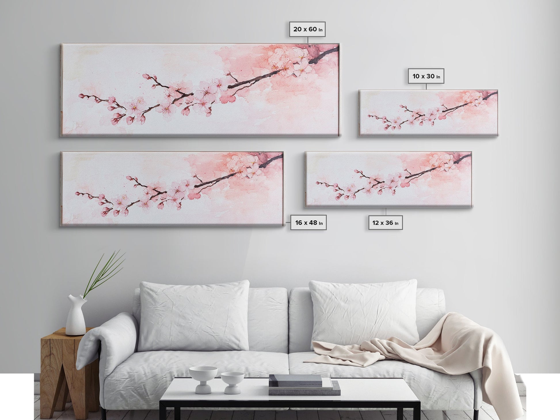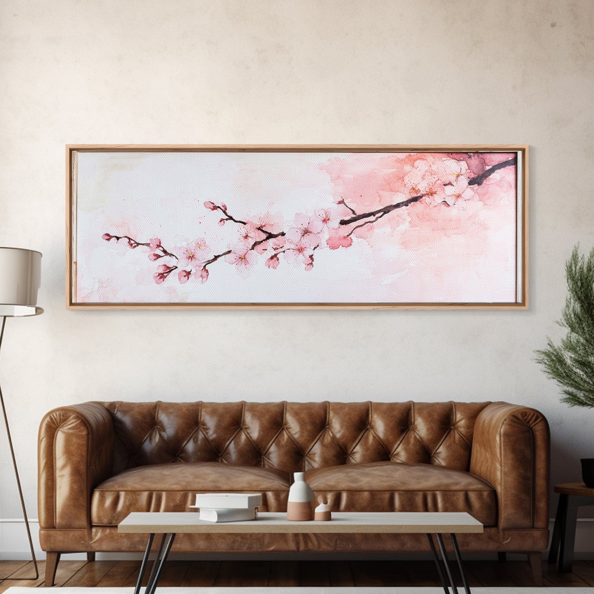 Cherry Blossom Framed Canvas Print, Japanese Sakura Wall Art, Light Pink Decor, Minimalist Botanical Artwork, Bedroom or Living Room Art