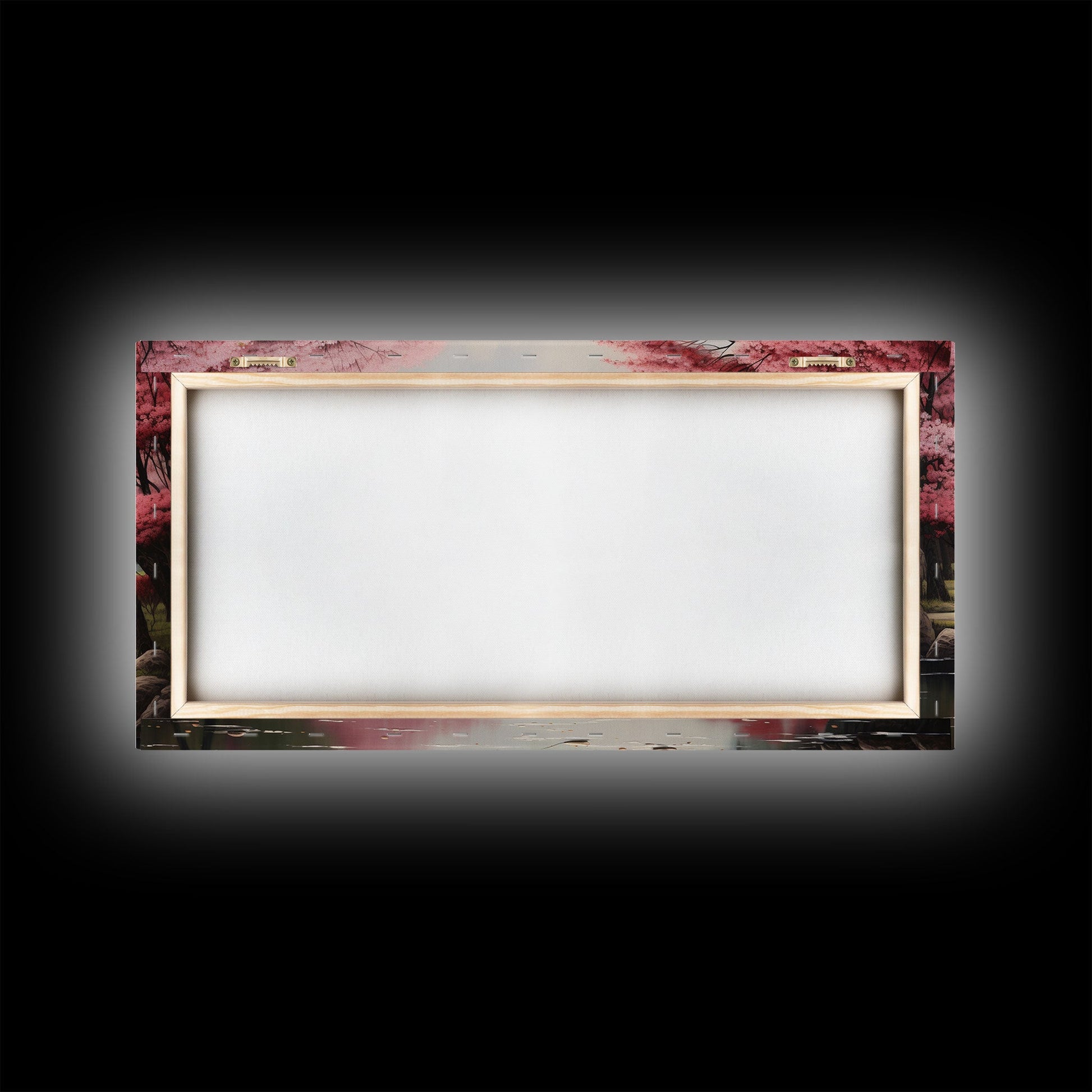 Cherry Blossoms, Japanese Wall Art, River Wall Art, Panoramic Art, Wall Art, Canvas Art, Landscape Art, Living Room Art, Tiny House Décor