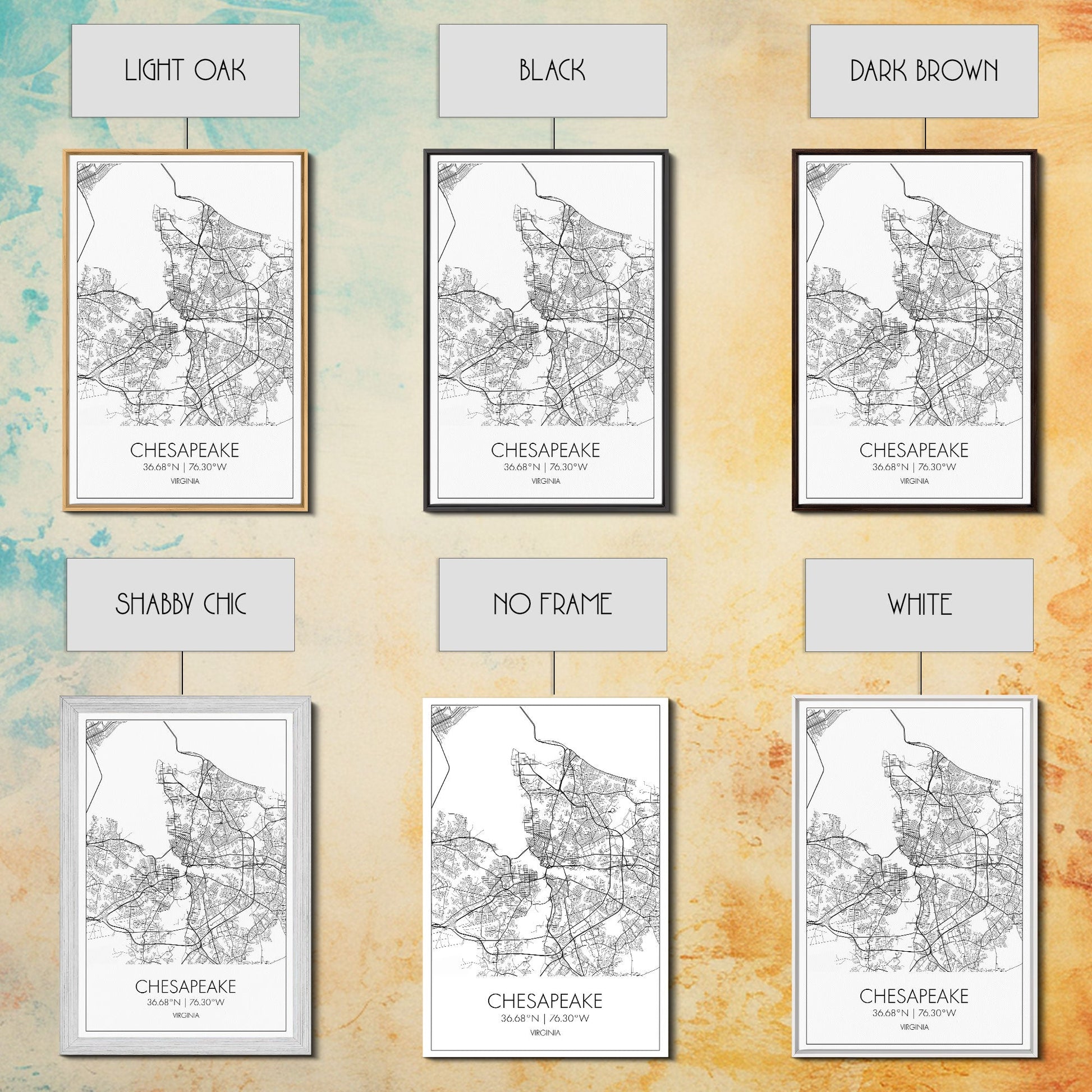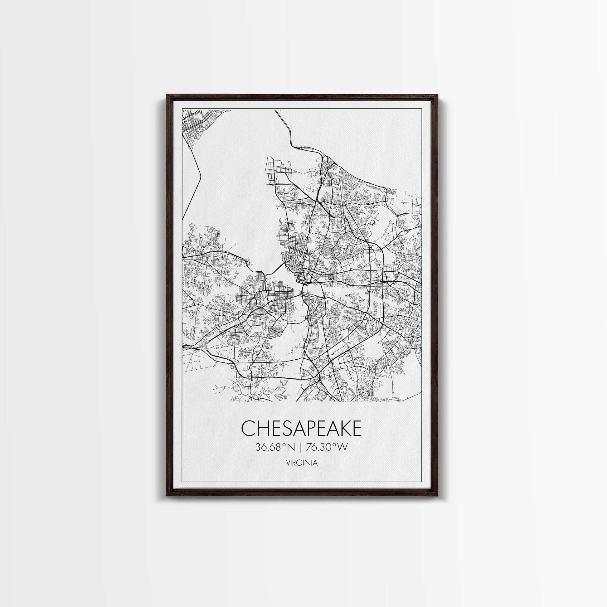 Chesapeake Street Map, Virginia Map, City Map Art, Modern Art, Wall Art, Canvas Print, Canvas Wall Art, Travel Art, Above Bed Décor