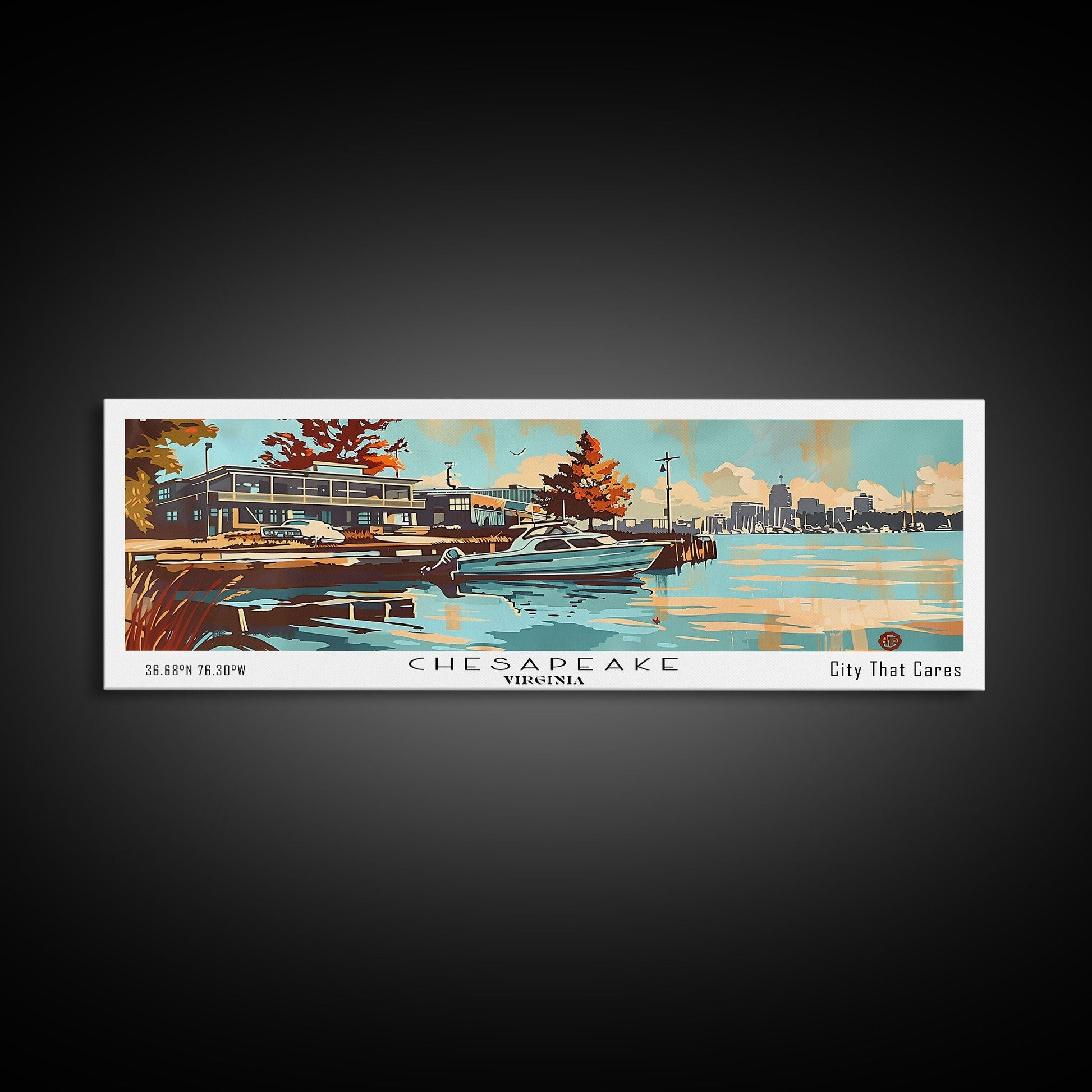 Chesapeake Virginia Panoramic Wall Art, Mid Century Modern Framed Canvas Print, Retro Pop Art Travel Poster, Office Art, Living Room Decor