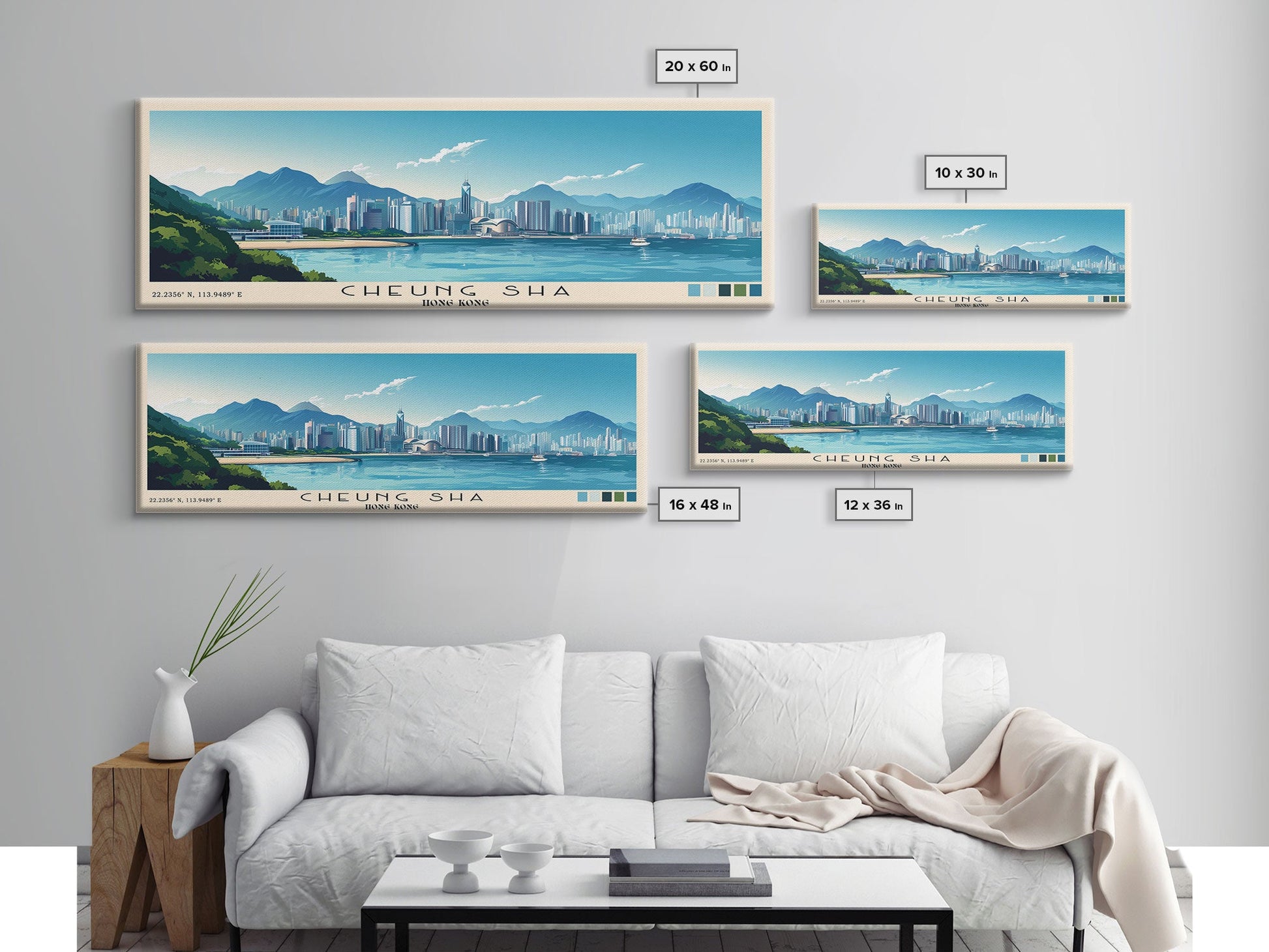 Cheung Sha, Hong Kong Panoramic Print, Vacation Gift, Hong Kong Wall Art, Beach Painting, Beach Decor, Large Wall Art, Wood Frame Art