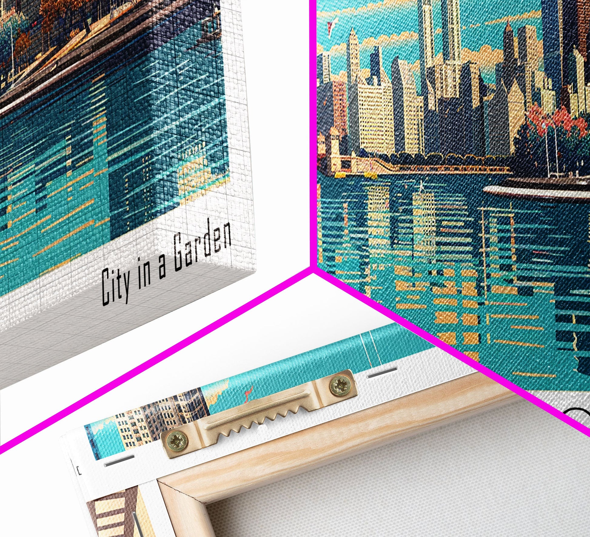 Chicago Illinois Panoramic Painting, Framed Canvas Print, Mid Century Modern Wall Art, Retro Pop Art Travel Poster, Office Decor, City Art