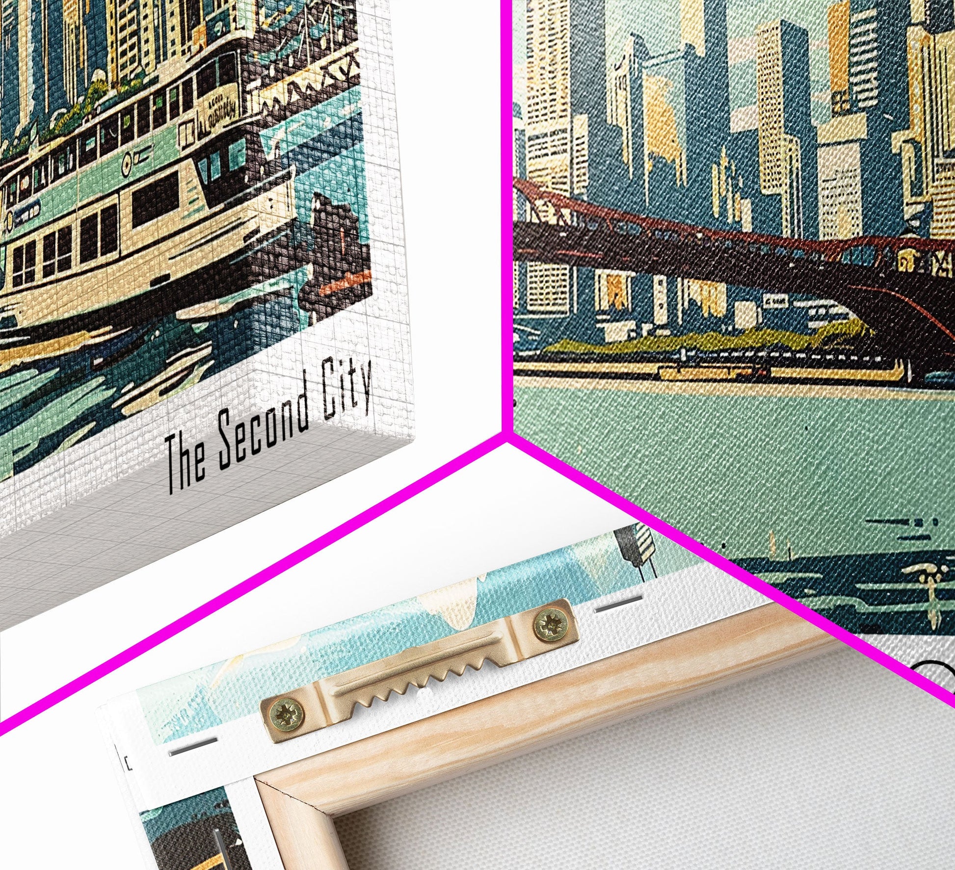 Chicago Illinois Panoramic Painting, Mid Century Modern Framed Canvas Print, Retro Pop Art Travel Poster, Wall Decor, Gift Idea, Home Decor