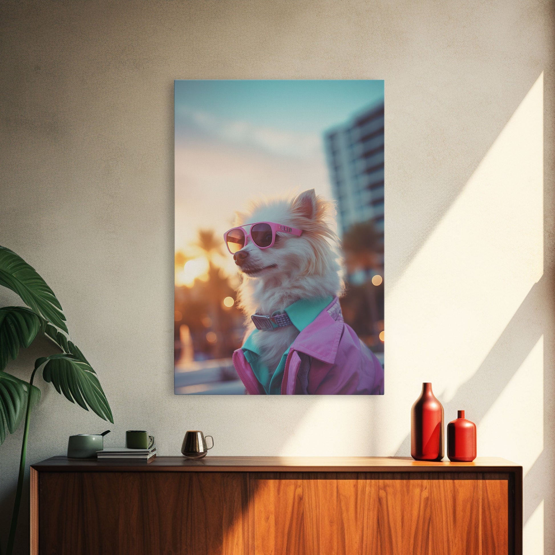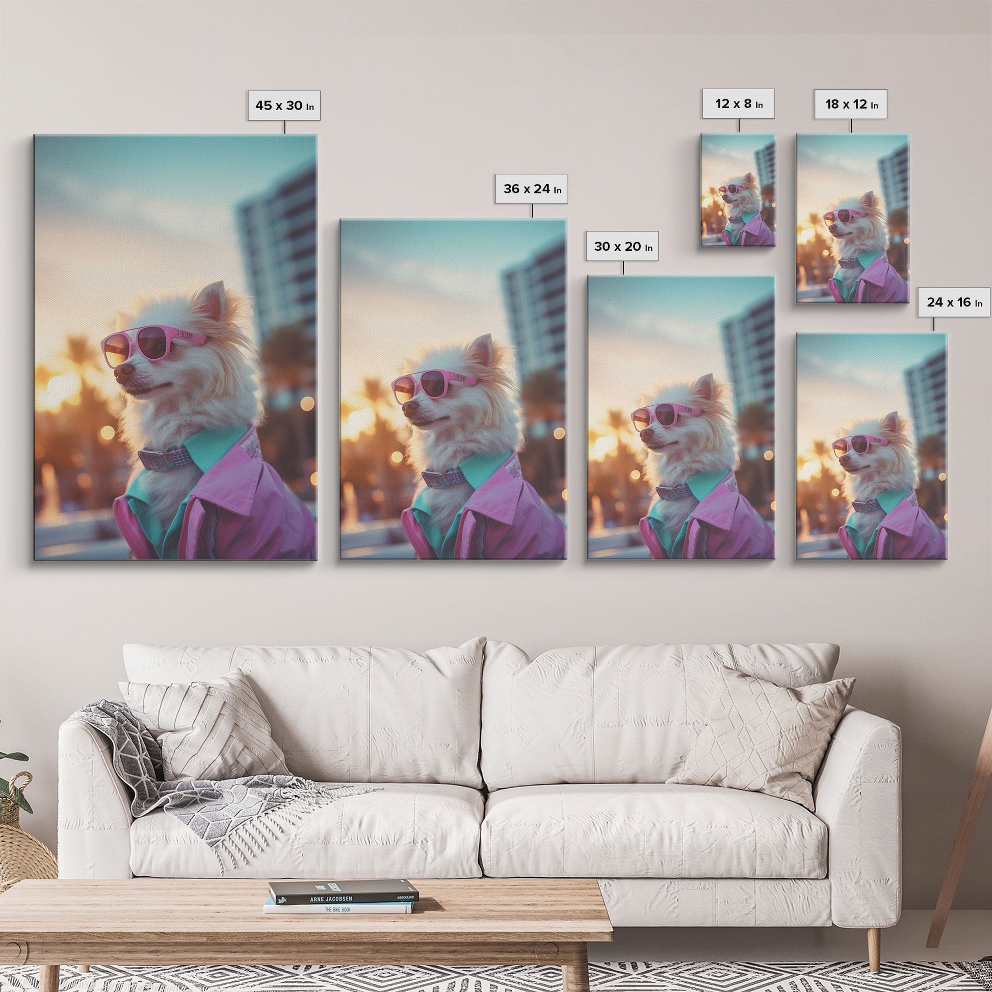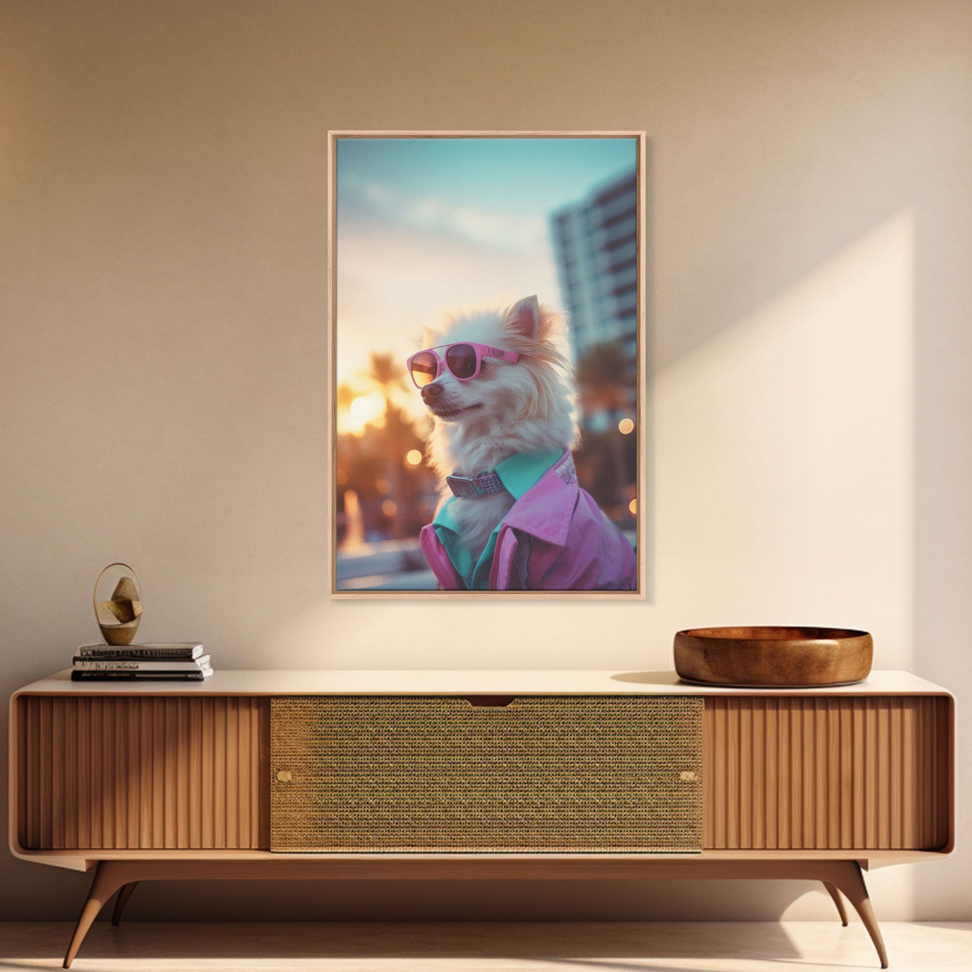 Chihuahua Wall Print, Dog Wall Art, Dog Sunglasses, Dog In Pink Jacket, Funny Art, Framed Wall Art, Framed Canvas, Wall Print, Wall Canvas