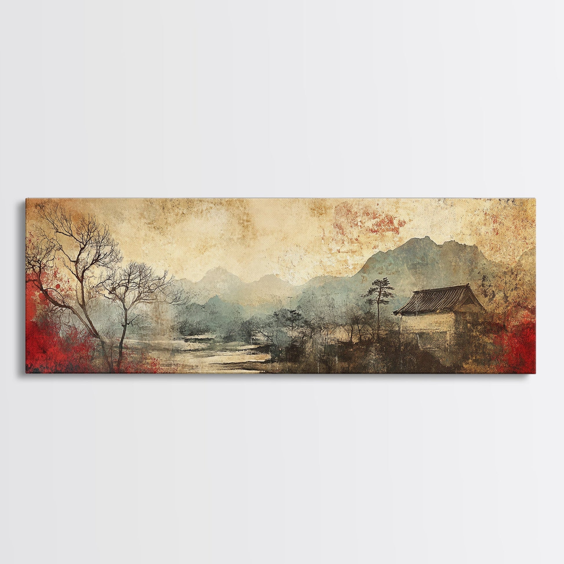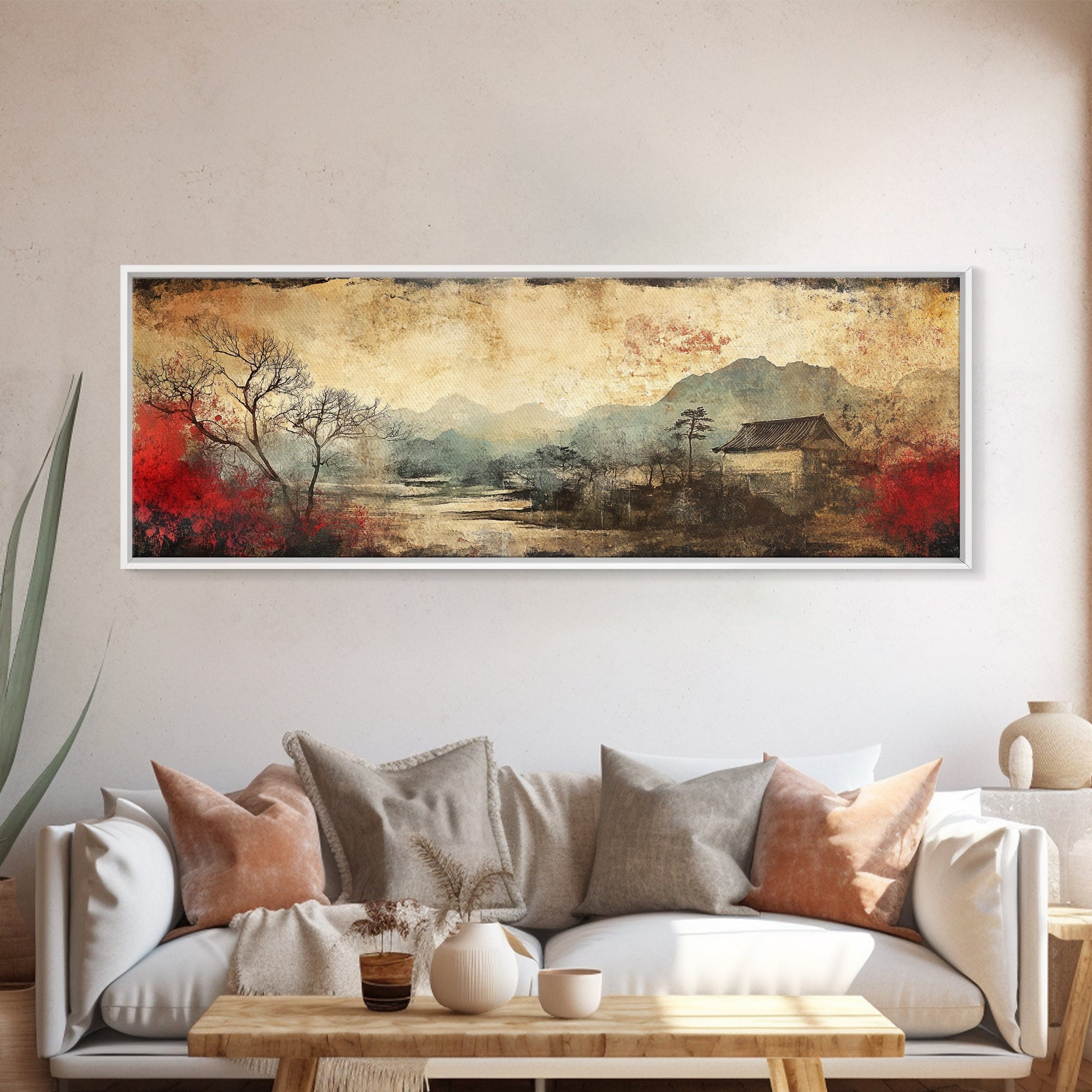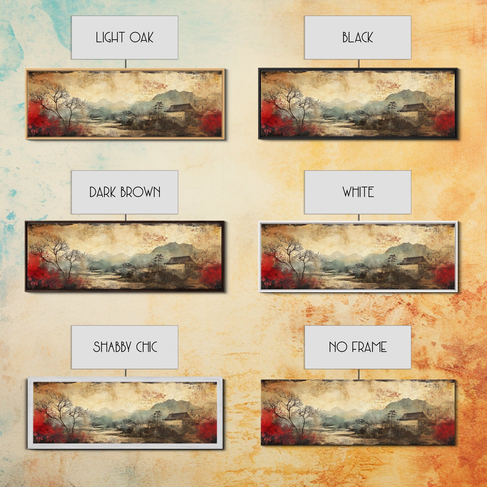 Chinoiserie Framed Canvas Print Japanese Minimalist Art Zen Wall Art Botanical Prints Nature Inspired Bedroom Artwork Decor