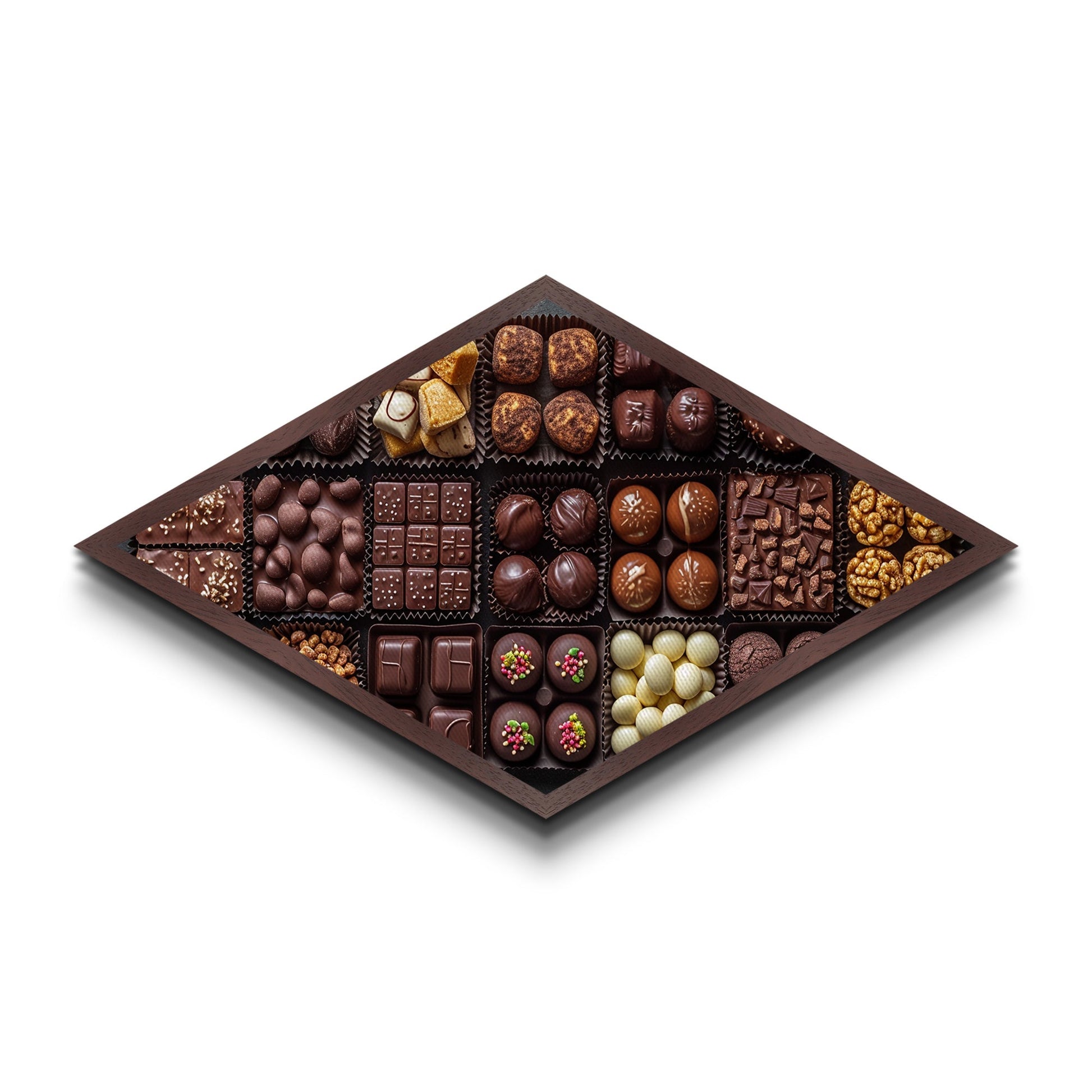 Chocolate Bliss Box Diamond Shaped Canvas Textured Print Gourmet Sweets Wall Art Kitchen Decor Foodie Gift Valentine's Day