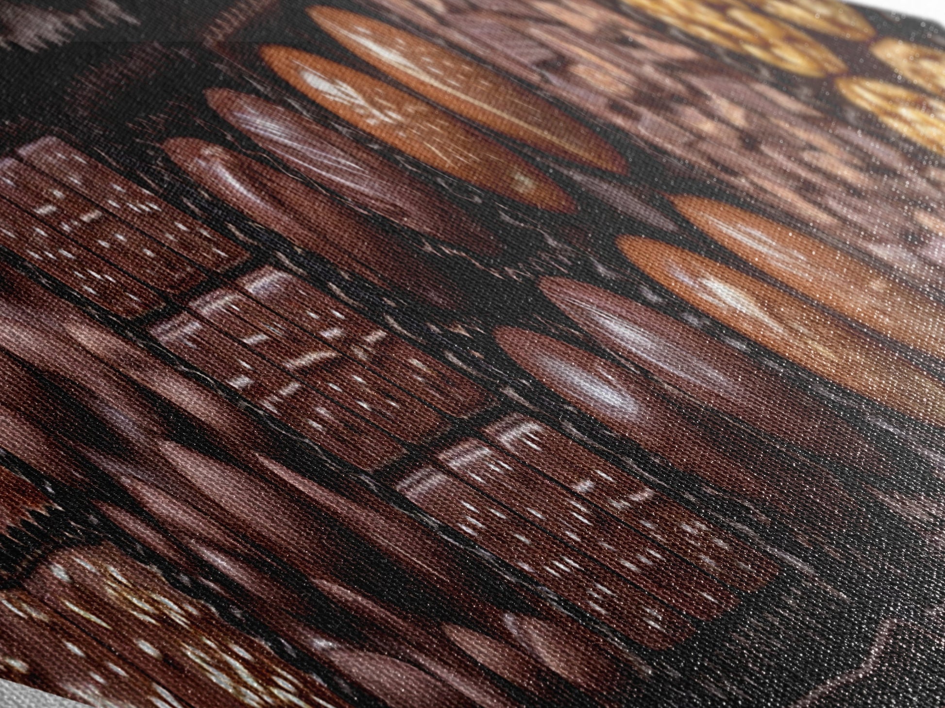 Most of our canvases are made in the USA, with the exception of canvases ordered with the light oak unstained frames, and any large canvases (24x48, 30x60, 16x48 and 20x60) ordered WITH a frame. These are temporarily made in and shipped from Europe, while we try to find a more consistent supplier in the USA.