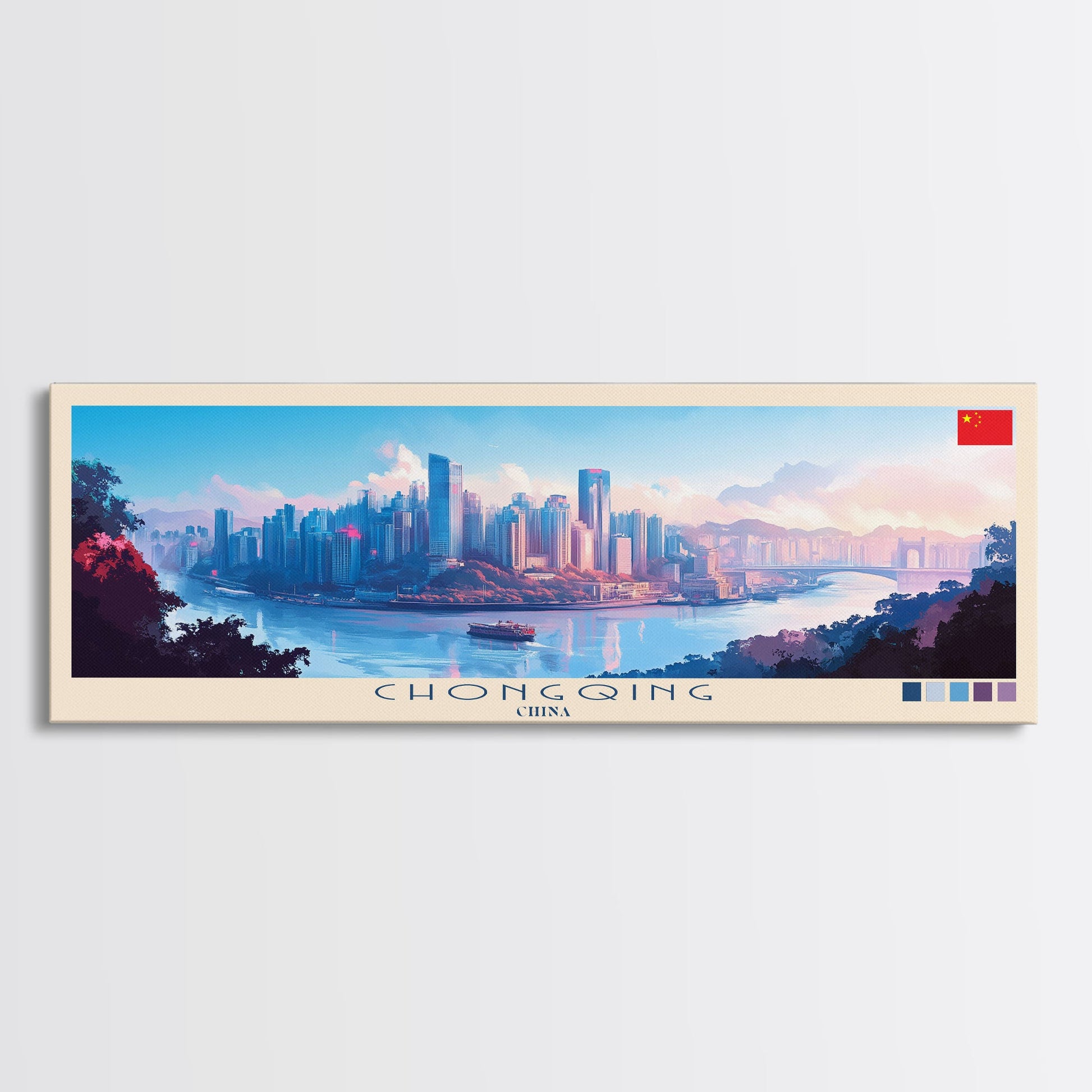 Chongqing, China Panoramic Travel Poster Canvas Print, Chongqing, China Painting, China Art, Chongqing Travel Art, Guest Room Painting