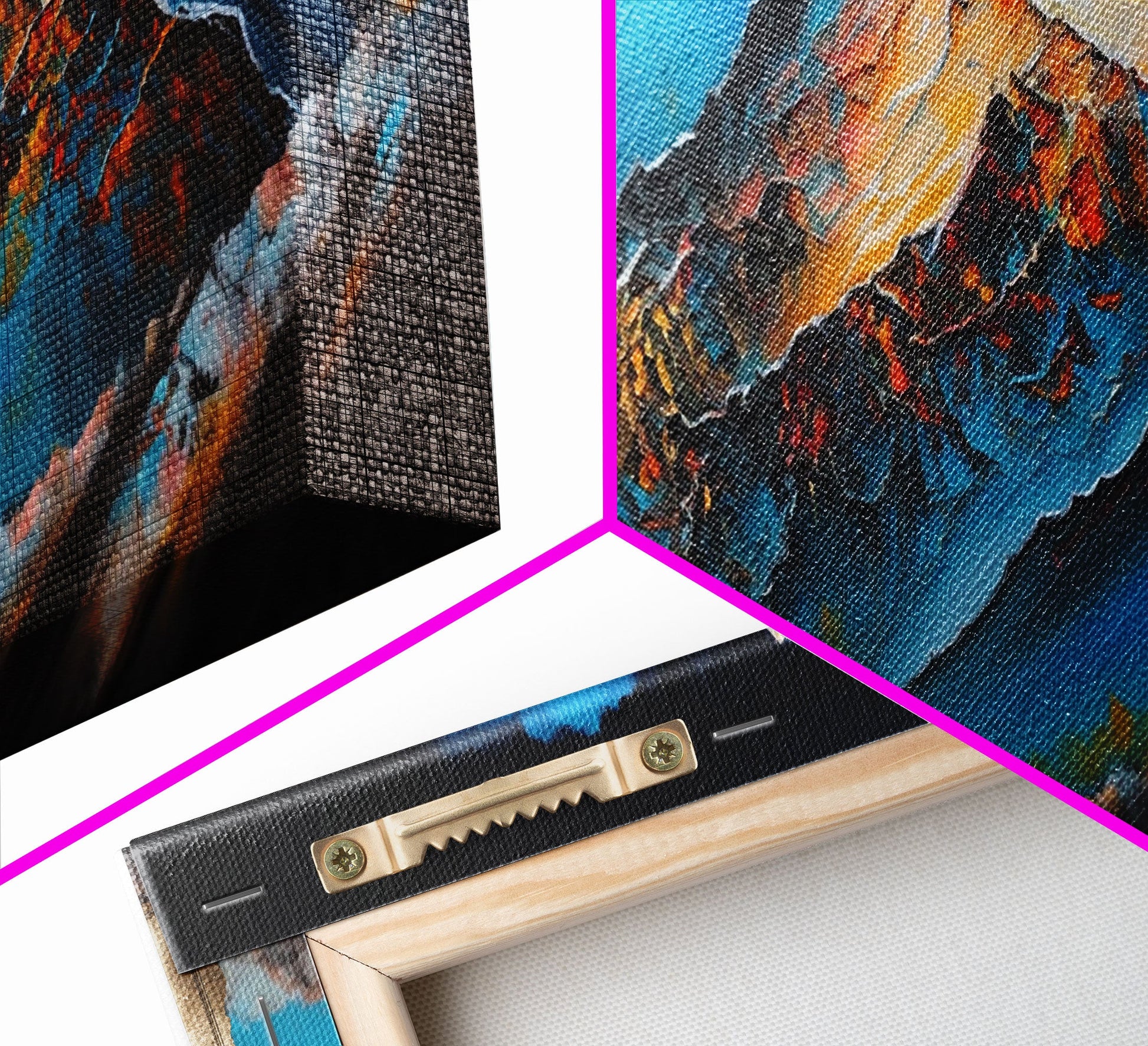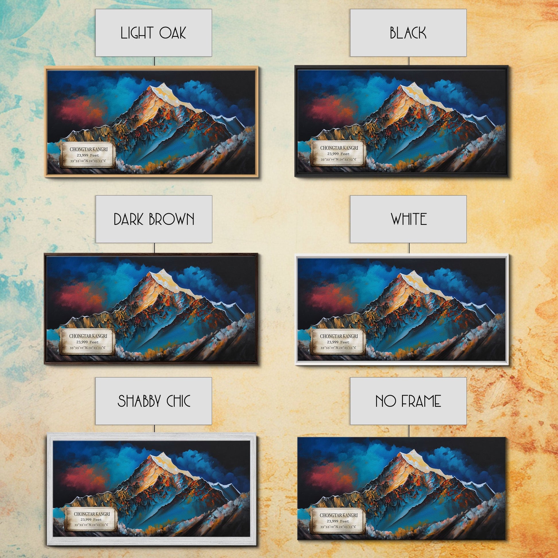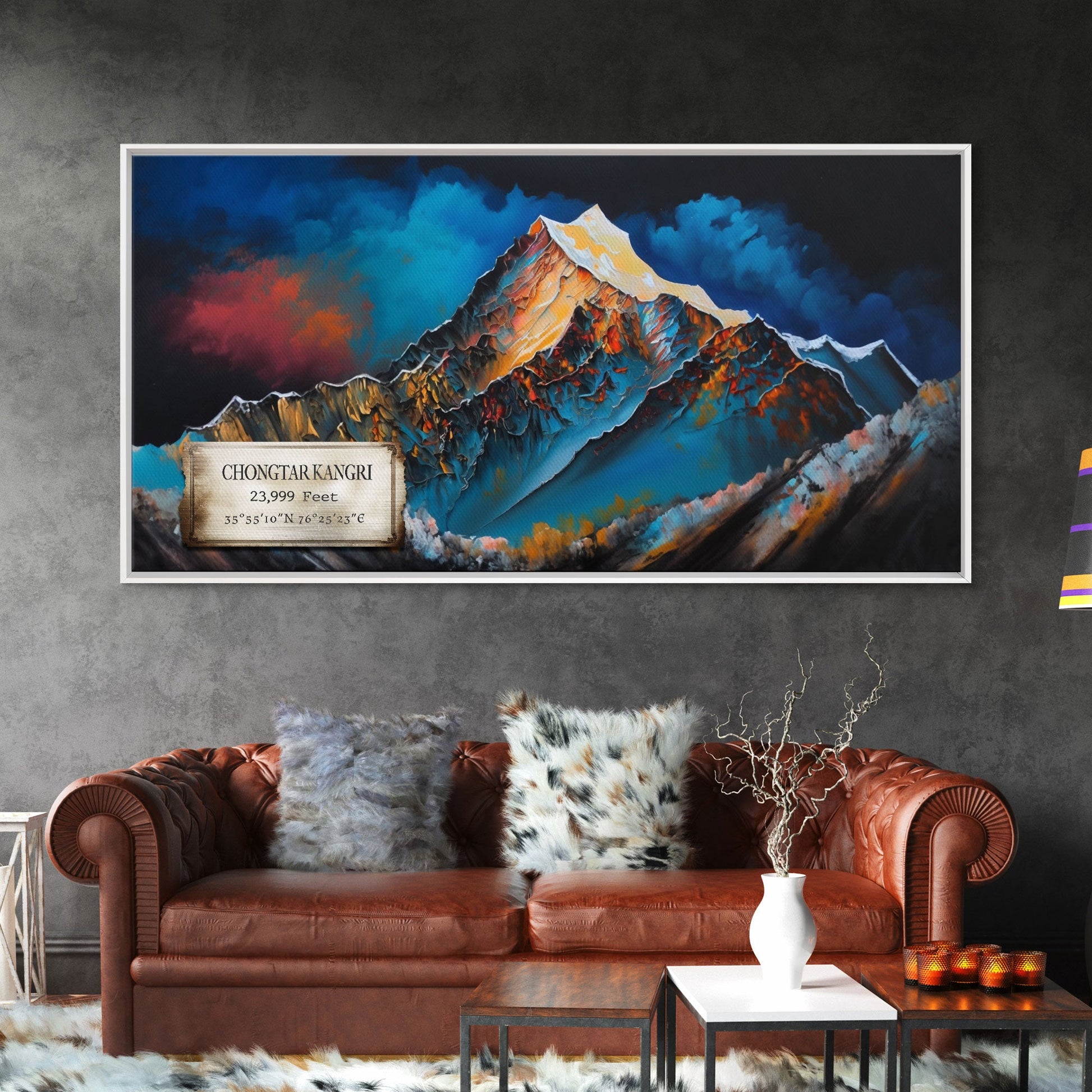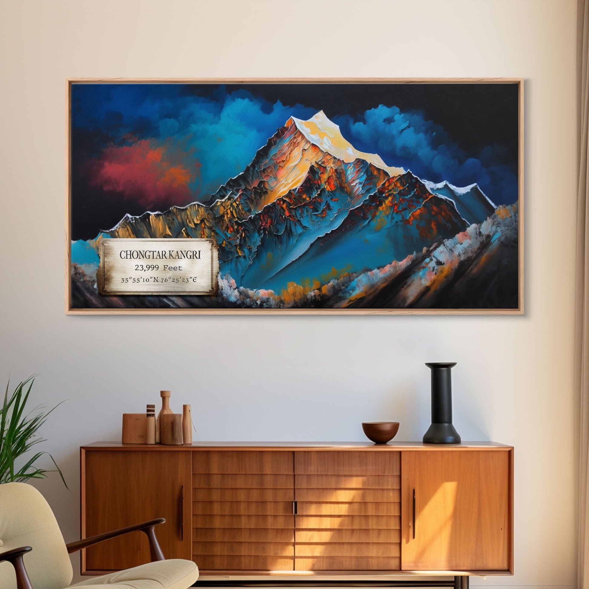 Chongtar Kangri, Travel Poster Wall Art, Framed Canvas Print, Mountain Art, Mountain Landscape Painting