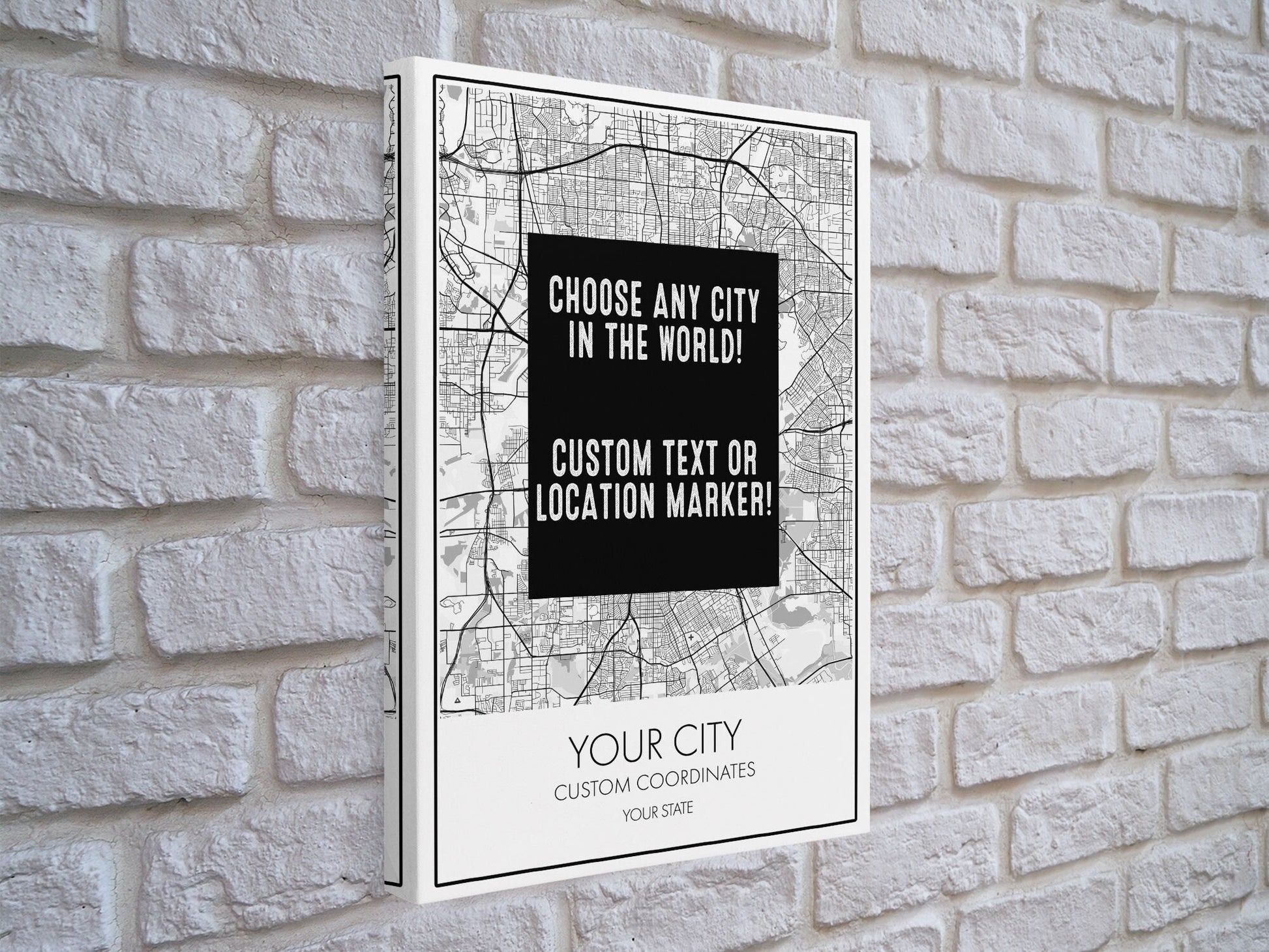 Choose Any City - Custom Map Art - Office Decor Travel Gift Custom Map City Canvas Print Home Town Streets Map Art Wall Poster Gift