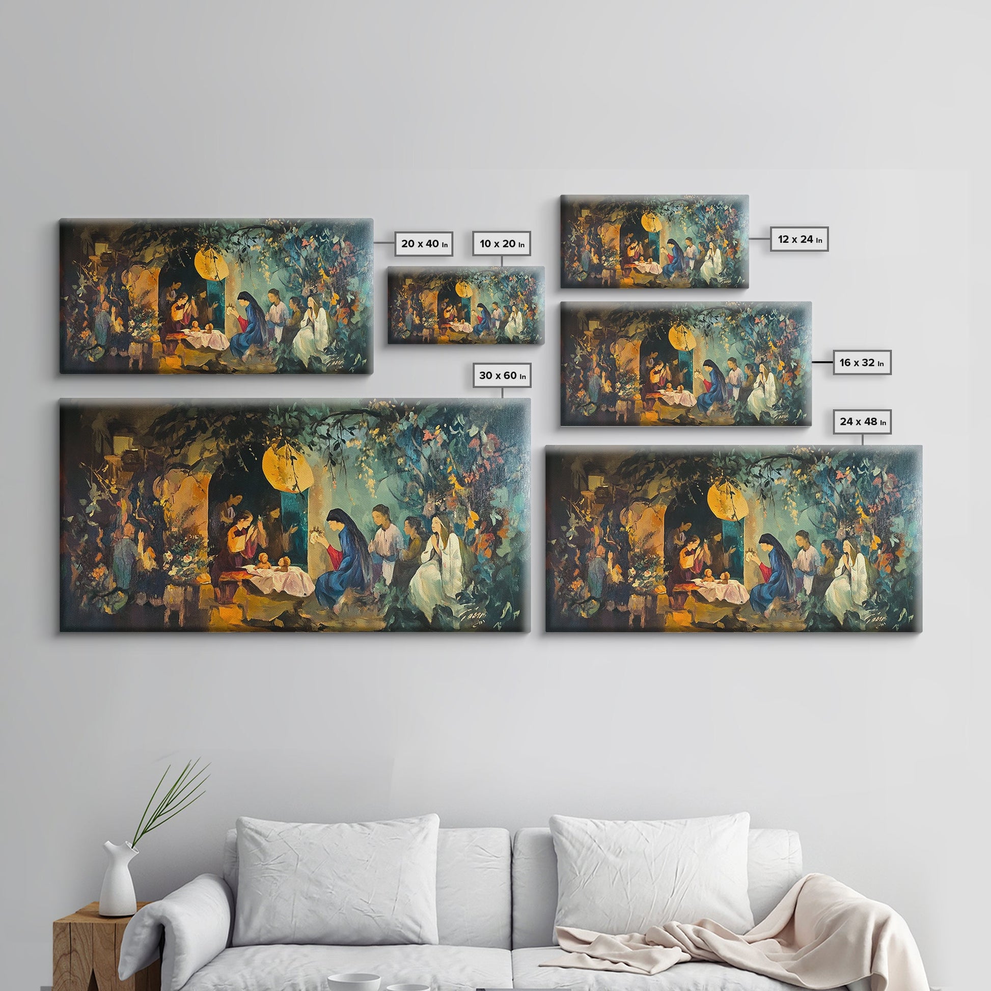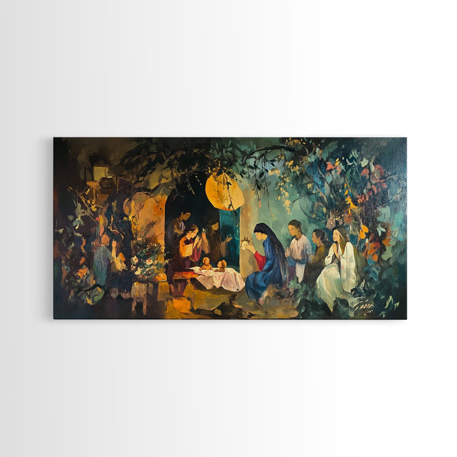 Christian Nativity Jesus In The Manger Ready To Hang Canvas Wall Art - Farmhouse Christmas Decor - Christian Wall Art - Christian Painting