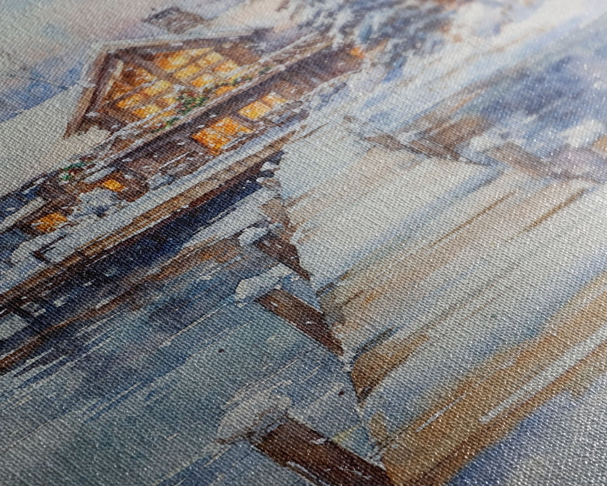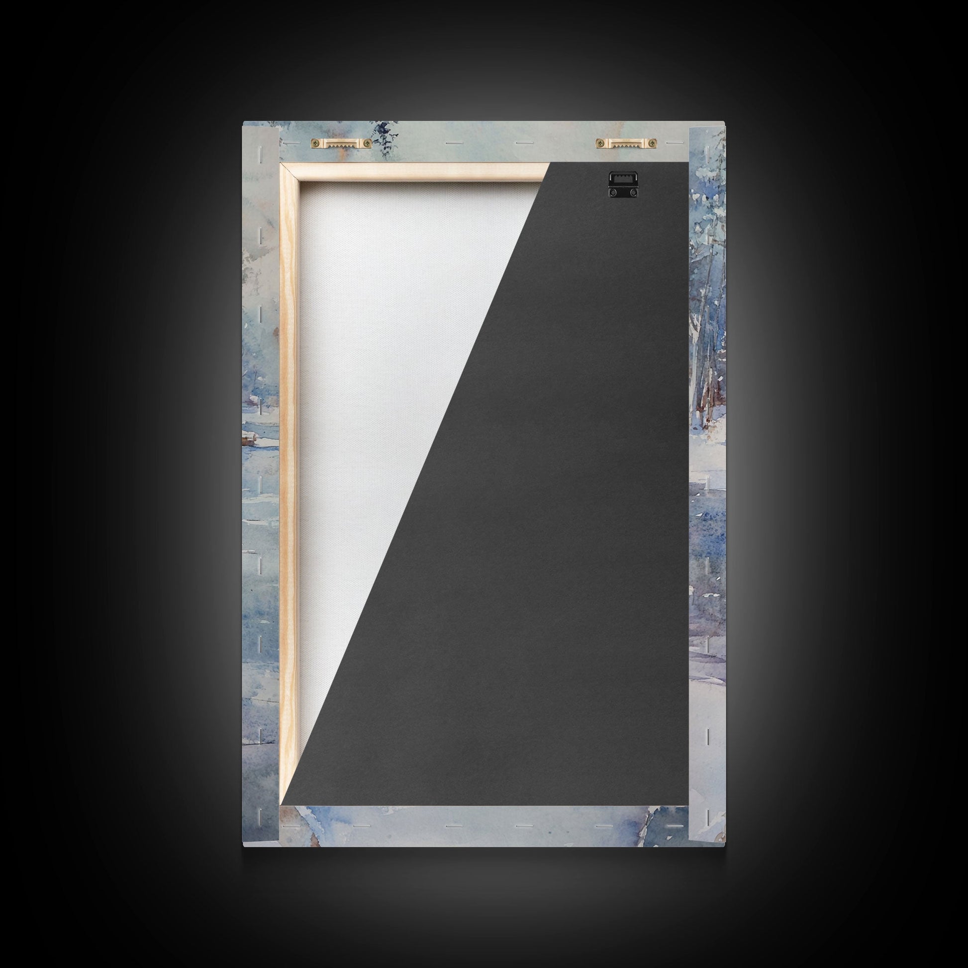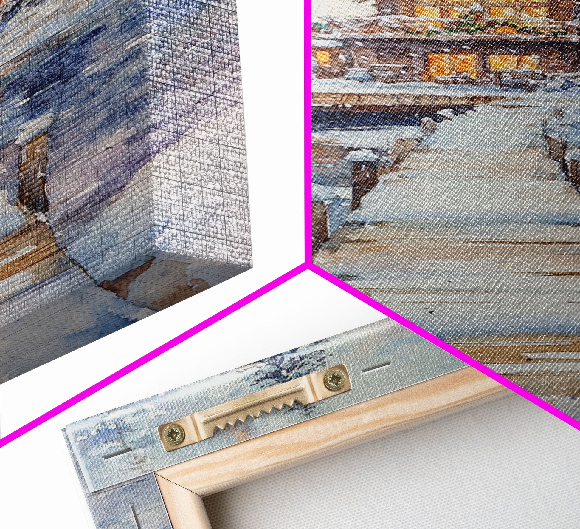 Christmas At The Lake, Framed Canvas Print, Wood Frame Lake House Decor, Winter Lakehouse Art