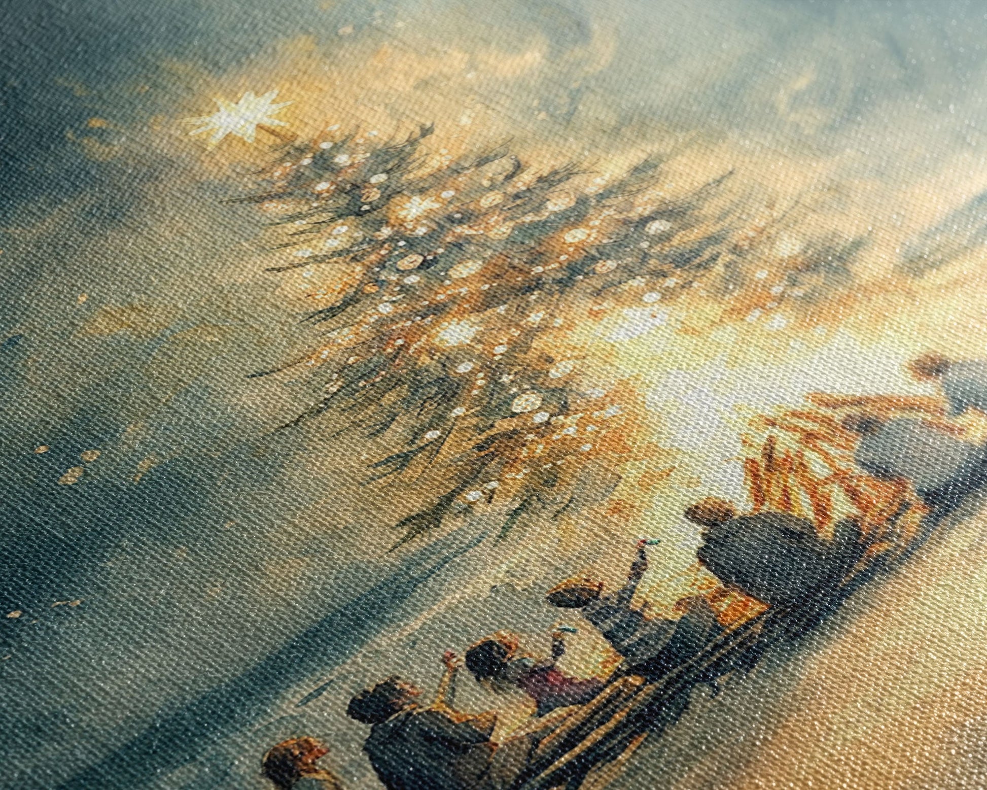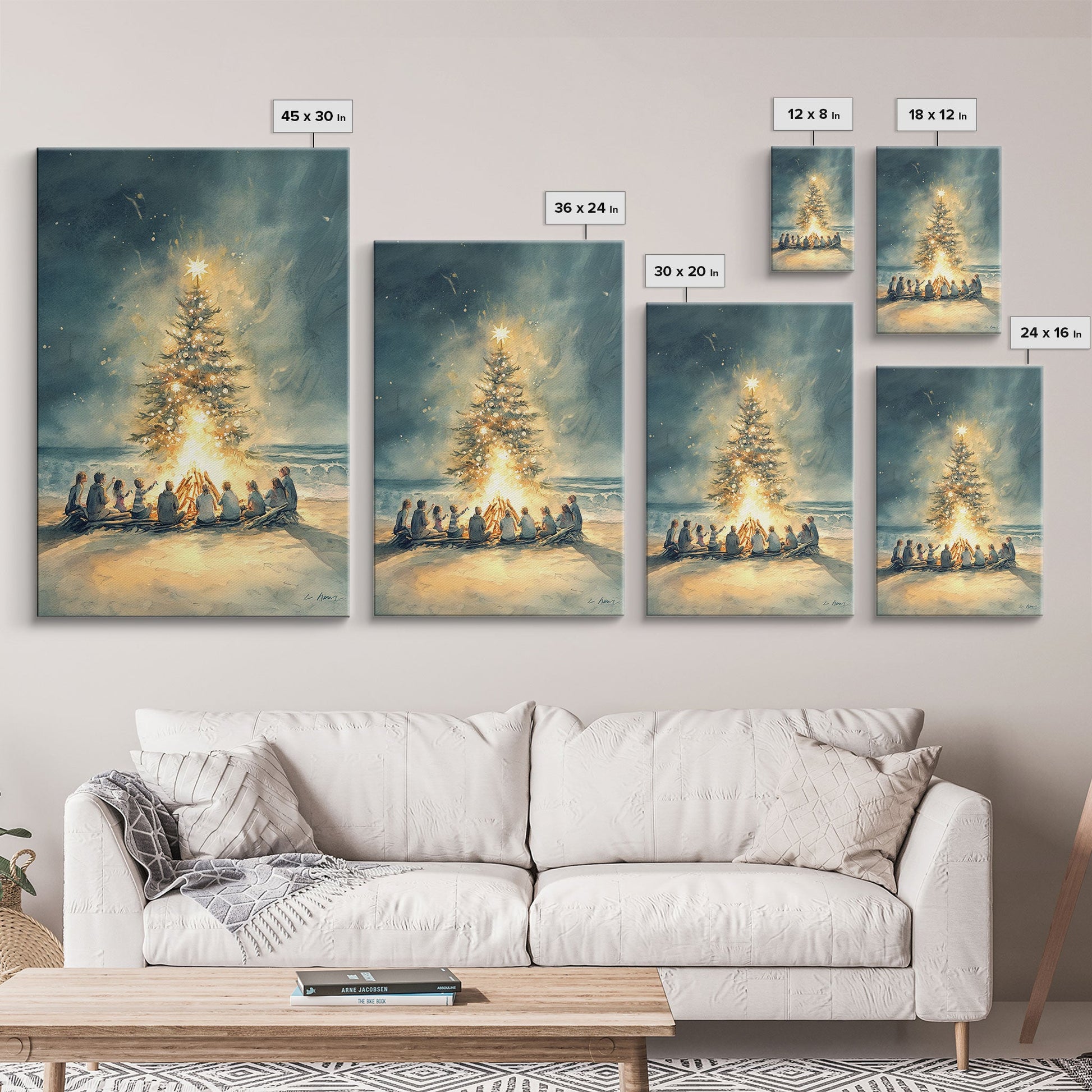Christmas Beach Bonfire Framed Canvas Print, Christmas Painting Wall Art, Christmas Handmade Art, Best Gift Christmas Decor