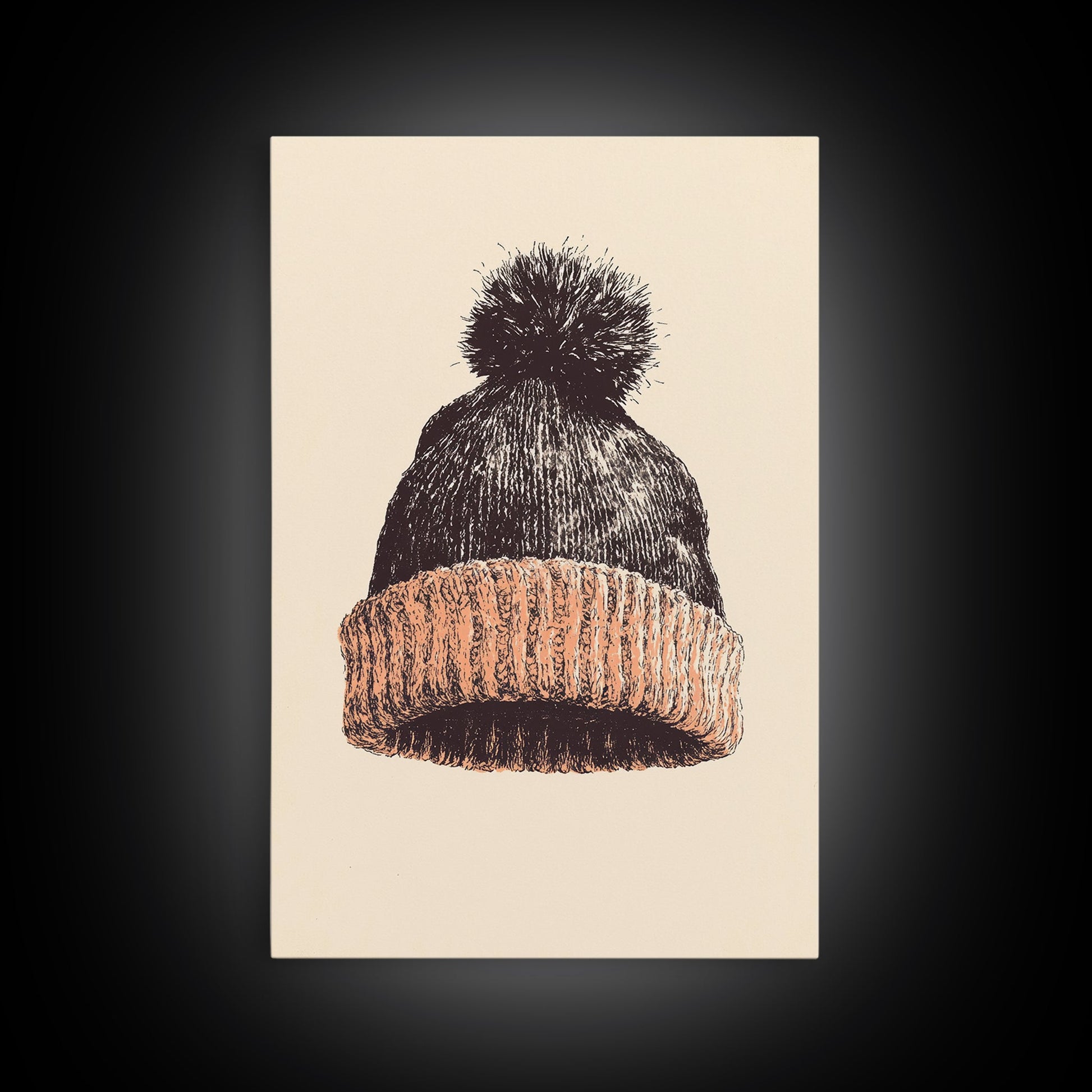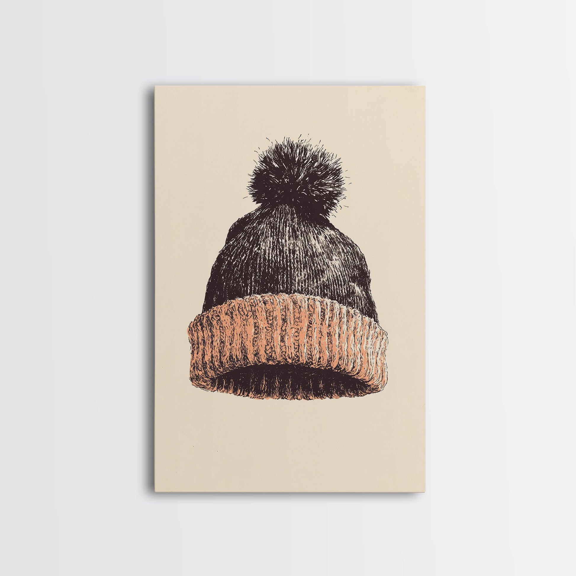 Christmas Beanie Hat Canvas Print - Framed Canvas - Minimalist Christmas Art - Boho Christmas Art - Rustic Christmas Art