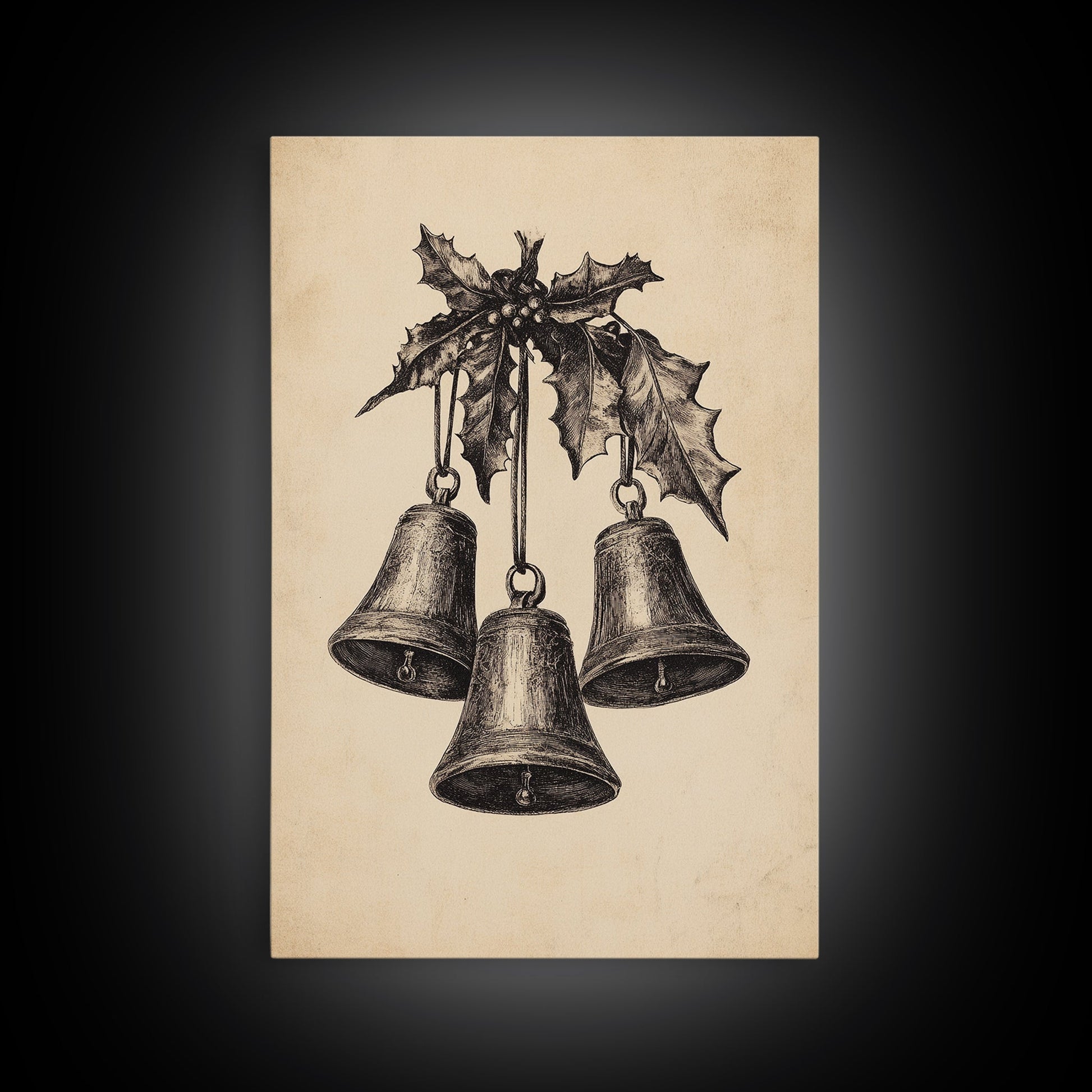 Christmas Bells Canvas Print - Framed Canvas - Minimalist Christmas Art - Boho Christmas Art - Rustic Christmas Art