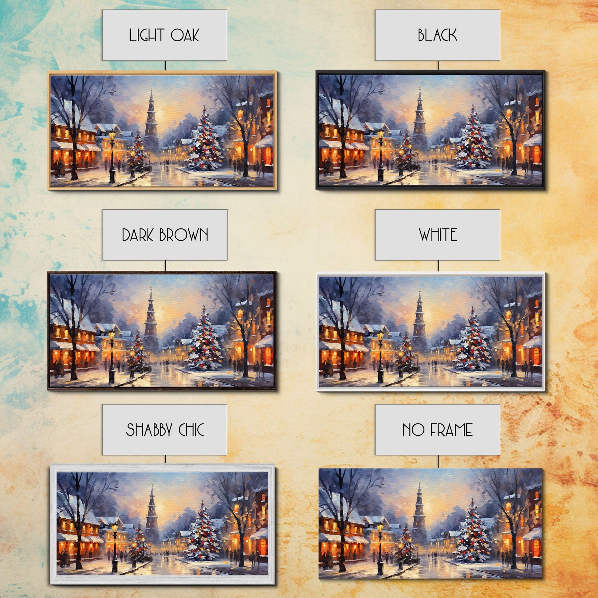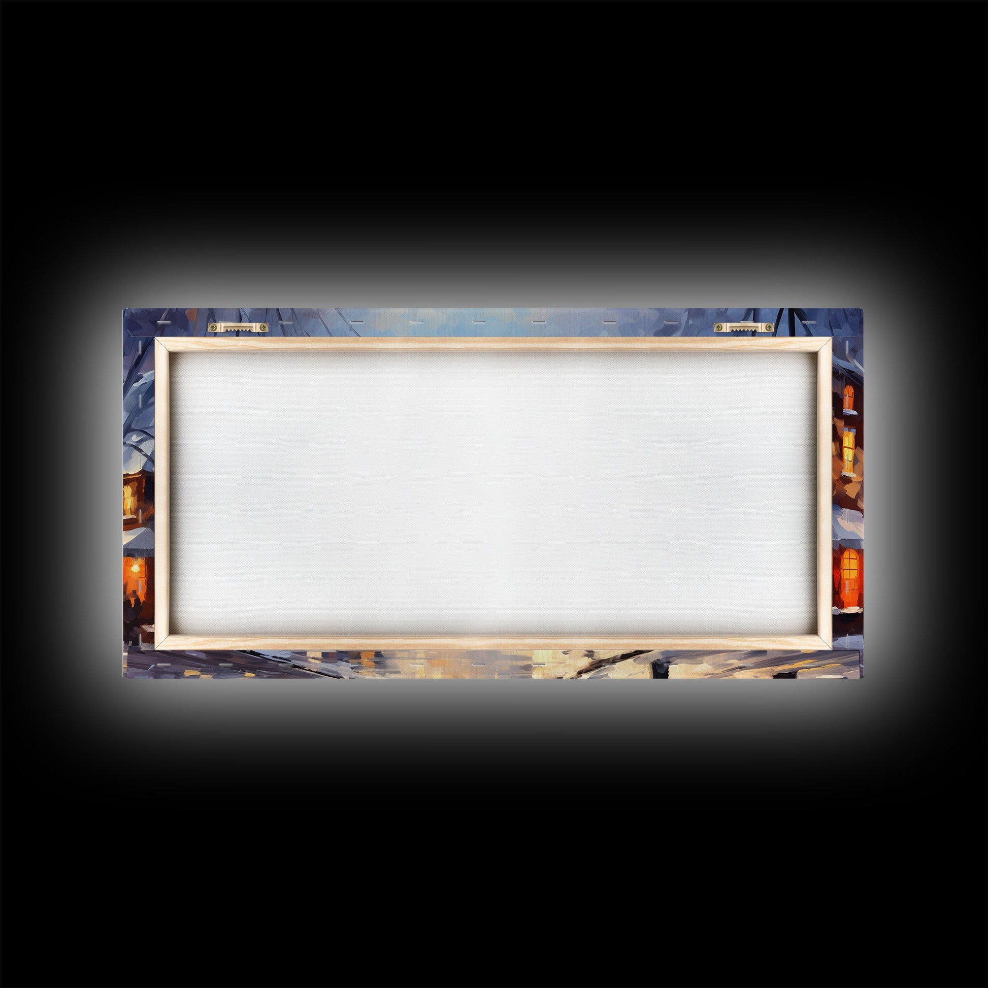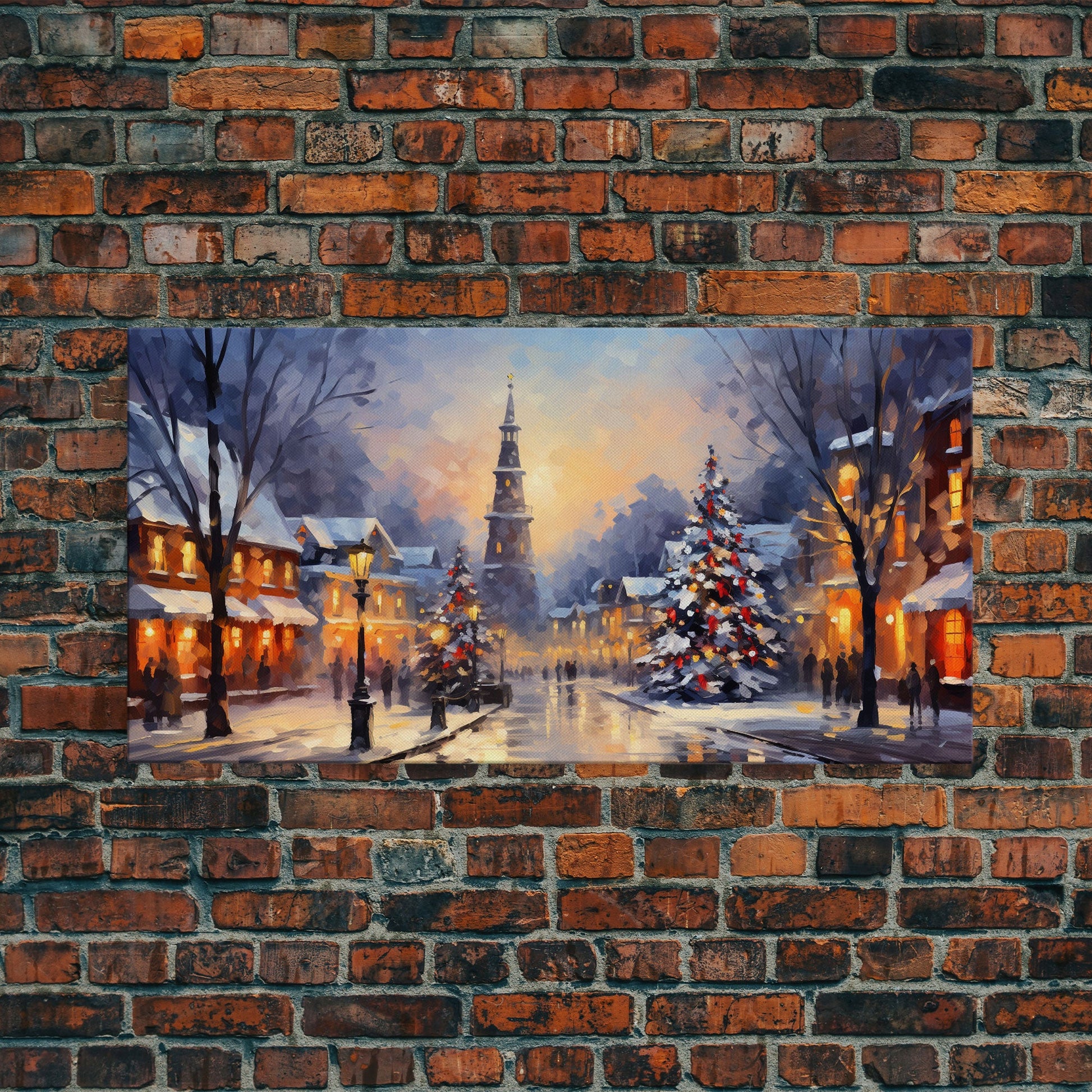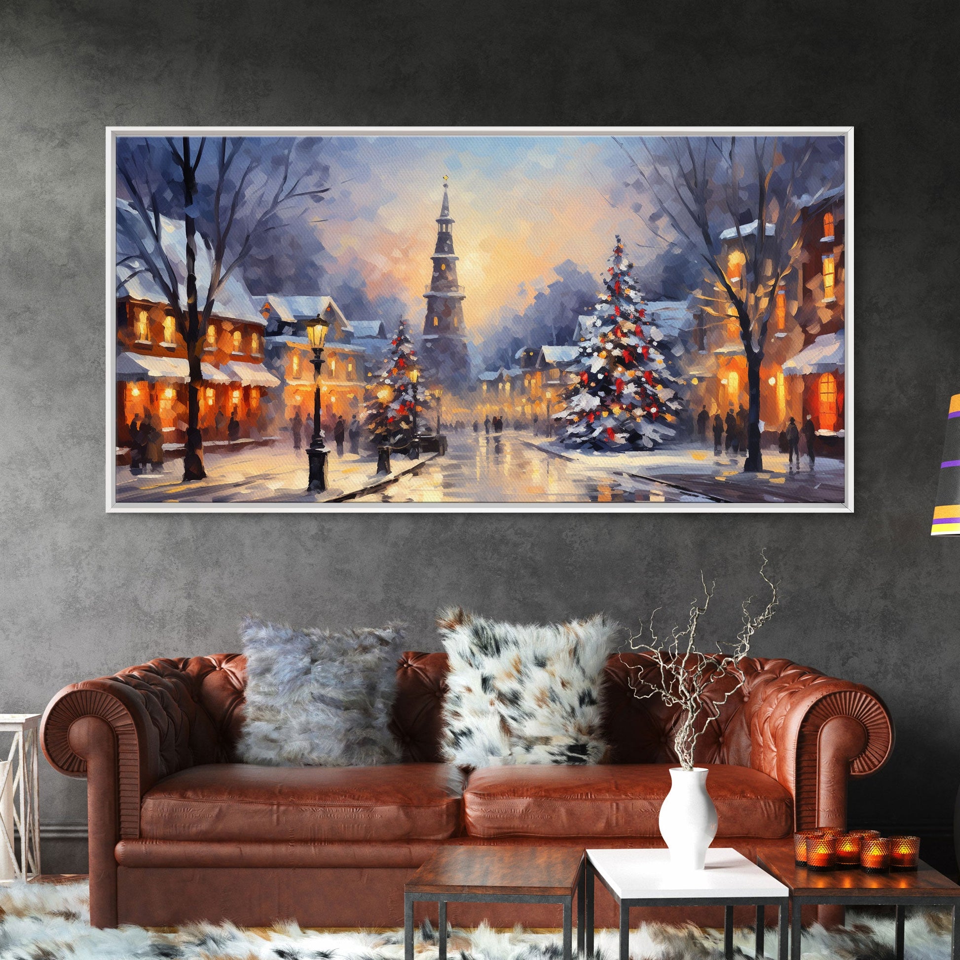 Christmas Centerpiece Wall Art - Framed Canvas Print - Winter Wonderland Victorian Village Decorated for Christmas Canvas Wall Art