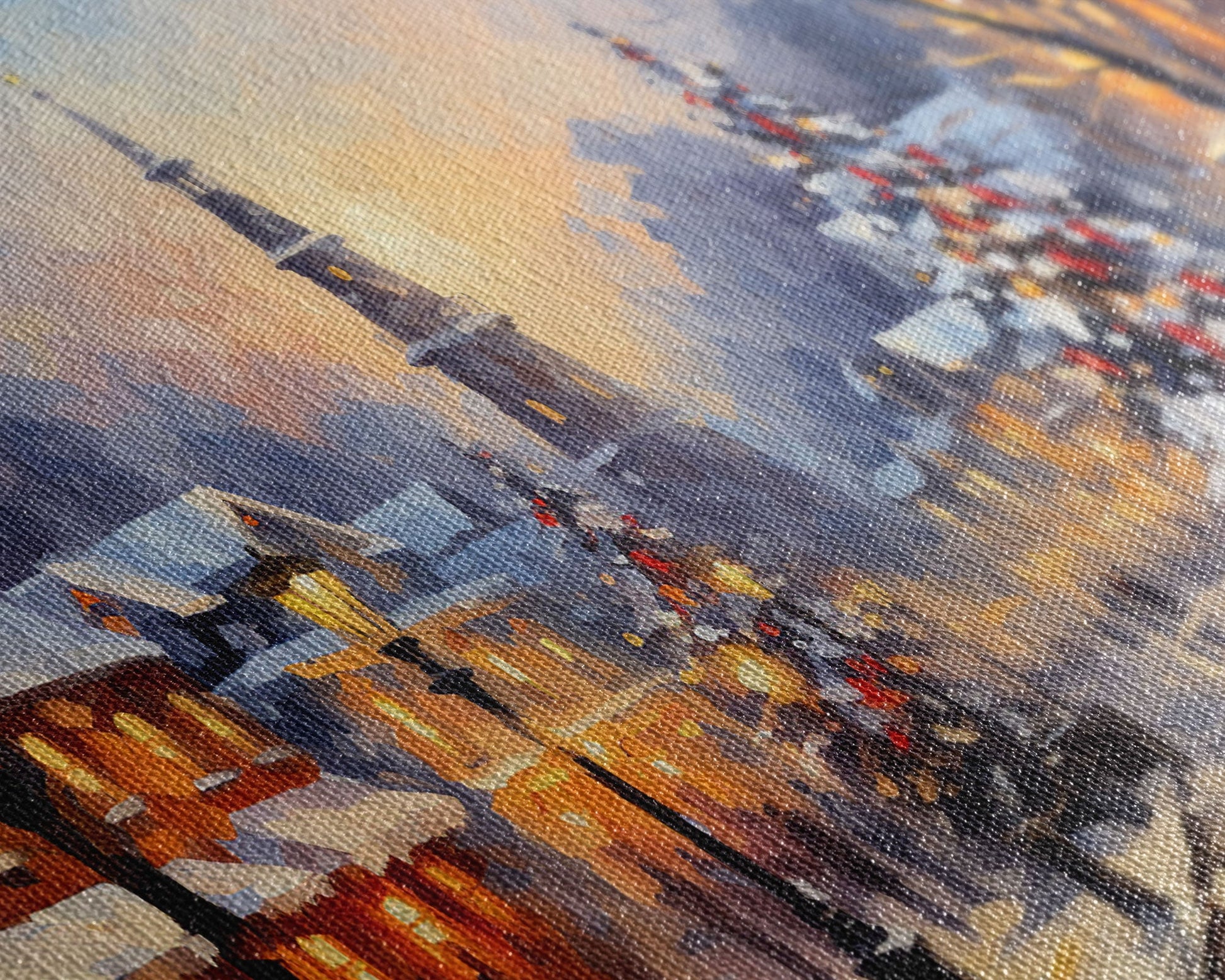 Most of our canvases are made in the USA, with the exception of canvases ordered with the light oak unstained frames, and any large canvases (24x48, 30x60, 16x48 and 20x60) ordered WITH a frame. These are temporarily made in and shipped from Europe, while we try to find a more consistent supplier in the USA.