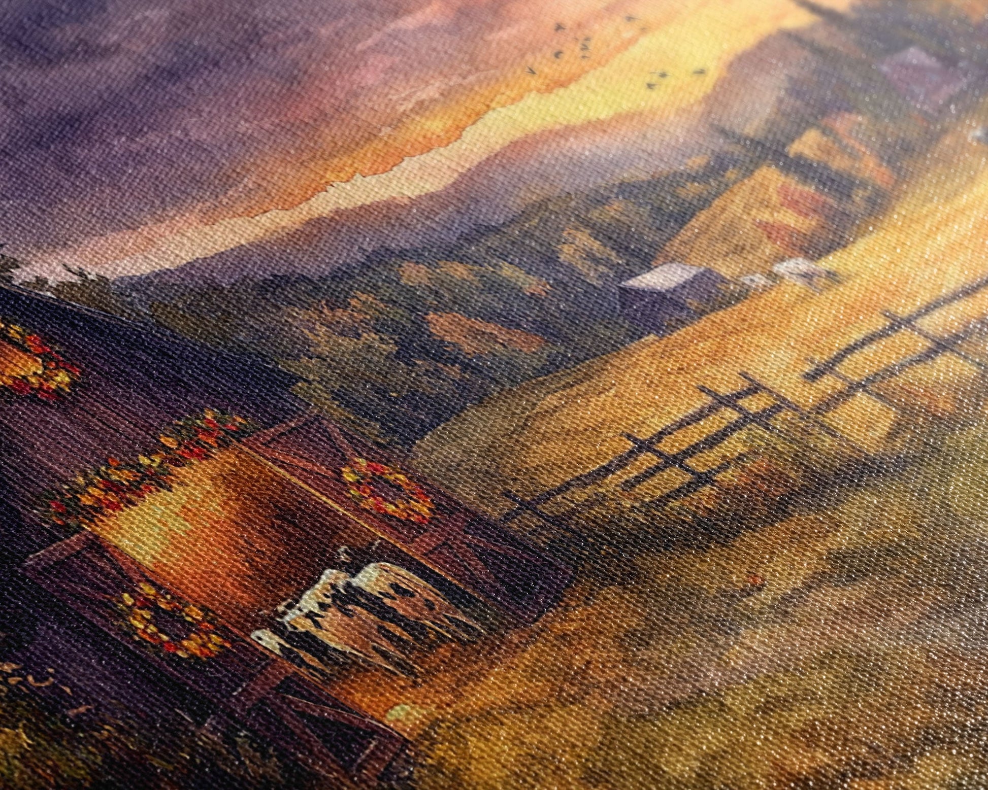 Most of our canvases are made in the USA, with the exception of canvases ordered with the light oak unstained frames, and any large canvases (24x48, 30x60, 16x48 and 20x60) ordered WITH a frame. These are temporarily made in and shipped from Europe, while we try to find a more consistent supplier in the USA.