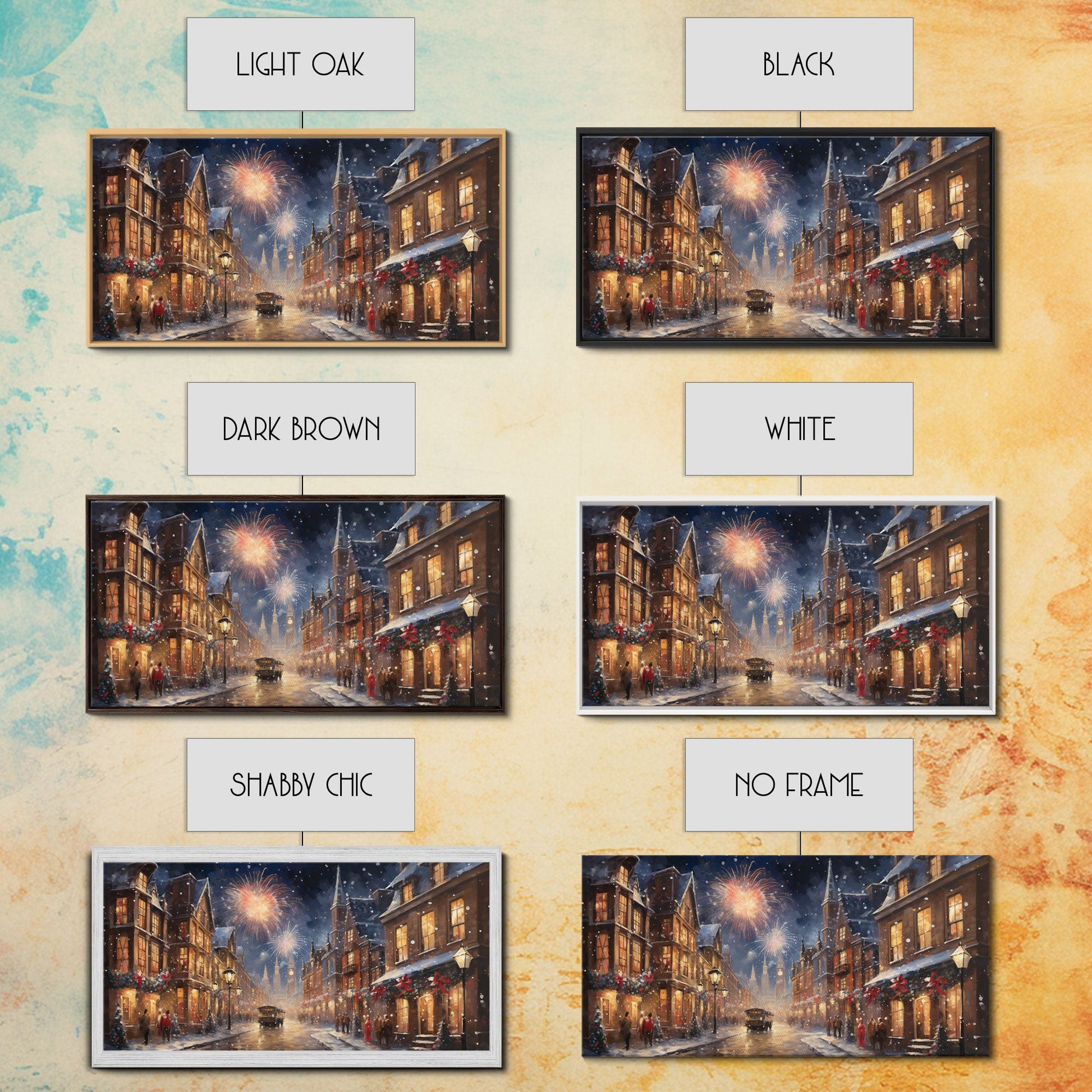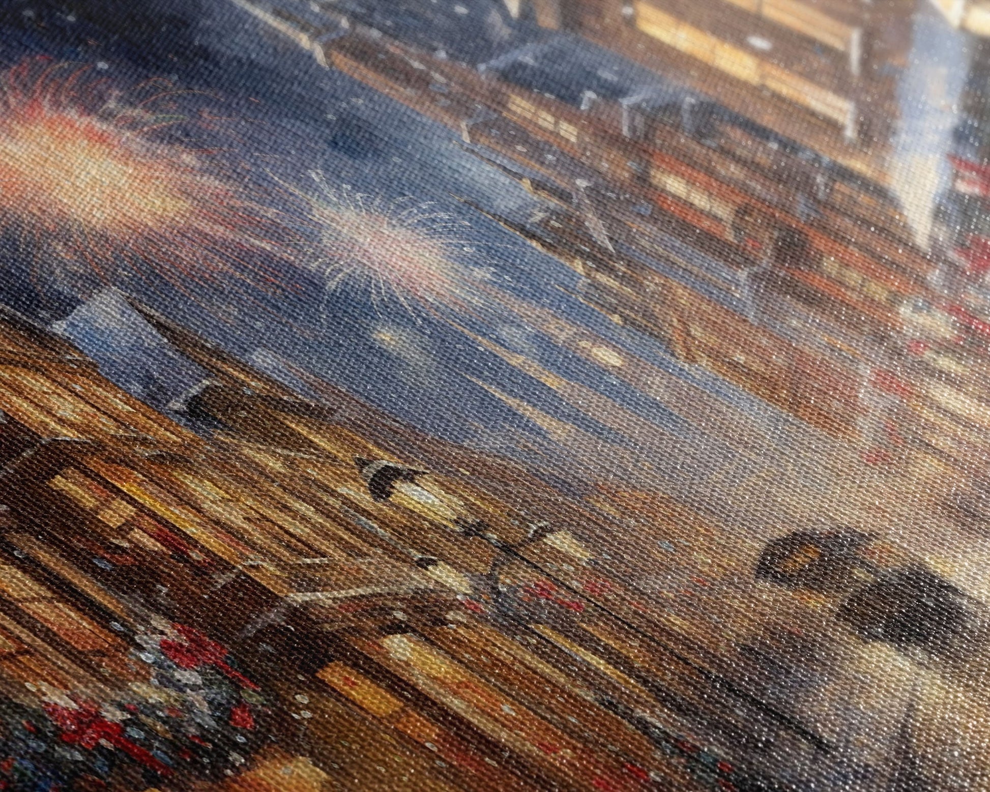 Christmas / New Years Fireworks - Framed Canvas Print - Christmas Wall Art - Christmas Oil Painting - Holiday Decor - Seasonal Art