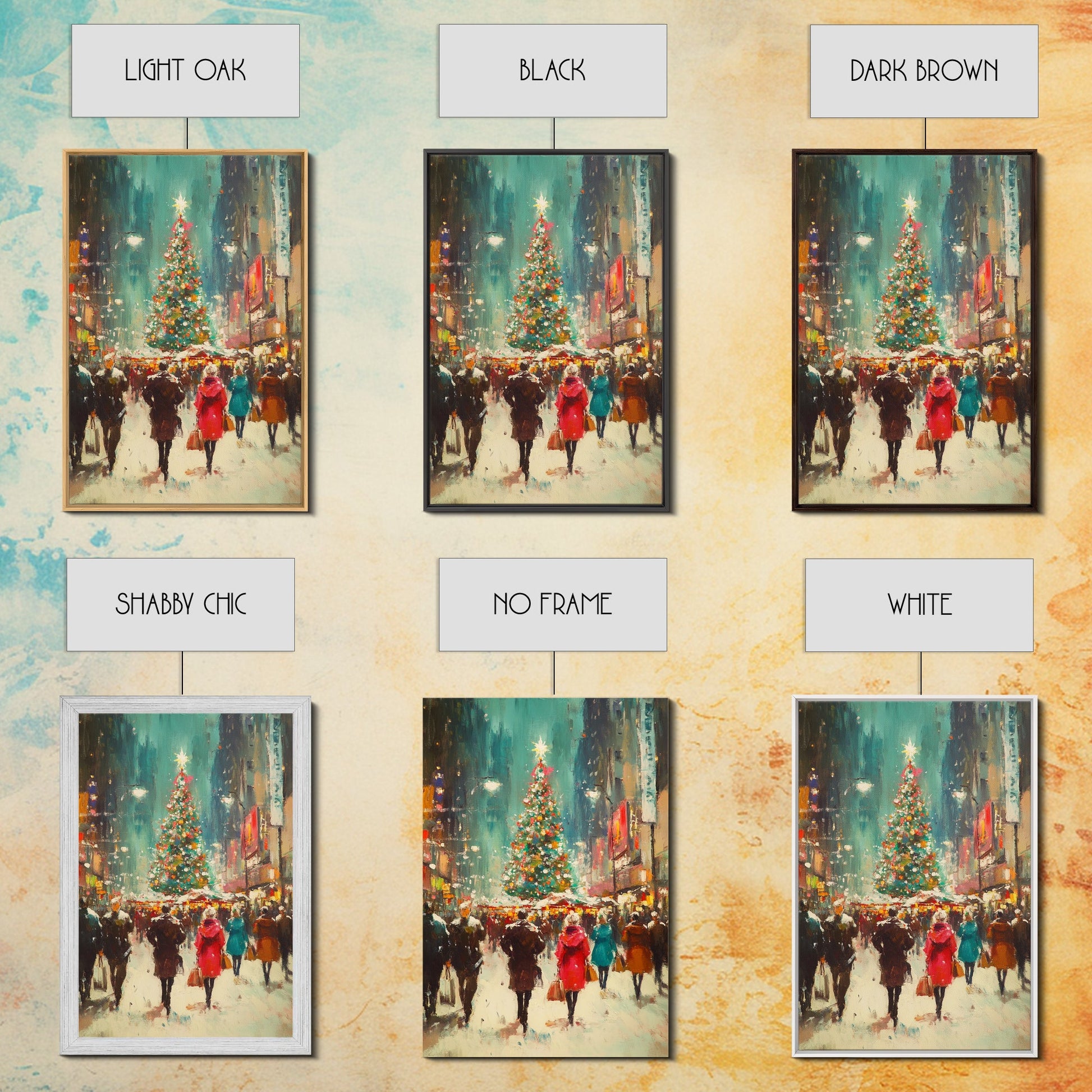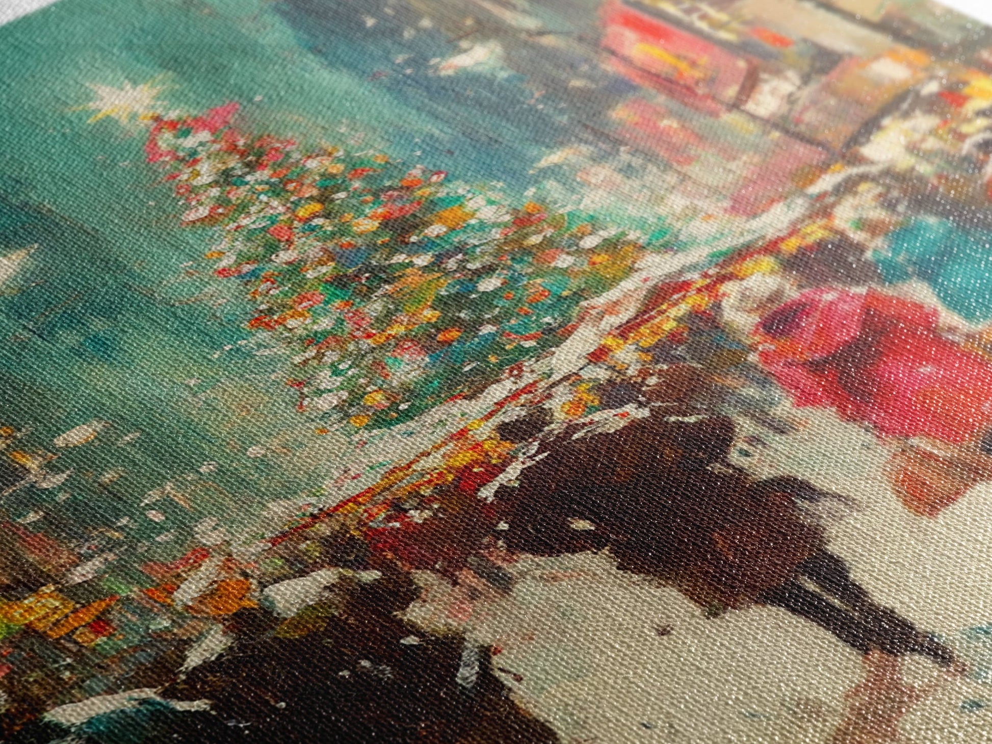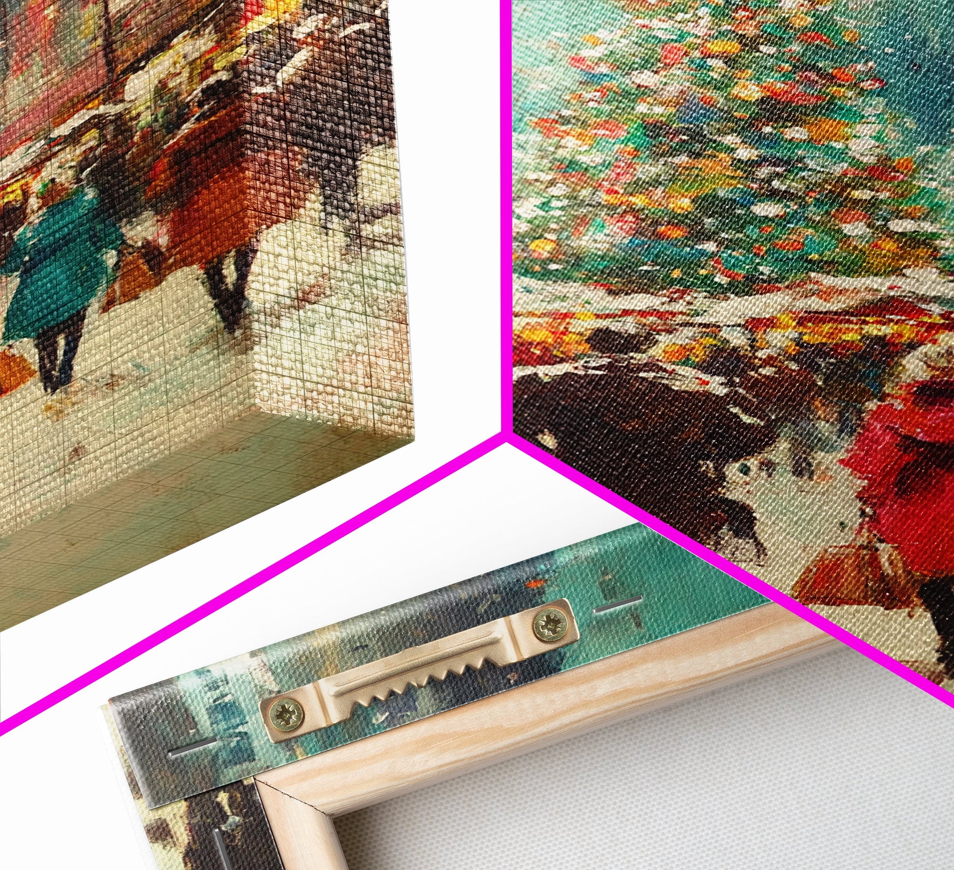 Christmas on The Town Square Framed Canvas Print, Wood Framed Christmas Decor, Holiday Mantle Art, Christmas Centerpiece Wall Art