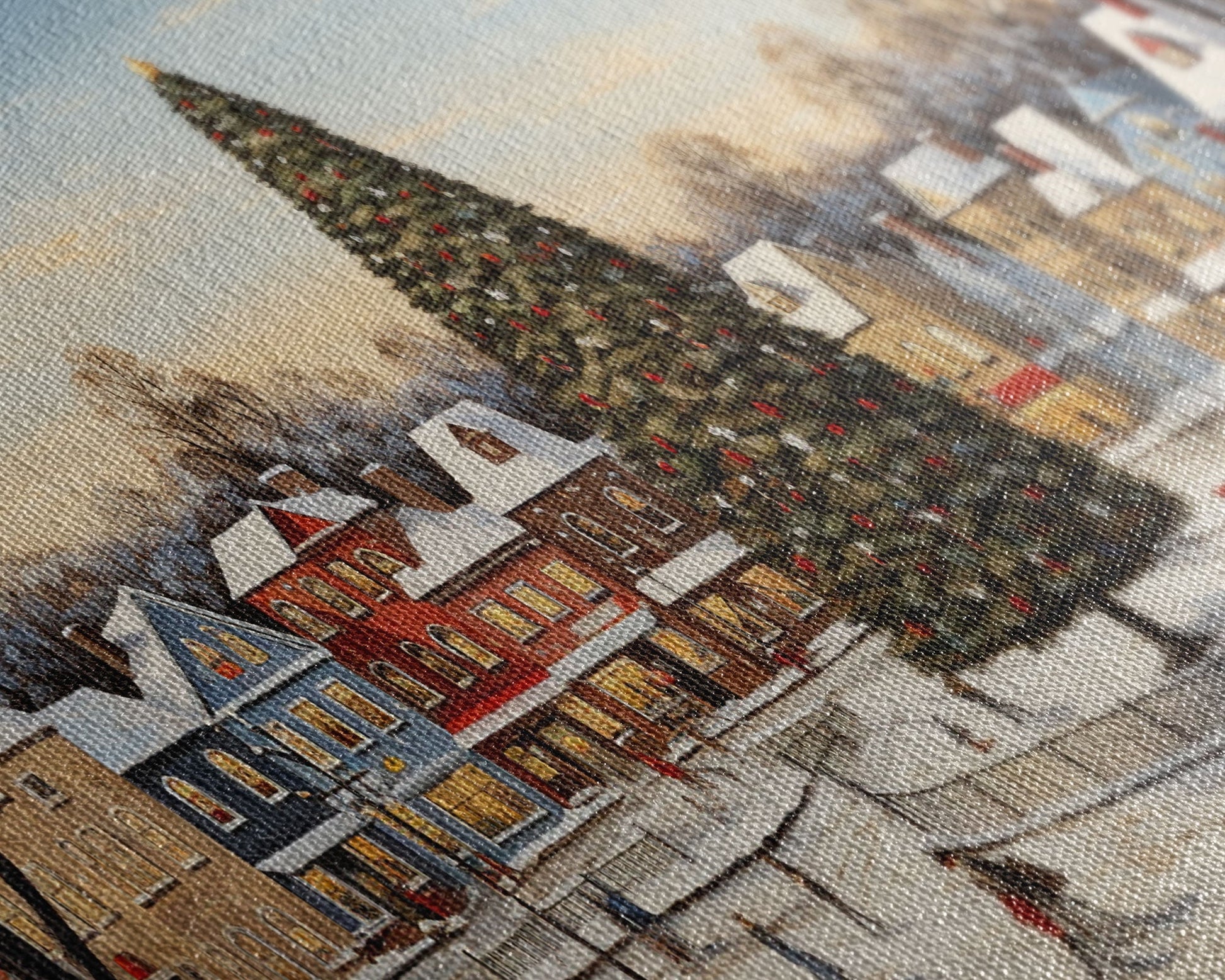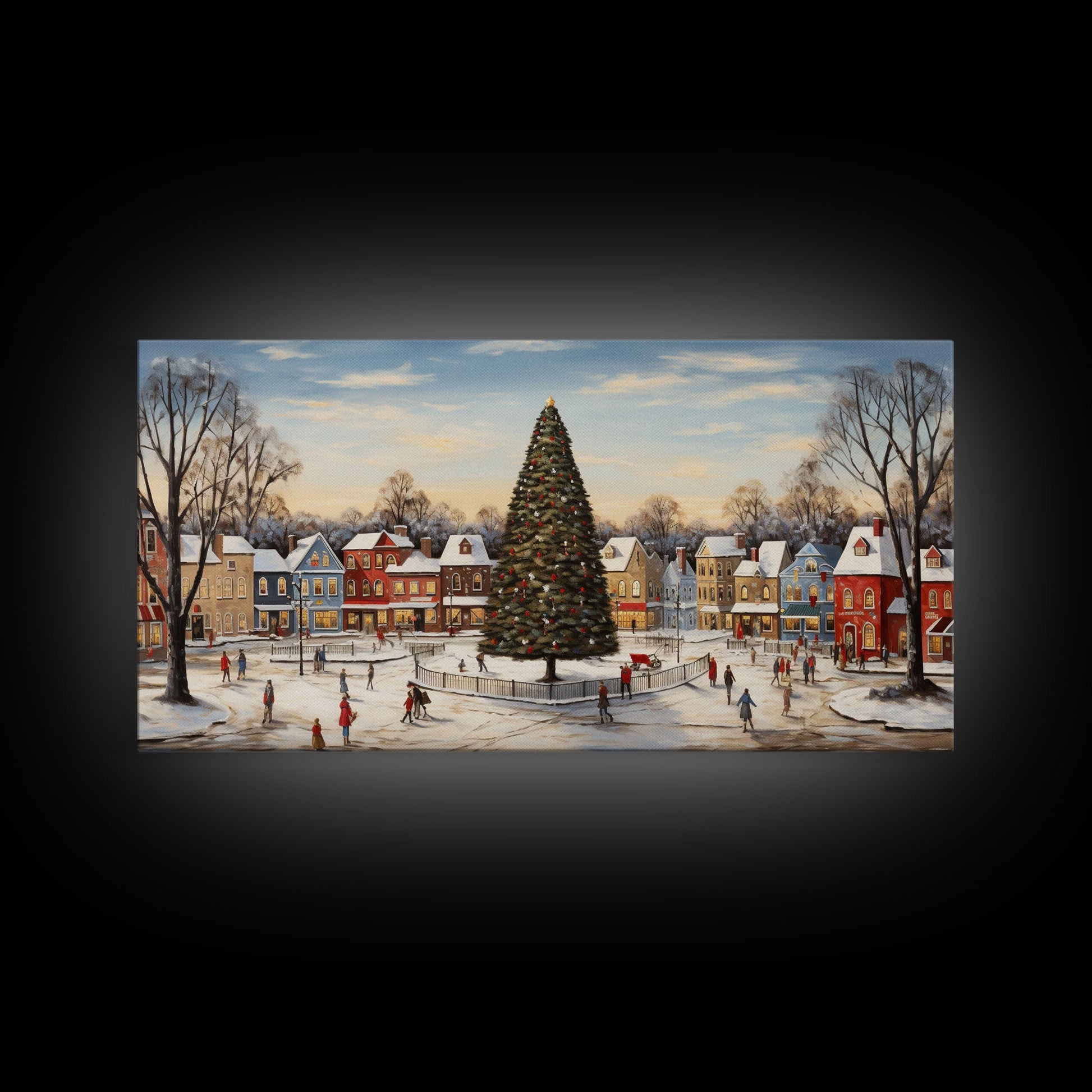 Christmas Tree In Town Square Framed Christmas Wall Art - Framed Christmas Art - Canvas Art - St. Nicholas - Winter Wonderland Centerpiece