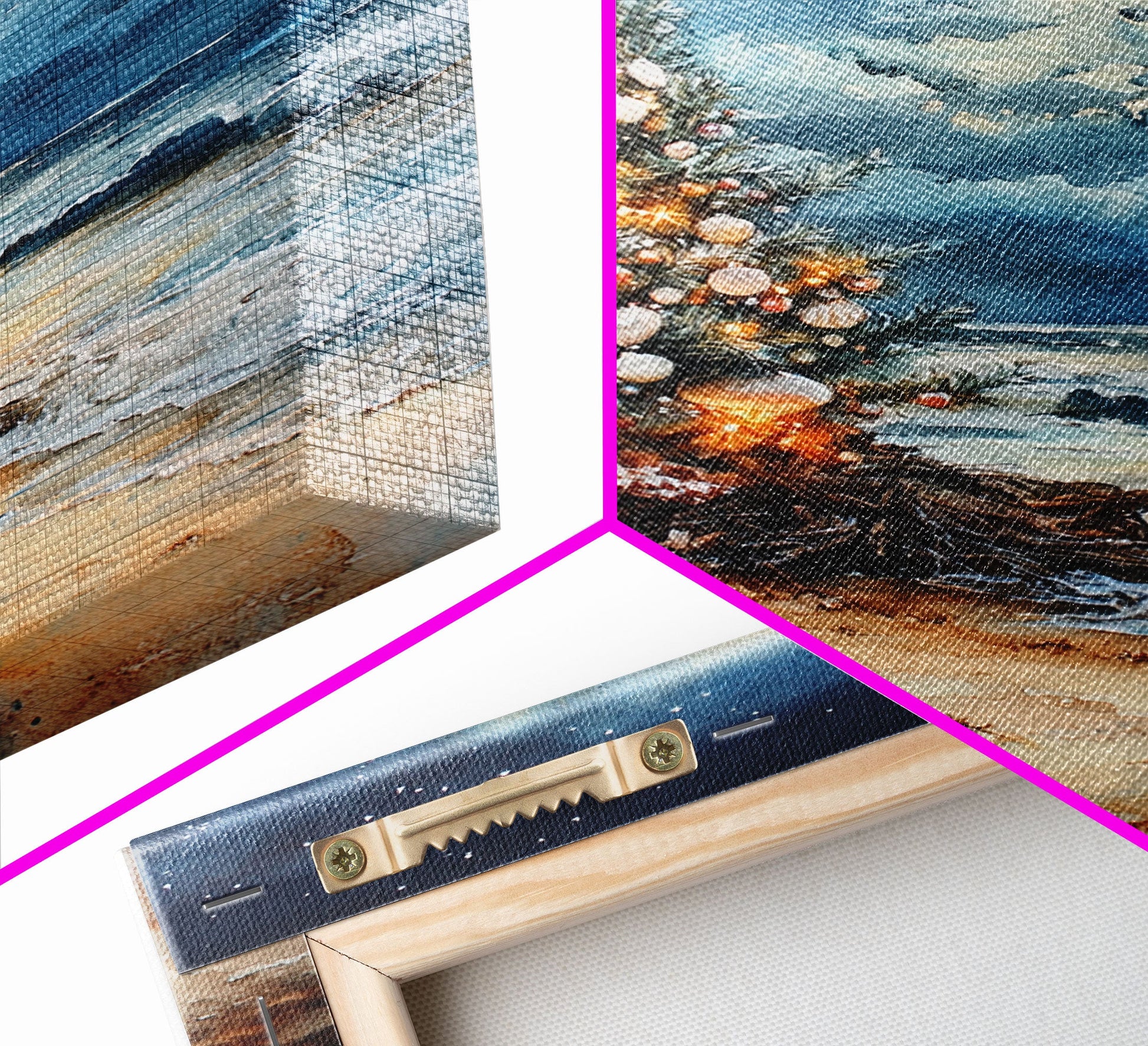 Christmas Tree On The Beach, Framed Canvas Print, gallery wall, Christmas Poster, Xmas Prints