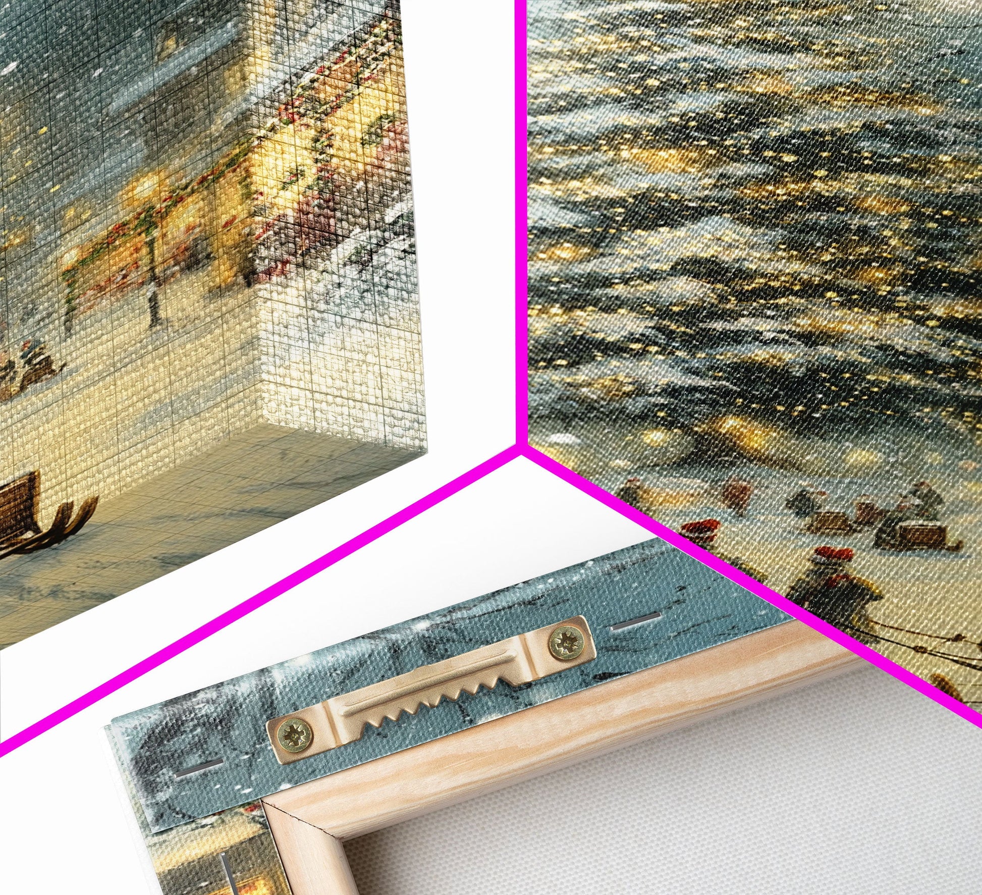 Christmas Tree Village Snowy Winter Scene Framed Canvas Print Christmas Wall Art Christmas Decor Christmas Tree Art Holiday Gift Winter Art