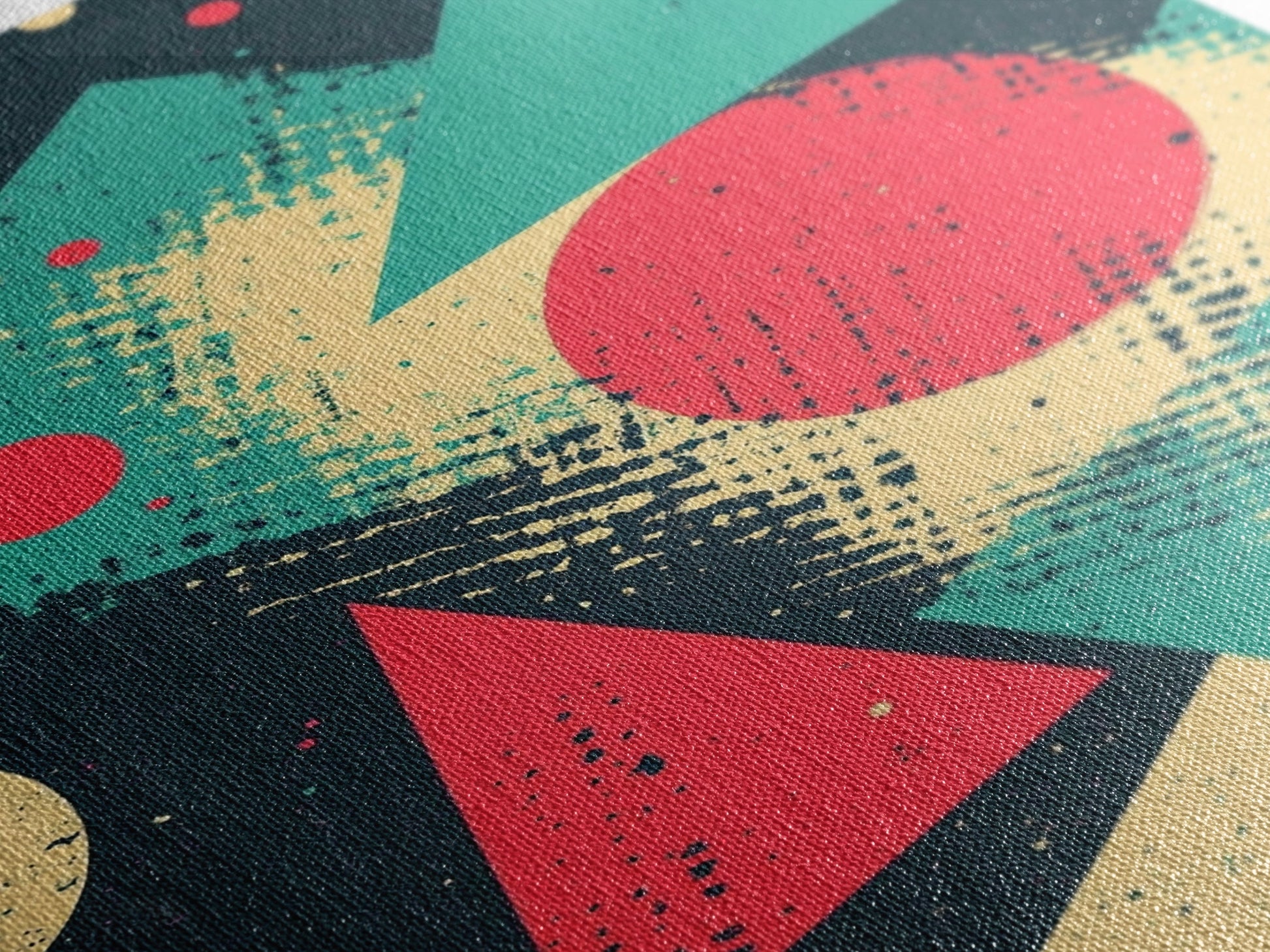 Circles And Triangles, Canvas Print, Retro Abstract Art, Midcentury Modern Style Home Decor, Turquoise Red and Black Wall Art