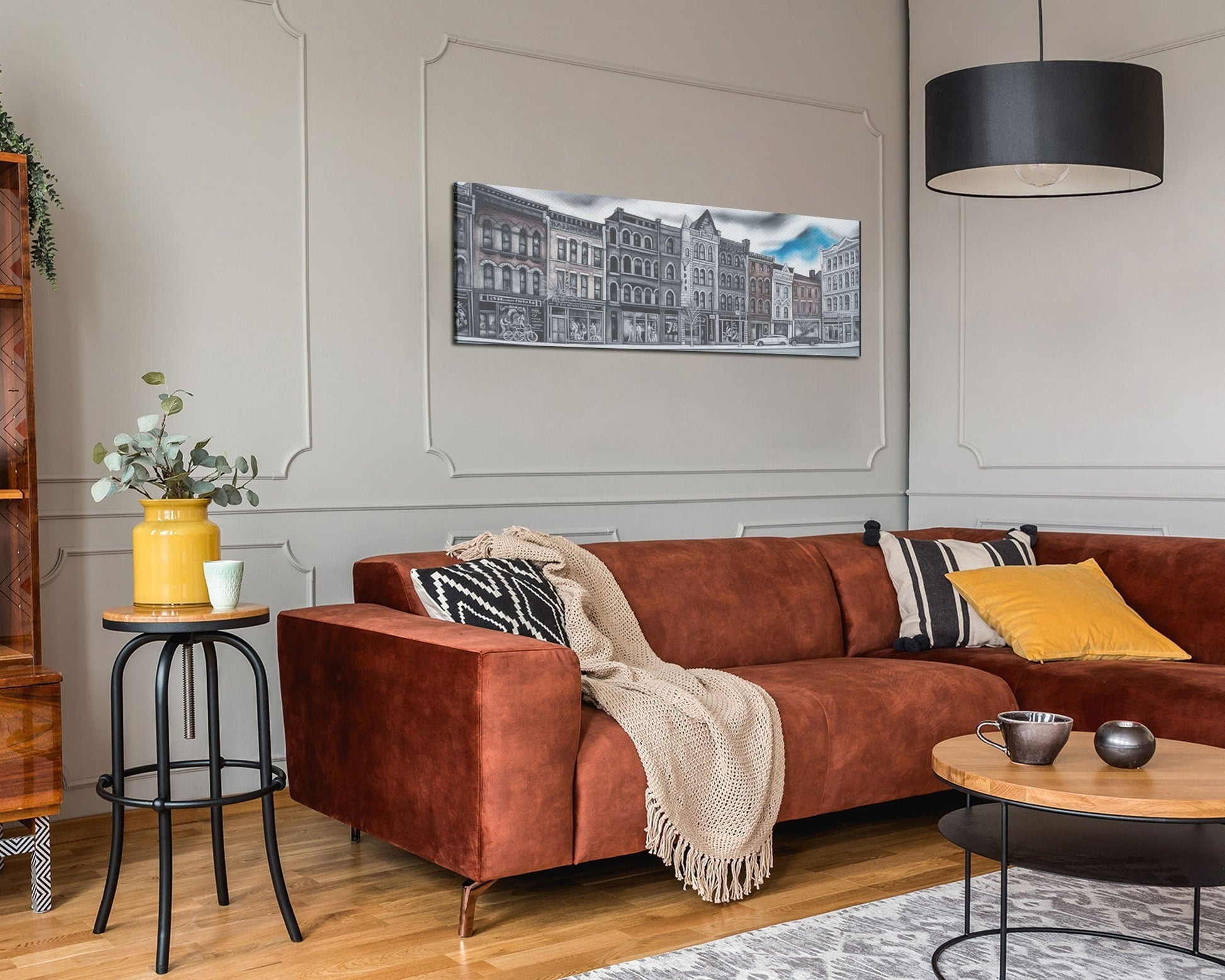 City Buildings Canvas Print, Large Urban Art Print, City Art, Row Of Buildings, Streetscape, Skyline, Panoramic, Wall Art, Canvas Print