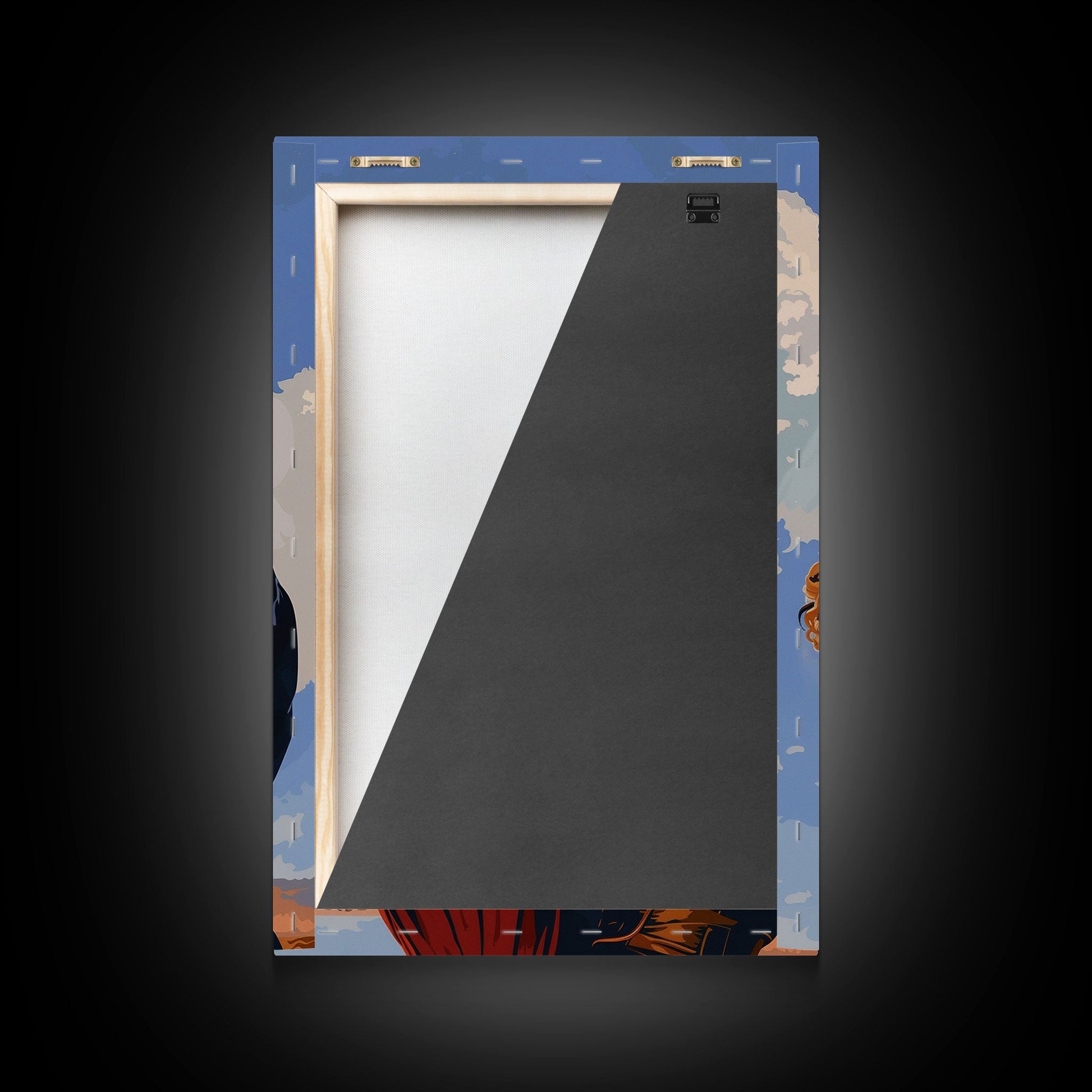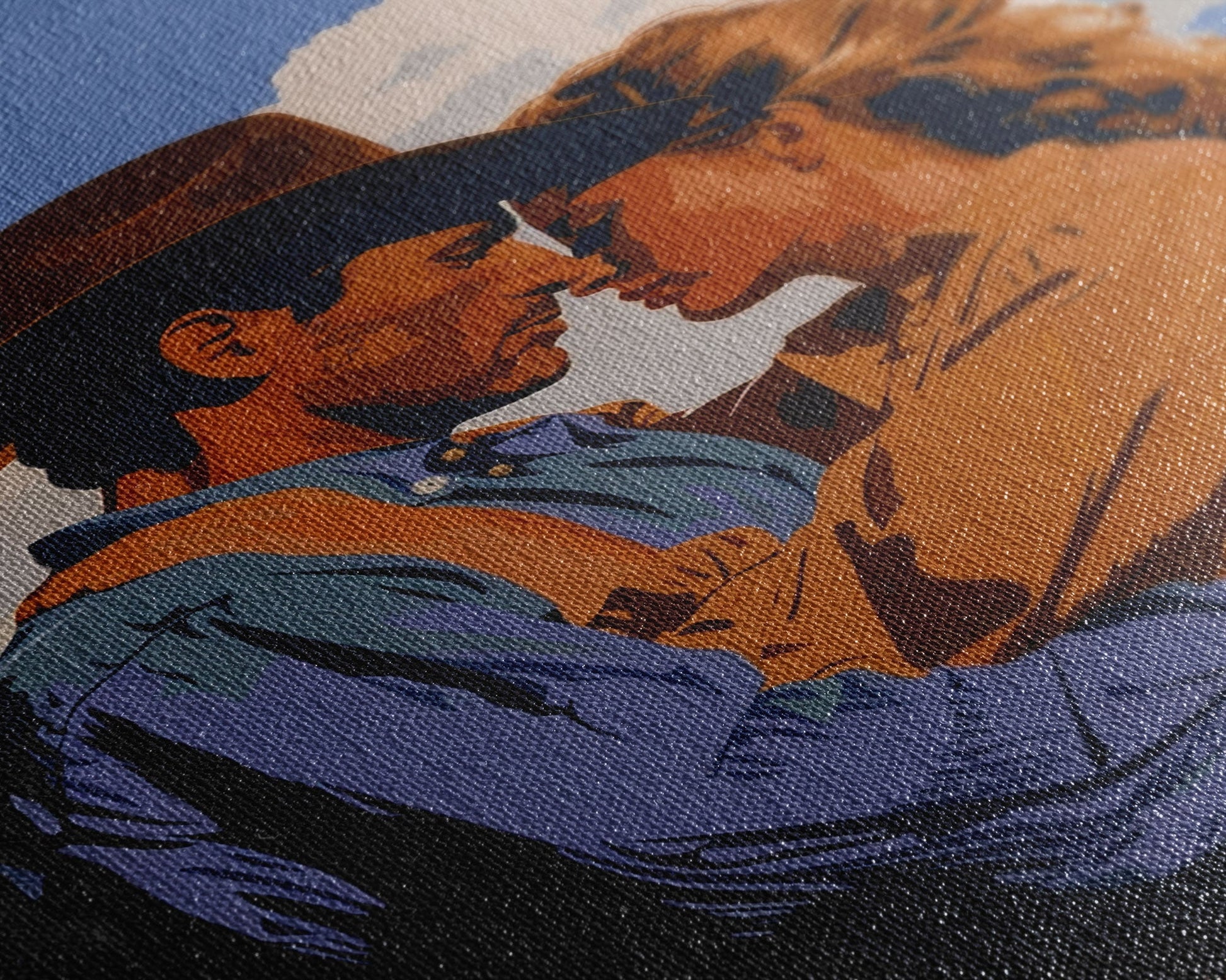 Classic Western Love Scene Under Blue Sky - Framed Canvas Print, Rustic Cowboy Decor, Living Room Art, Romantic Wall Art for Home