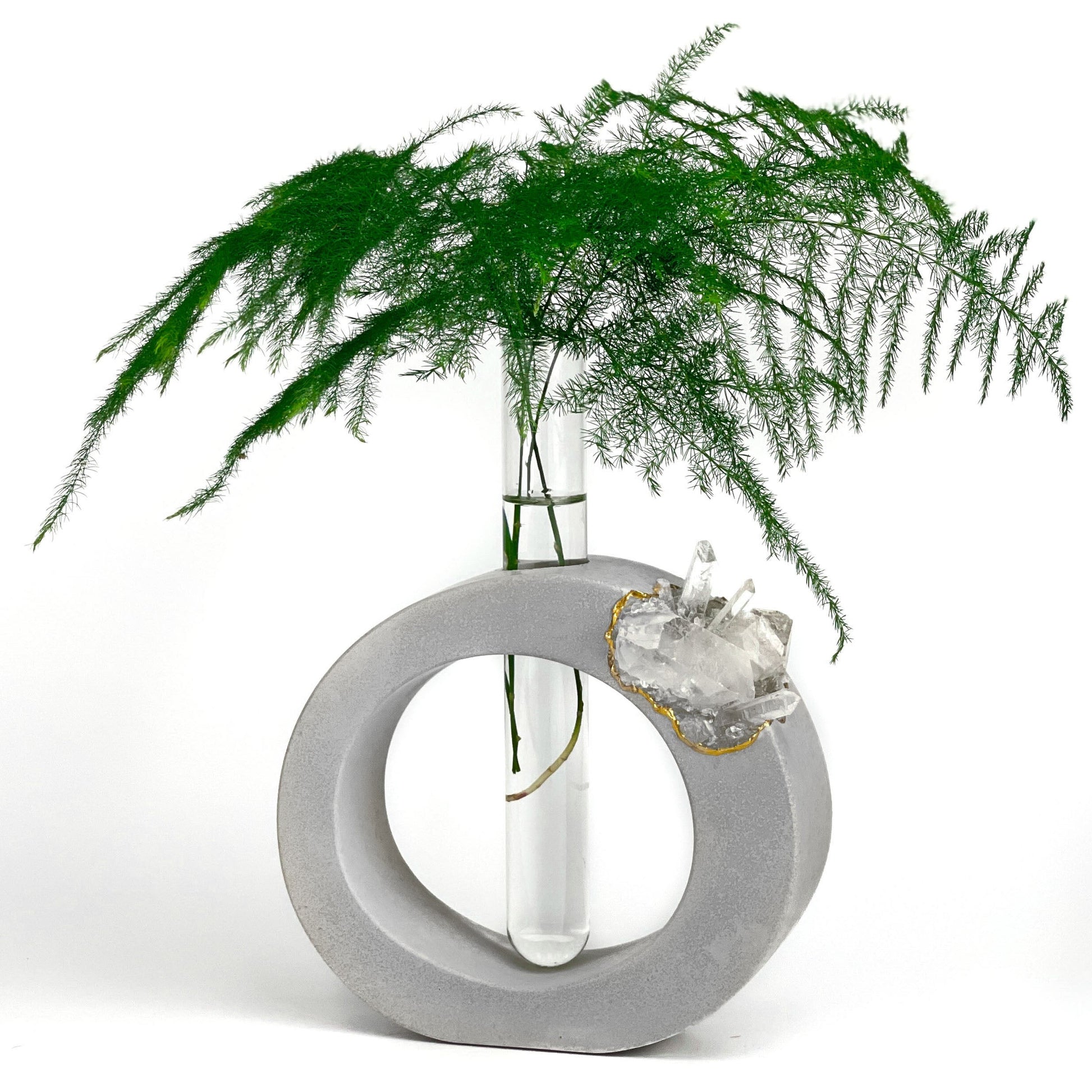 Natural Crystals and Concrete are formed together to create a unique and one-of-a-kind housewarming gift, home accent, and home for your small plants.