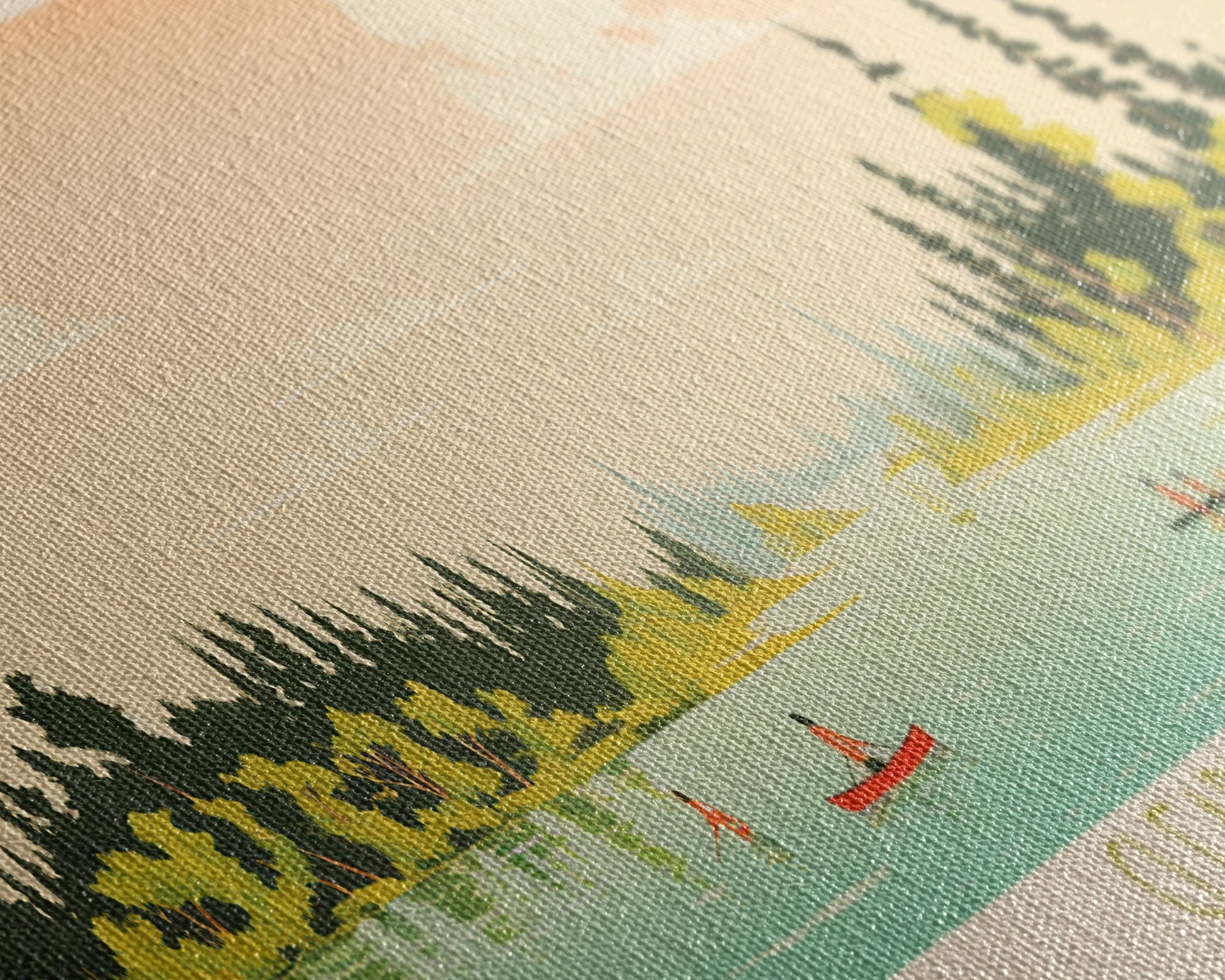 Clearwater Lake Manitoba Framed Canvas Print, Midcentury Modern Panoramic Wall Art, Living Room Decor, Pop Art, Travel Poster Art, Scenic Nature Painting, Lake House Decor