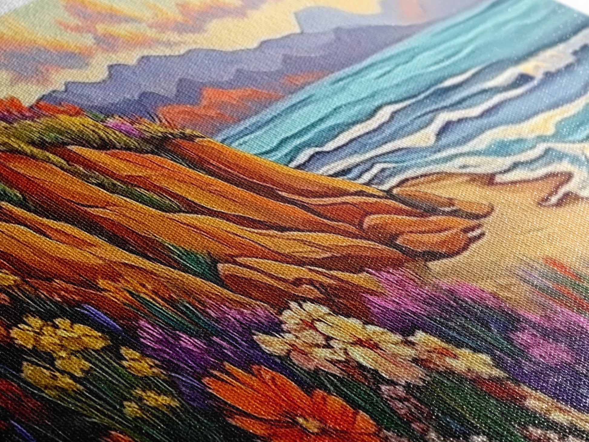 Most of our canvases are made in the USA, with the exception of canvases ordered with the light oak unstained frames, and any large canvases (24x48, 30x60, 16x48 and 20x60) ordered WITH a frame. These are temporarily made in and shipped from Europe, while we try to find a more consistent supplier in the USA.