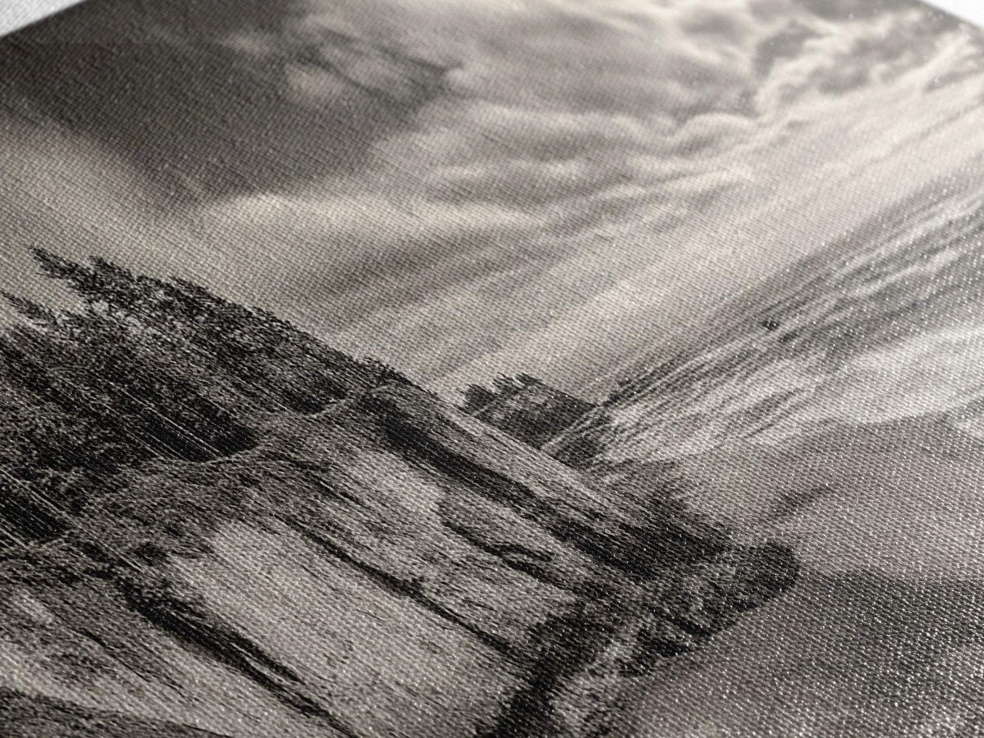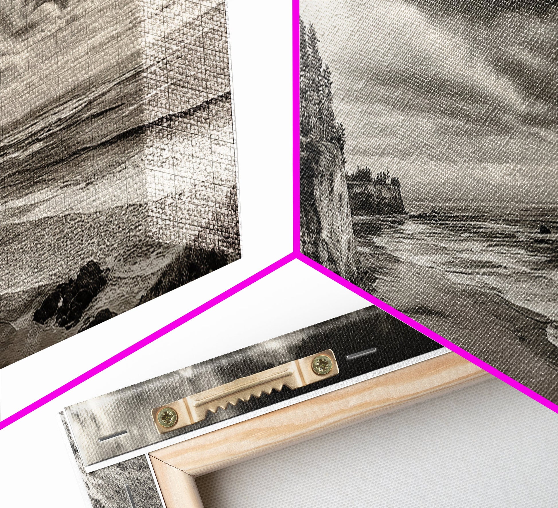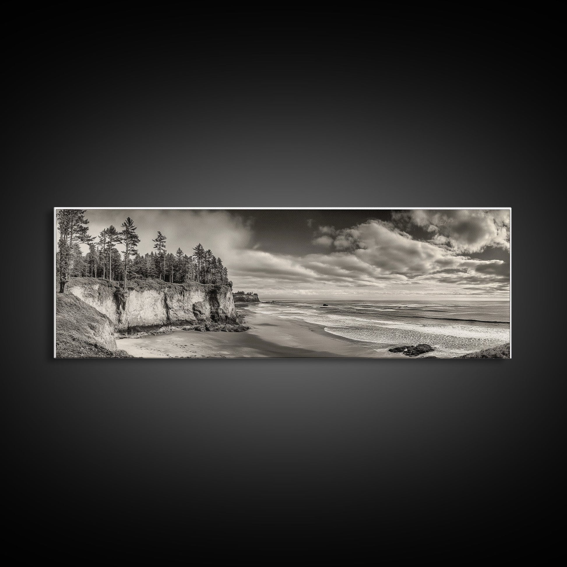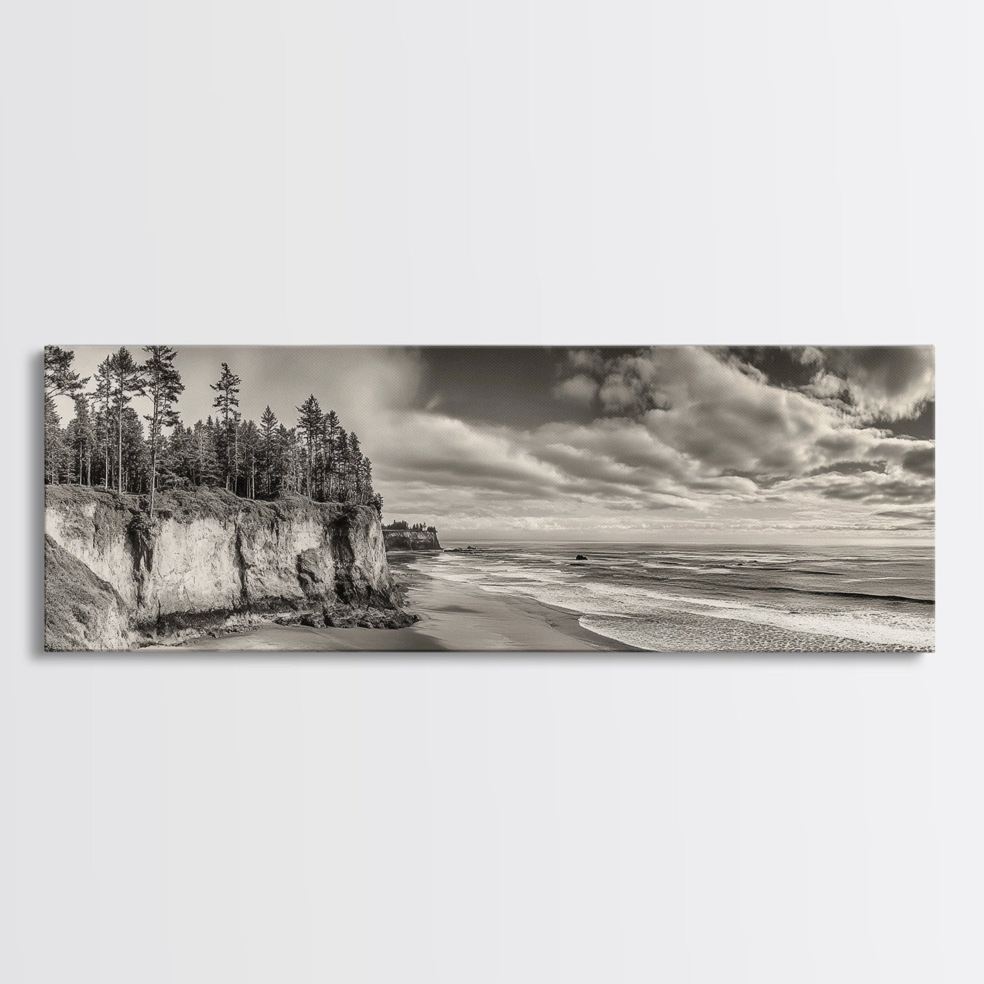 Cliffside Forest, Pacific Coastline, Dramatic Ocean View, Framed Canvas Print, Natural Landscape, Cabin Wall Art, Rustic Coastal Decor