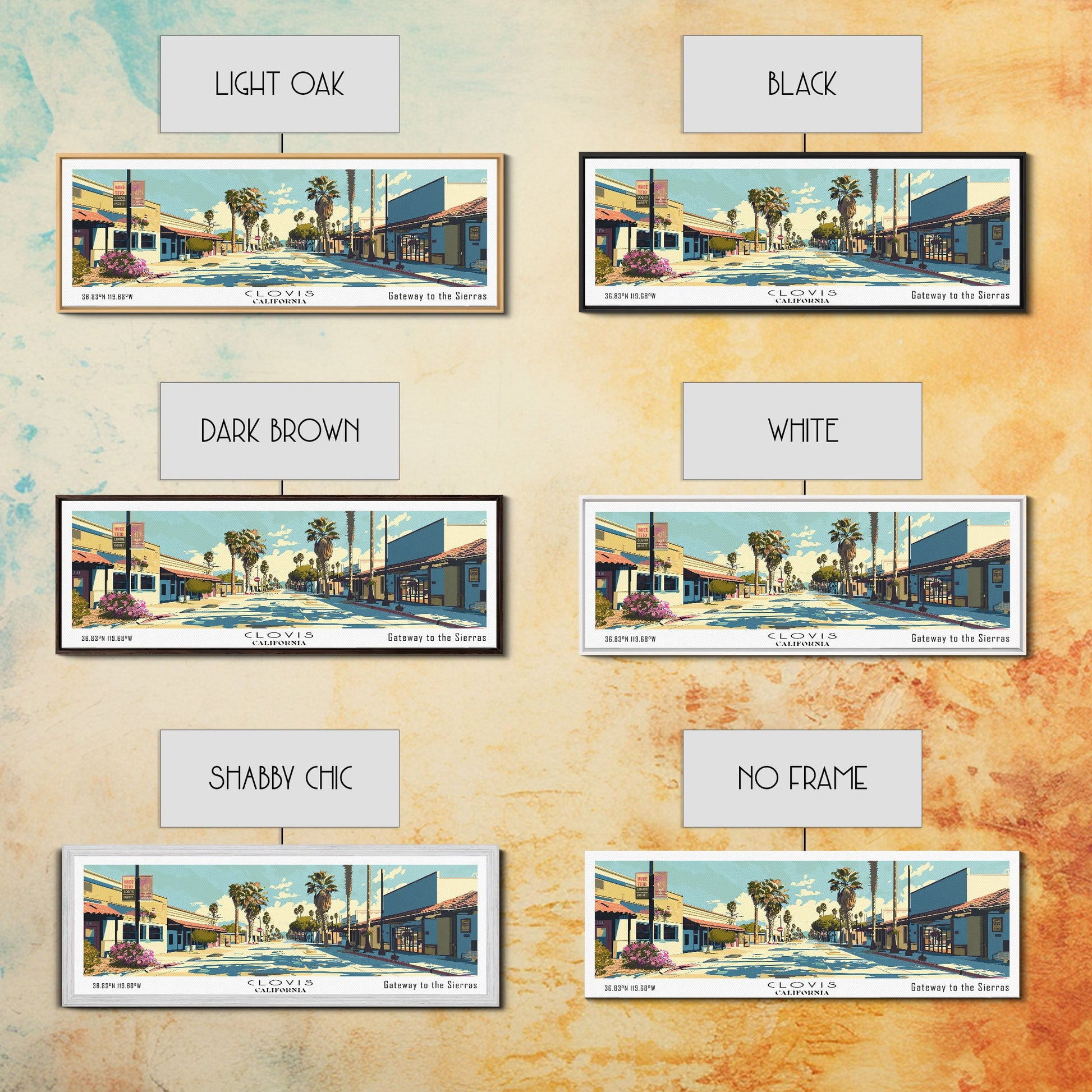 Clovis California Panoramic Wall Art, Mid Century Modern Framed Canvas Print, Retro Pop Art Travel Poster, City Office Decor, Home Art