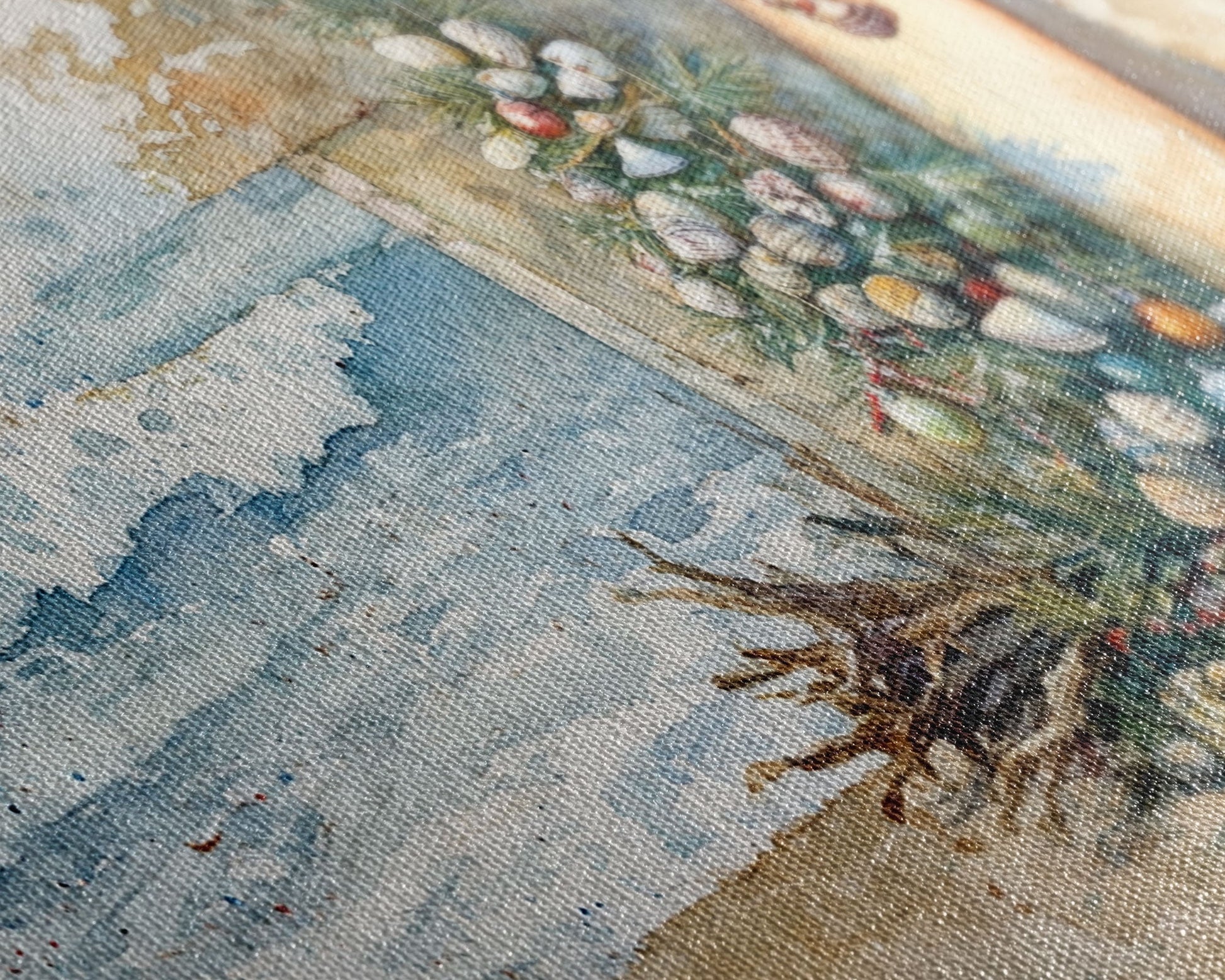 Most of our canvases are made in the USA, with the exception of canvases ordered with the light oak unstained frames, and any large canvases (24x48, 30x60, 16x48 and 20x60) ordered WITH a frame. These are temporarily made in and shipped from Europe, while we try to find a more consistent supplier in the USA.