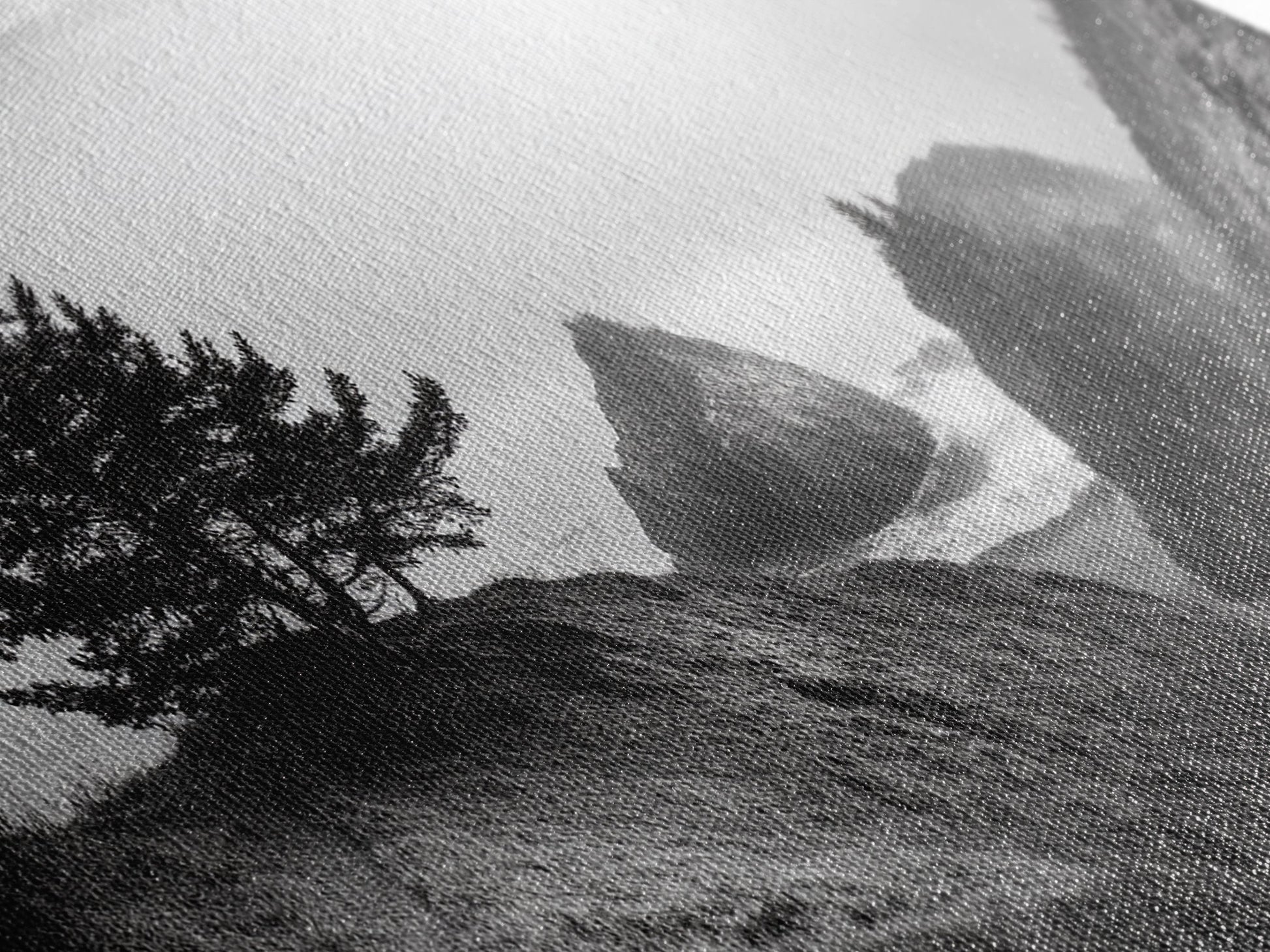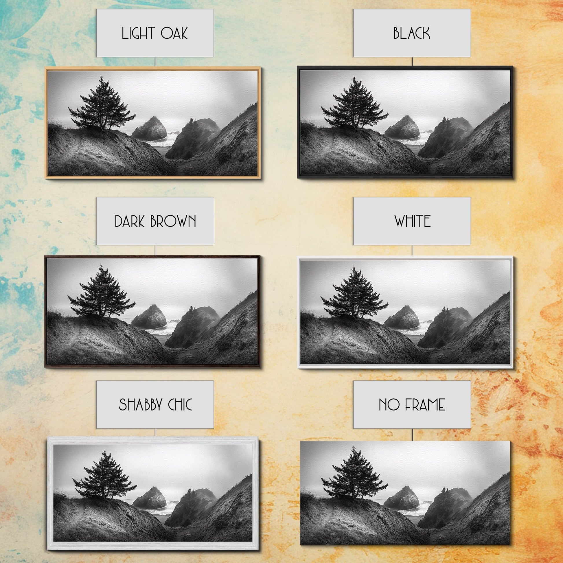 Coastal Cliff Scene, Evergreen Ocean Landscape, Pacific Northwest View, Framed Canvas Print, Nature Inspired Wall Art, Minimalist Decor