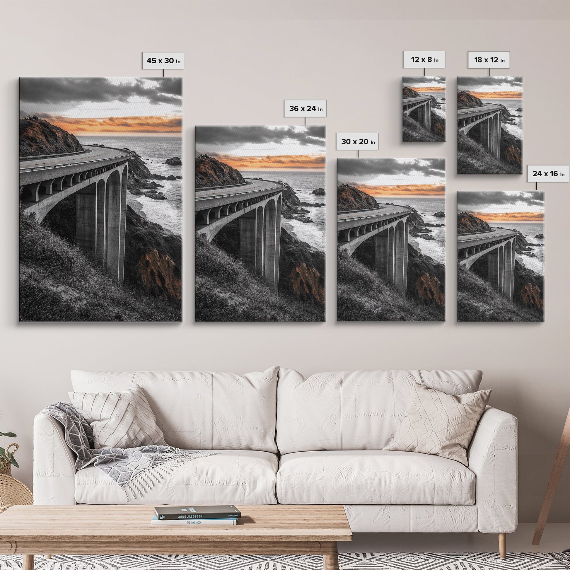 Coastal Highway, Sunset Drive, Scenic Bridge, Canvas Print, Road Trip Wall Art, Adventure Landscape Art, Living Room Statement Piece