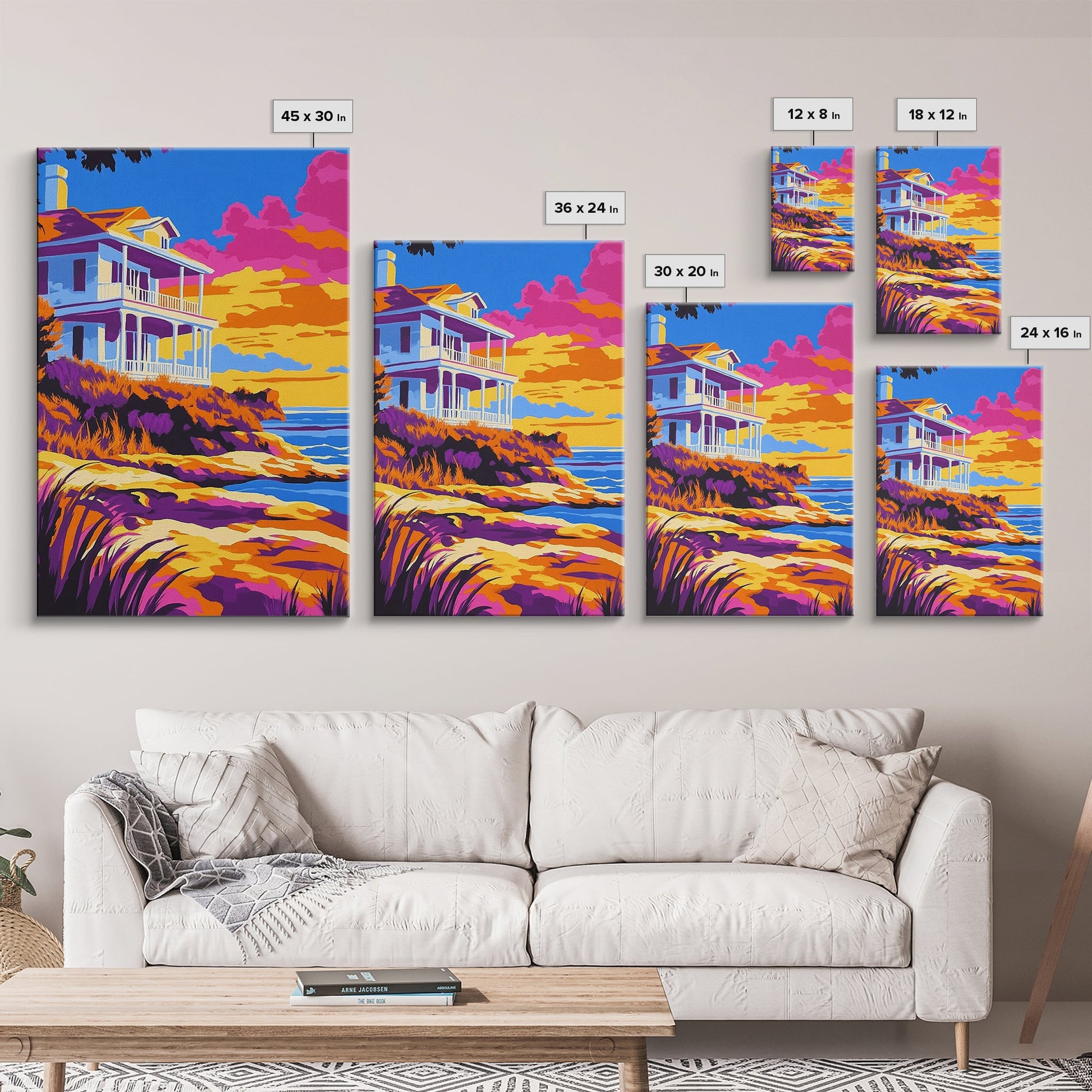 Coastal Home, Seaside Escape, Beach House, Canvas Print, Ocean Wall Art, Vibrant Summer Decor, Living Room Wall Art