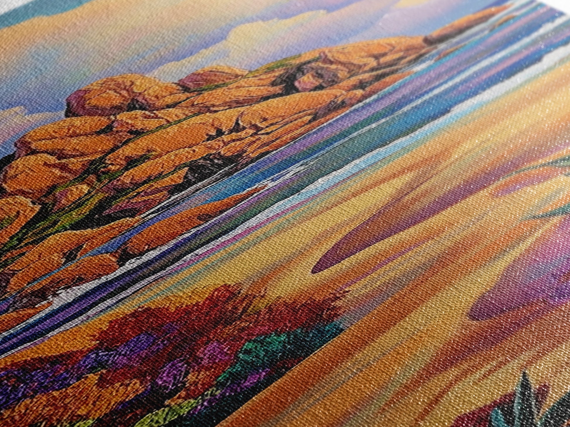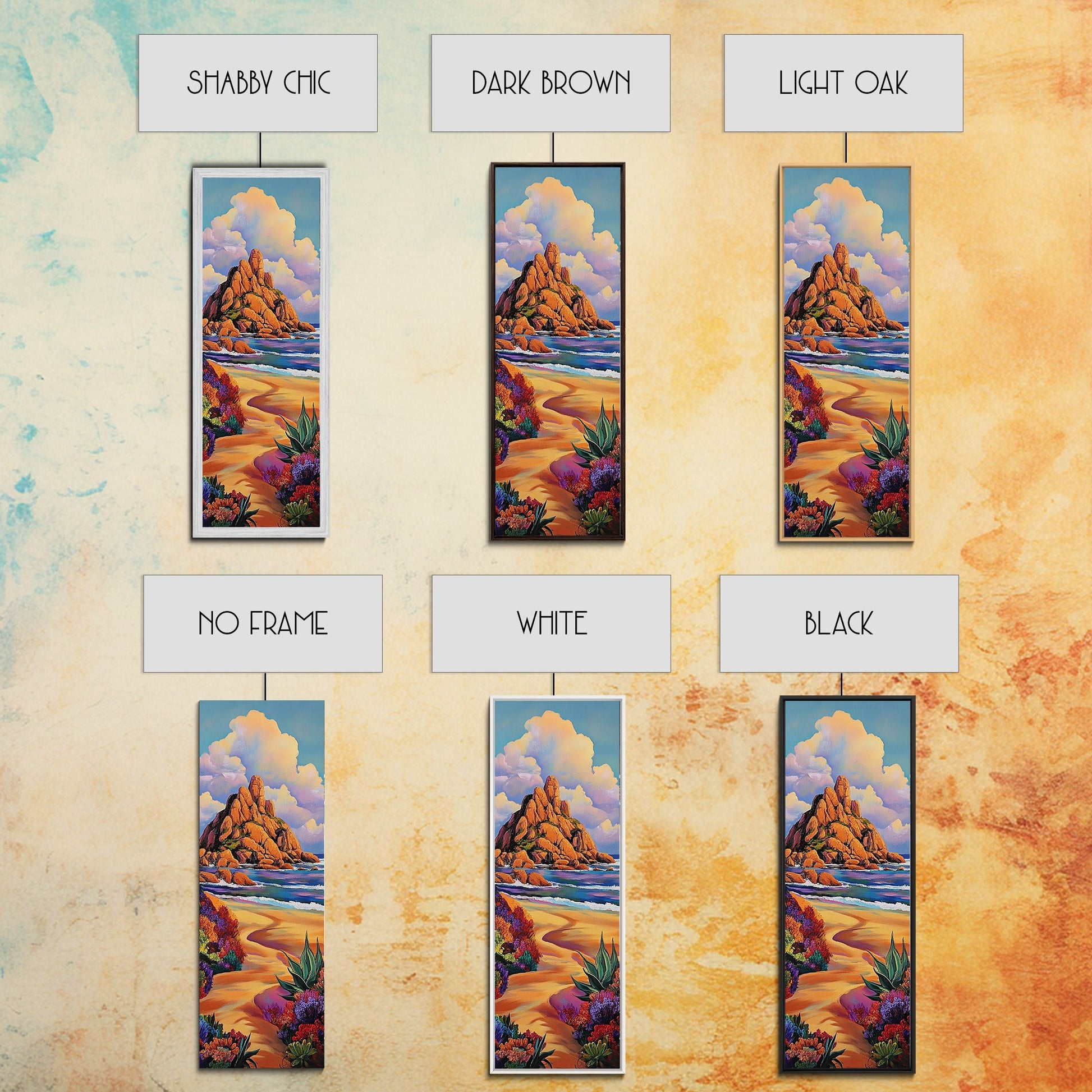 Coastal Path, Mountain, Framed Canvas Print, Vibrant Beach Landscape Wall Art, Desert Coastal Decor, Colorful Nature Living Room Accent