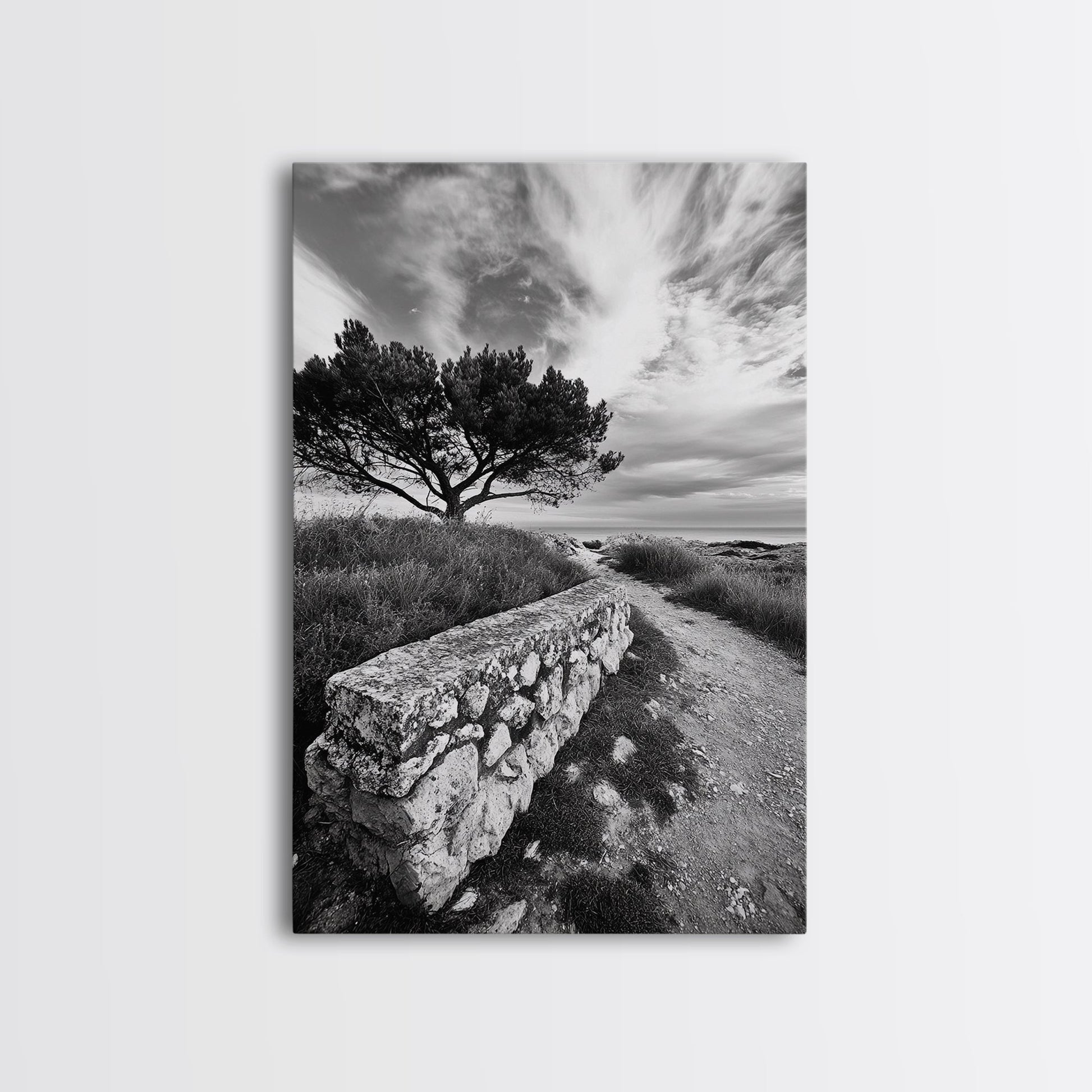 Coastal Path, Nature Trail, Windswept Tree, Framed Canvas Print, Rustic Landscape Art, Minimalist Decor, Bedroom Wall Art, Fall Vibes