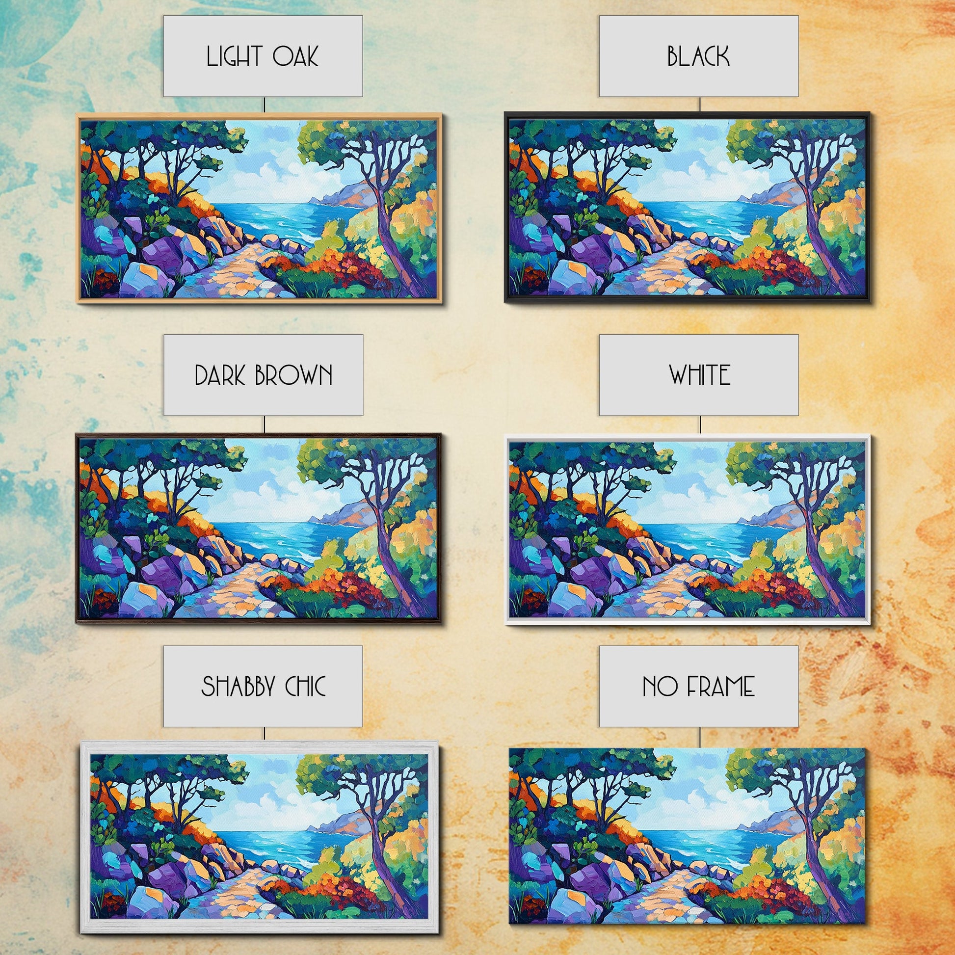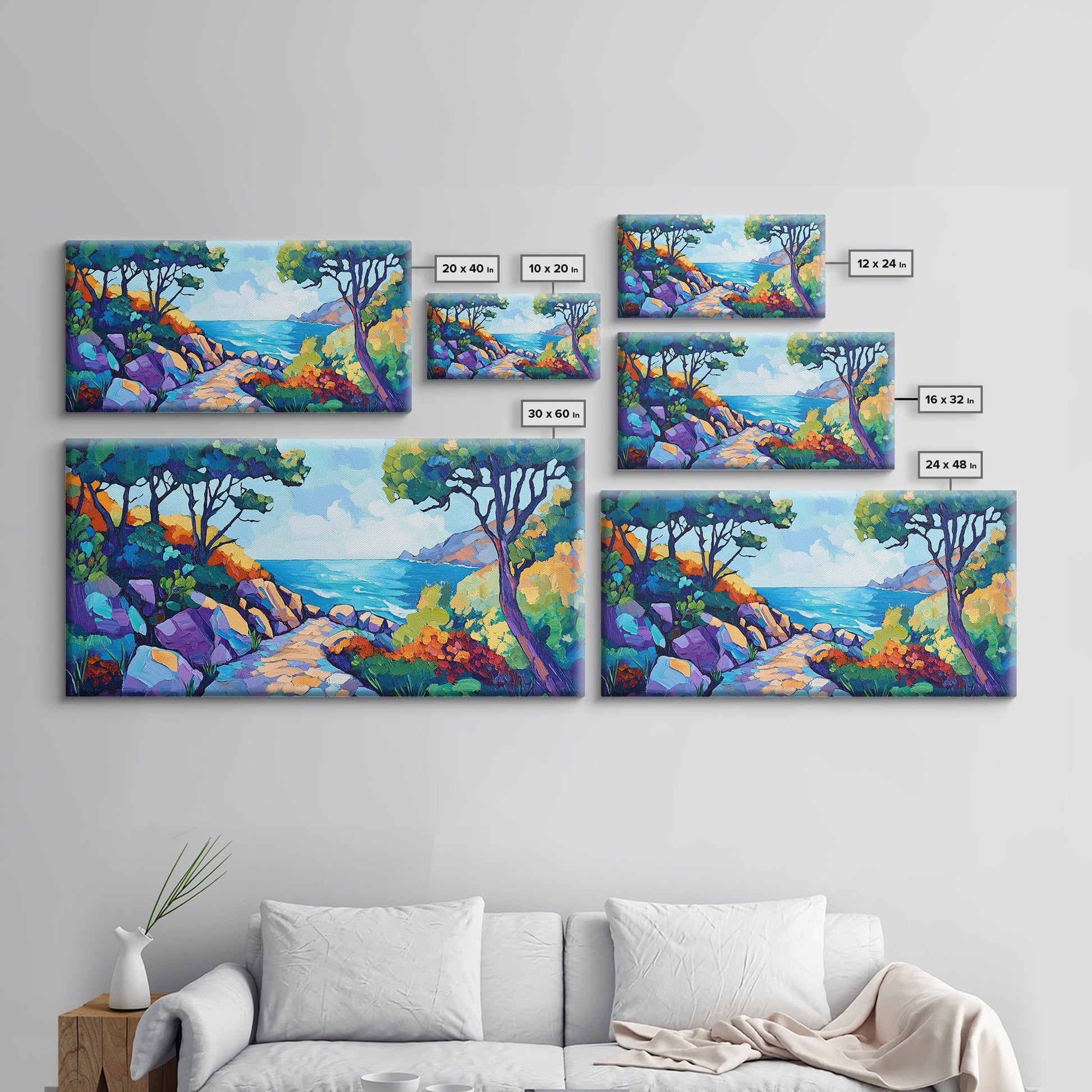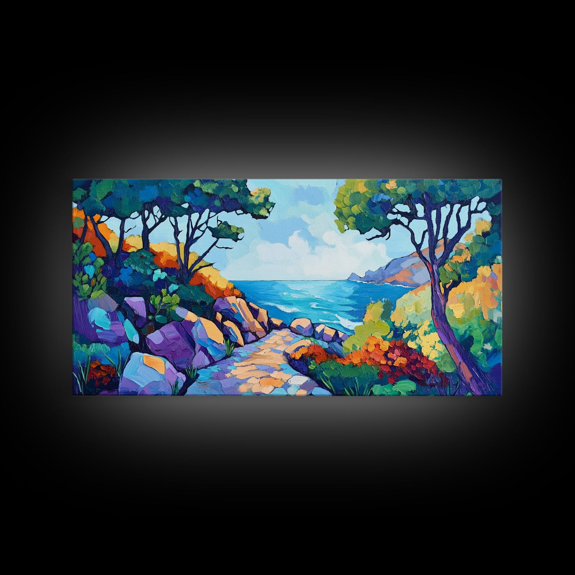 Coastal Pathway, bold colors, impressionist seascape, ocean view, vibrant painting, coastal wall art, Canvas Print, beach decor
