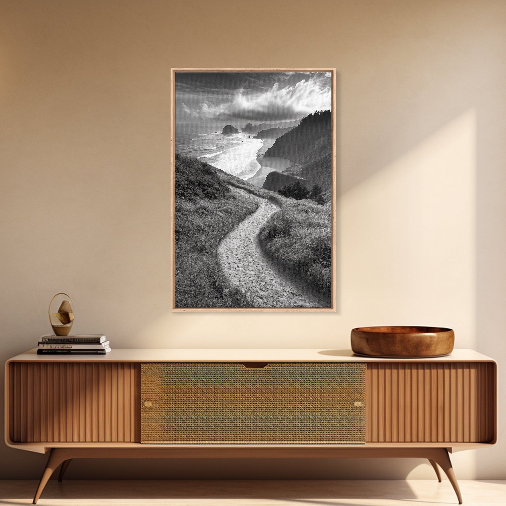 Coastal Pathway, coastal landscape art, seascape painting, nature trail print, ocean decor, beach house art, framed canvas print, nautical decor