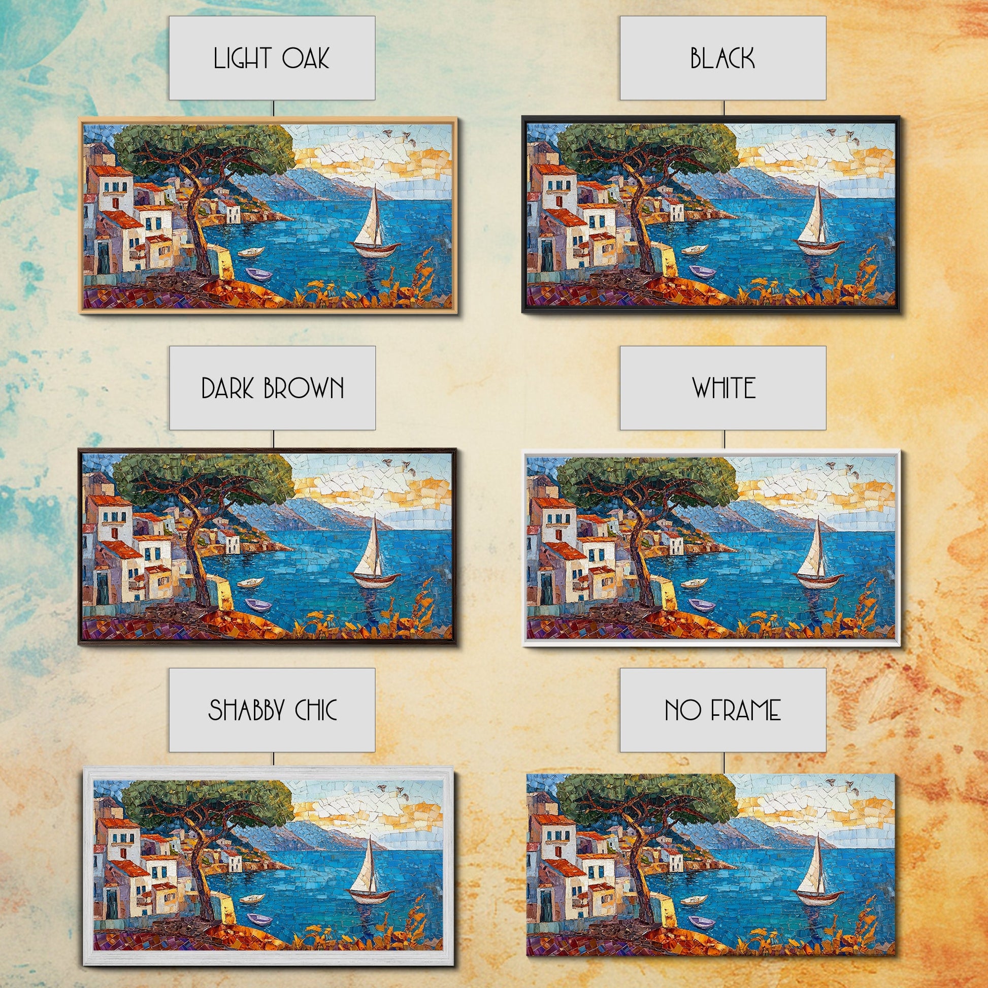 Coastal Sailboat Scene Mosaic Canvas Print - Nautical Decor Seascape Painting - Rustic Fall Wall Art Above Sofa Coastal Home Art