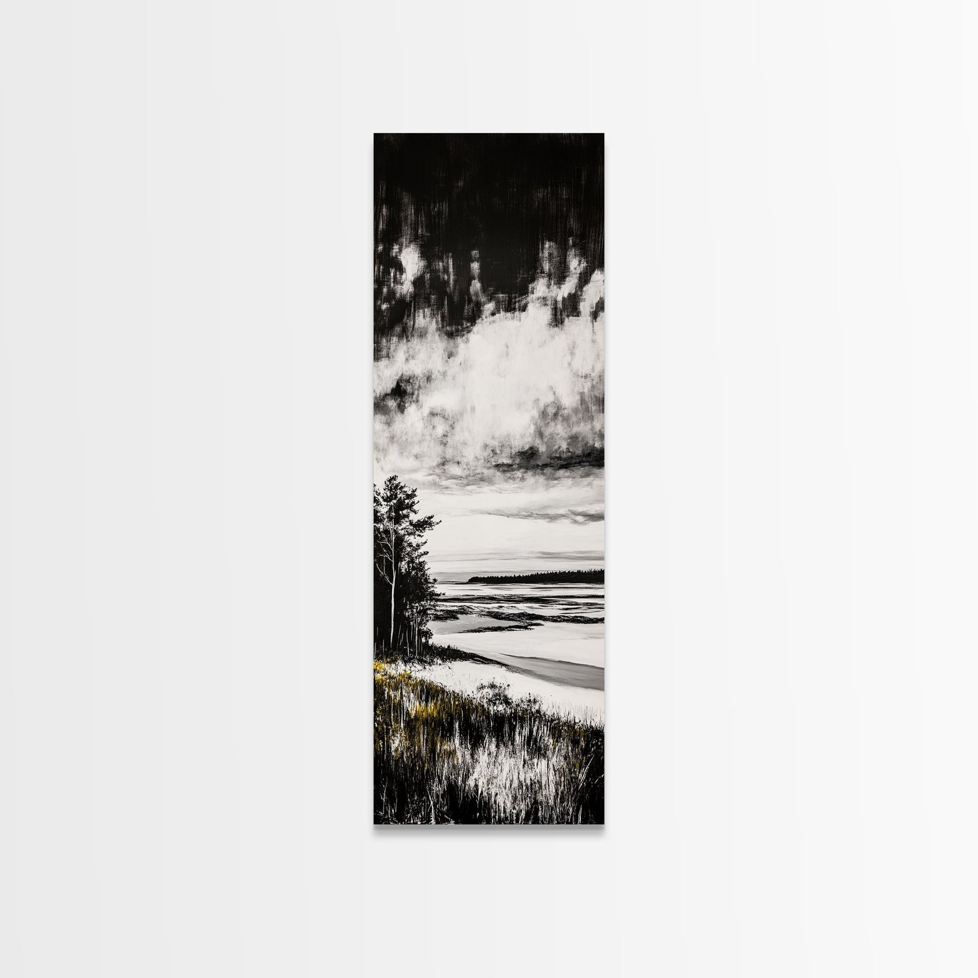 Coastal Serenity, Black White Landscape, Ocean Horizon Art, Minimalist Beach Scene, Modern Home Decor, Framed Canvas Print