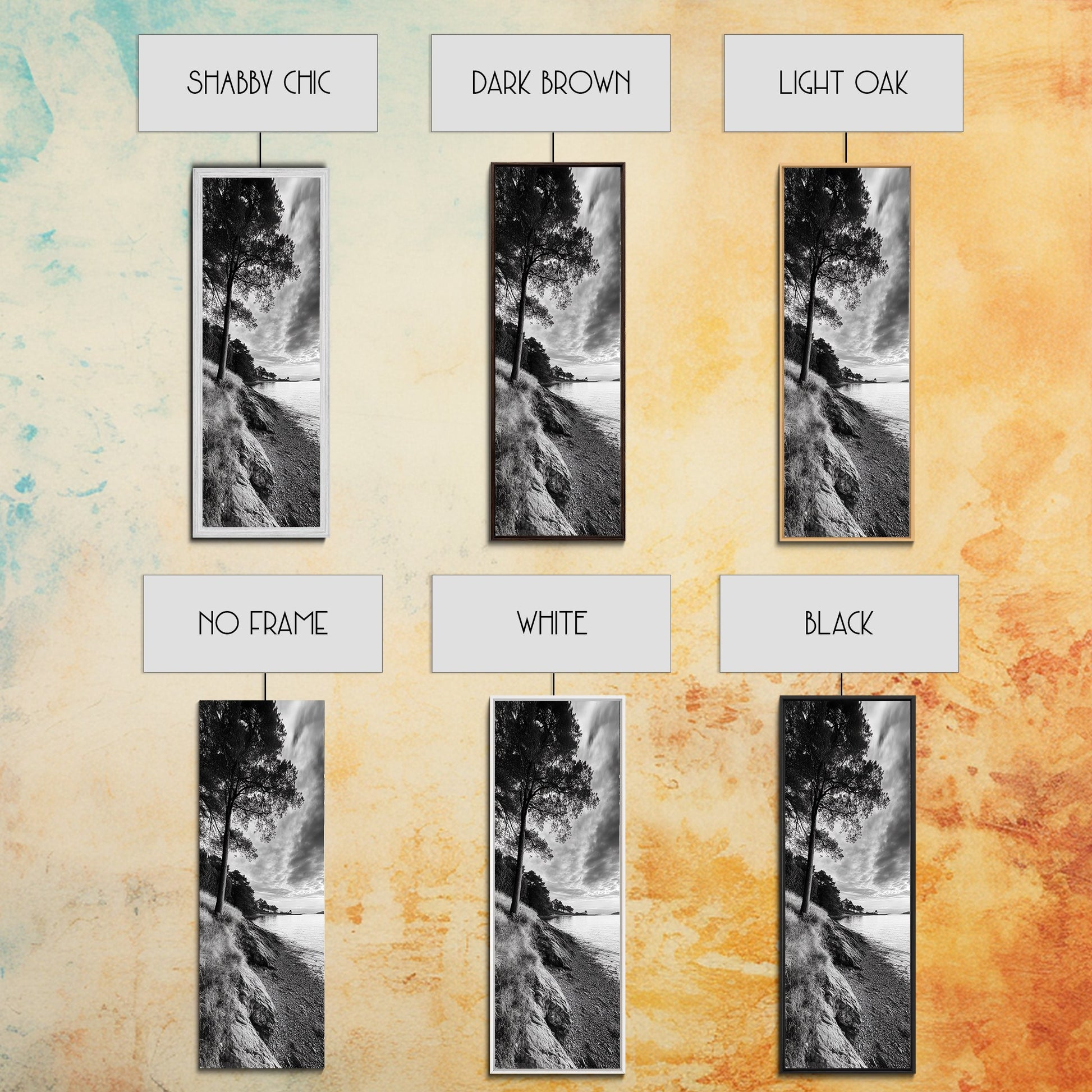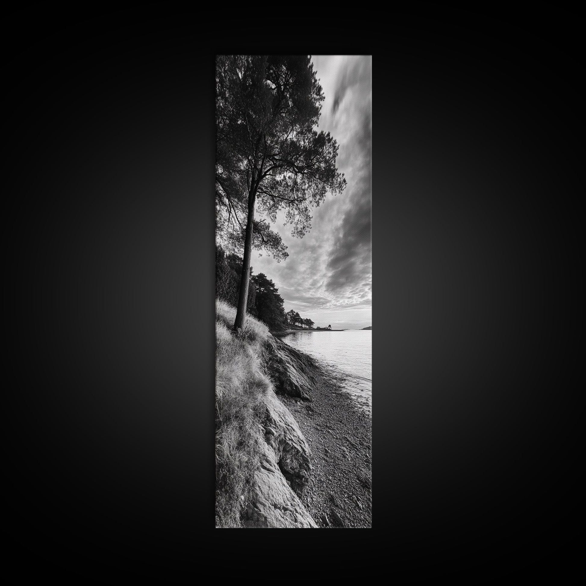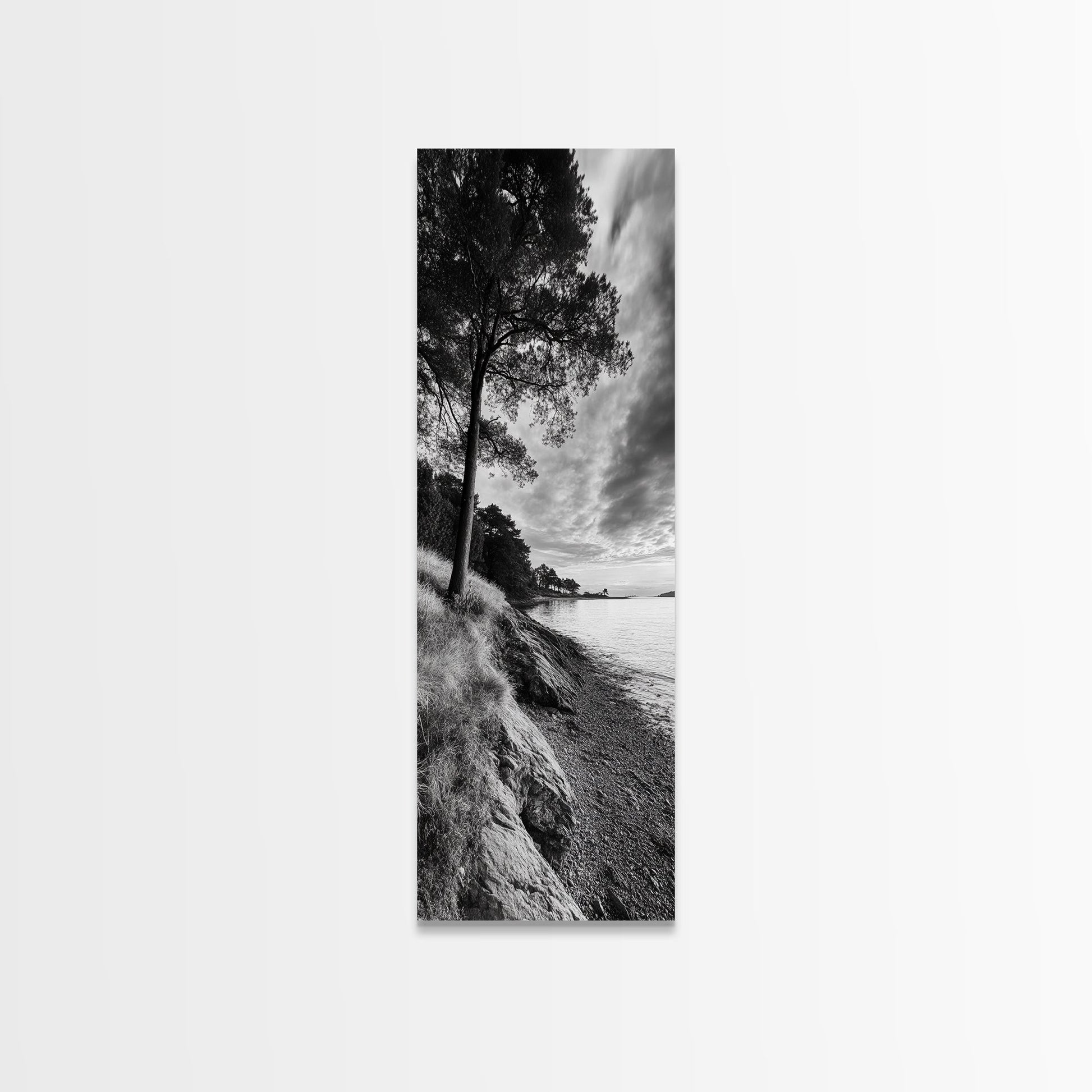 Coastal Tree, Ocean Horizon, Windswept Shore, Nature Calm, Moody Sky, Framed Canvas Print, Office Wall Art, Coastal Rustic Aesthetic