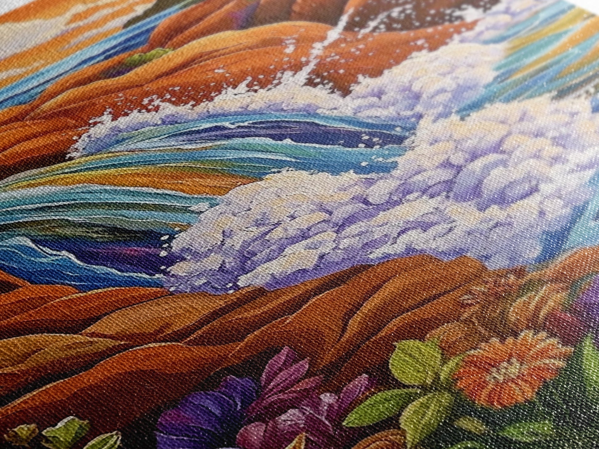 Most of our canvases are made in the USA, with the exception of canvases ordered with the light oak unstained frames, and any large canvases (24x48, 30x60, 16x48 and 20x60) ordered WITH a frame. These are temporarily made in and shipped from Europe, while we try to find a more consistent supplier in the USA.