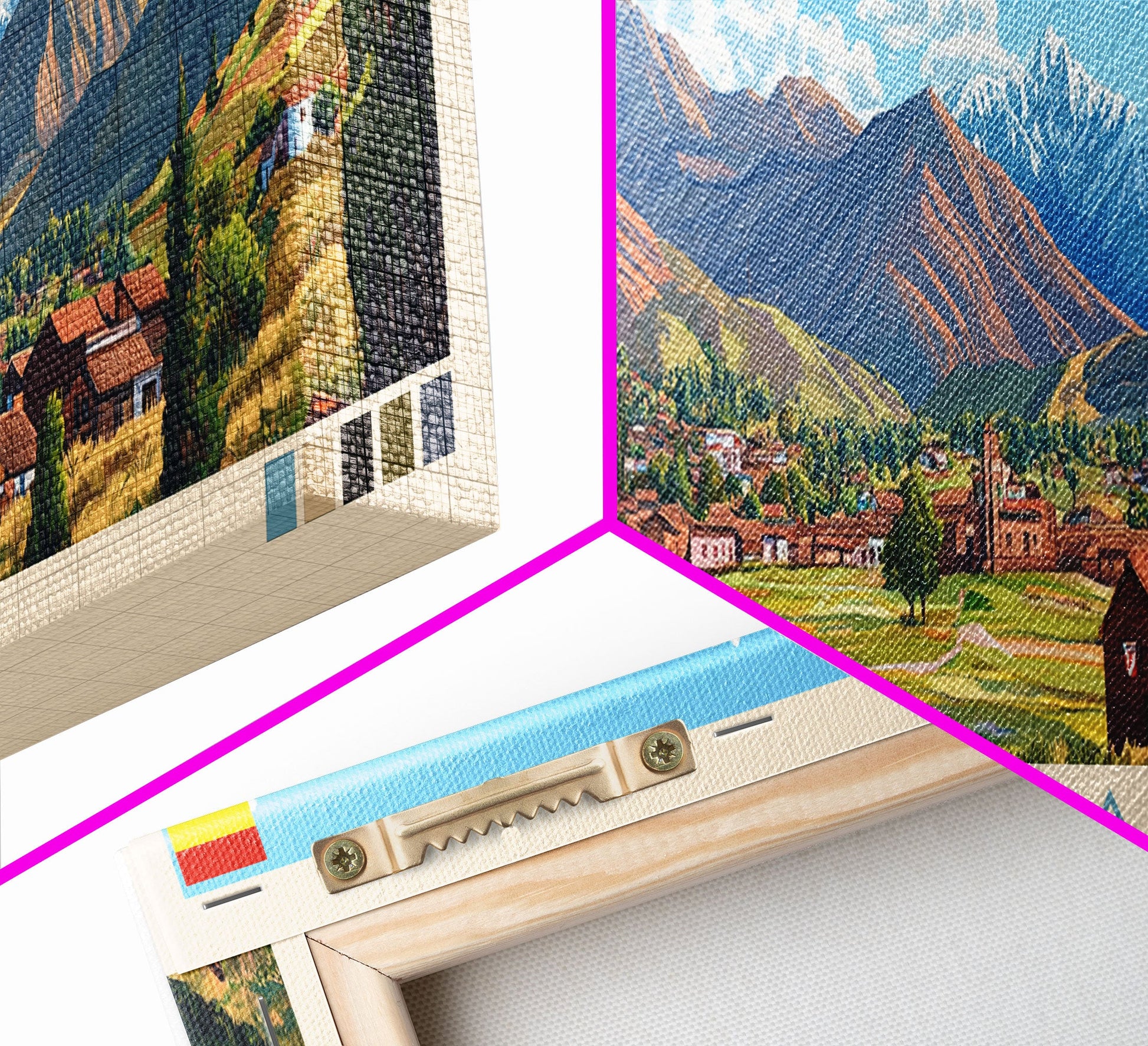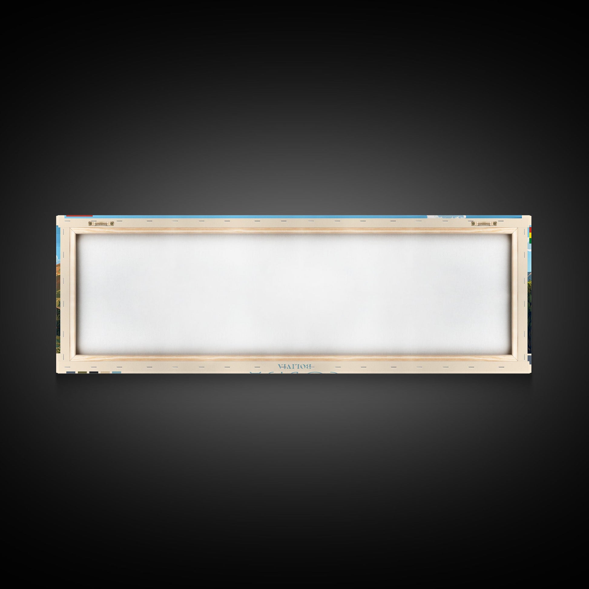 Most of our canvases are made in the USA, with the exception of canvases ordered with the light oak unstained frames, and any large canvases (24x48, 30x60, 16x48 and 20x60) ordered WITH a frame. These are temporarily made in and shipped from Europe, while we try to find a more consistent supplier in the USA.