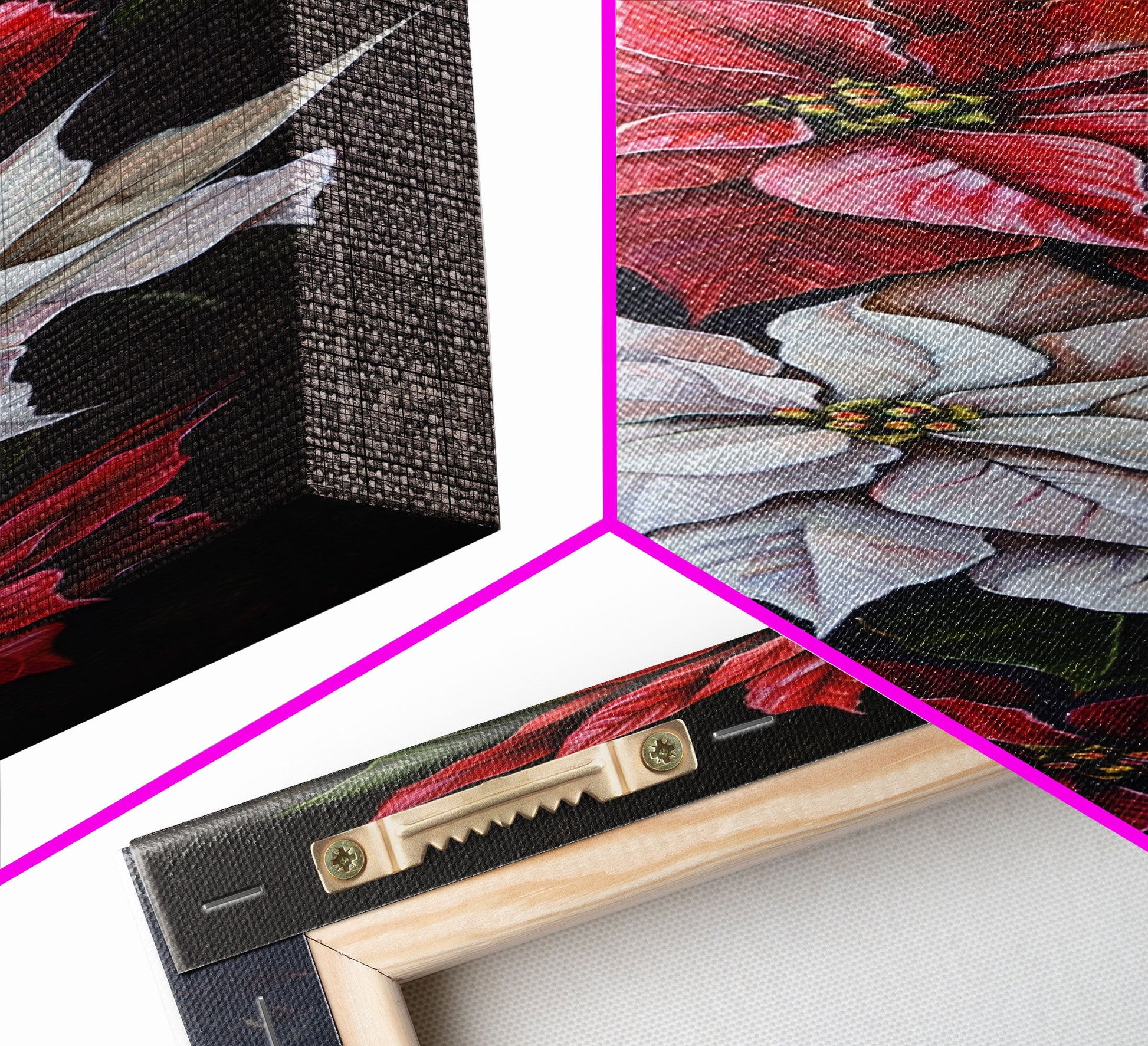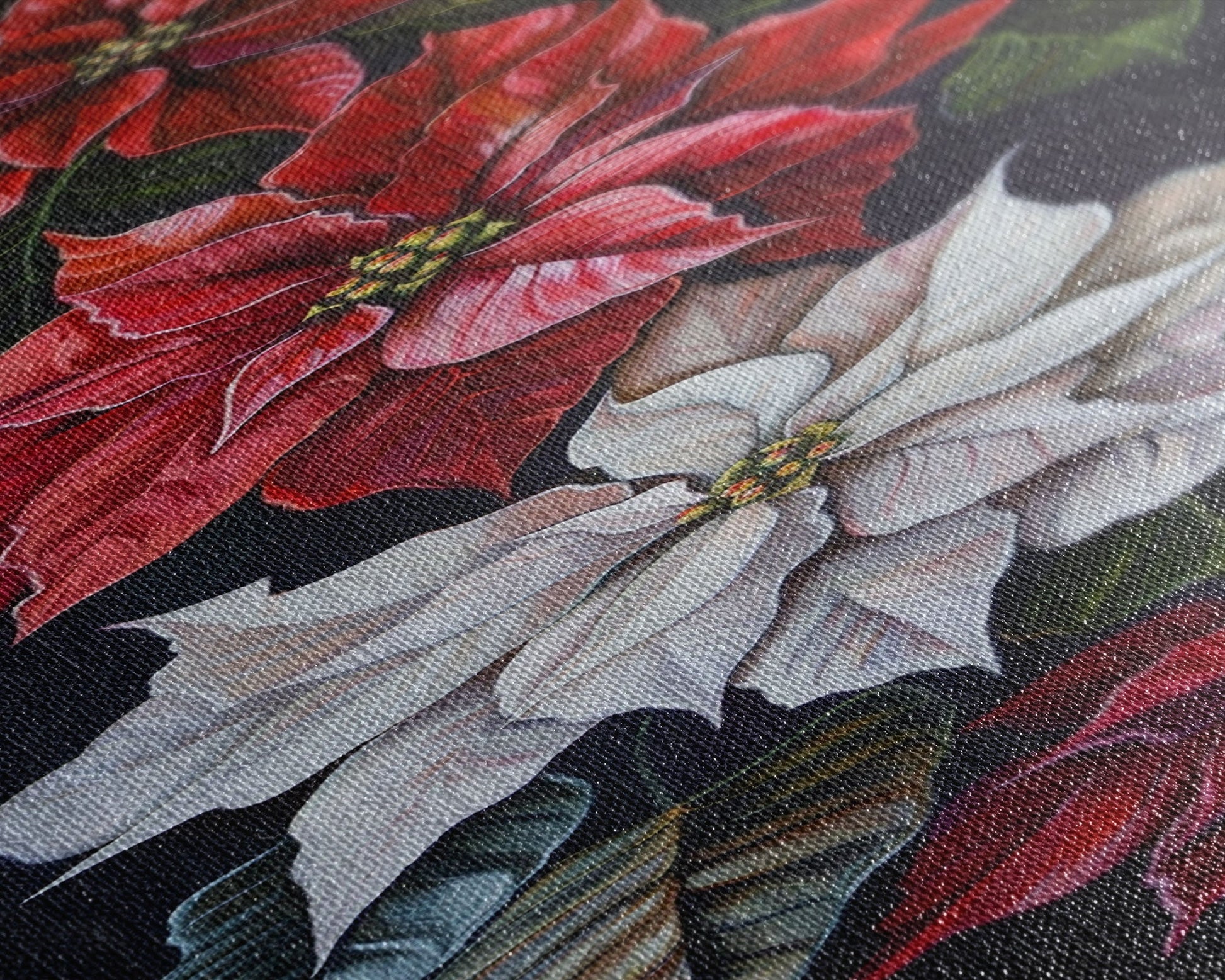 Colorful Botanical Poinsettia Canvas Art Printed and Framed, Vertical Tall and Narrow Floral Art Print, Modern Wall Art, Housewarming Gift