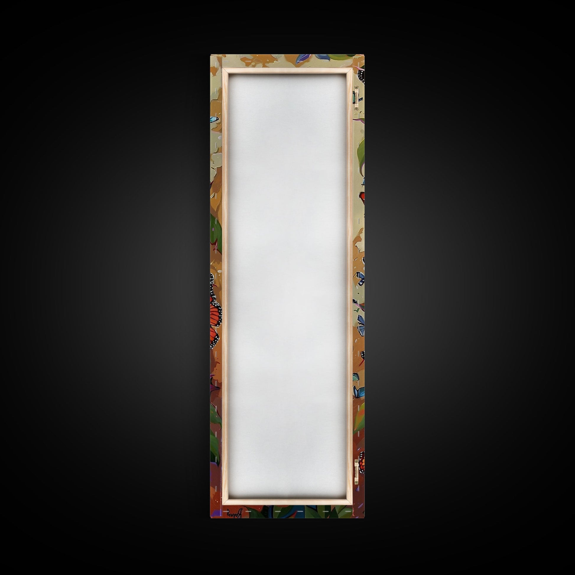 Colorful Butterfly Vertical Framed Canvas Oil Painting, Abstract Botanical Wall Art, Gouache Style Painted Art, Housewarming Gift for Her